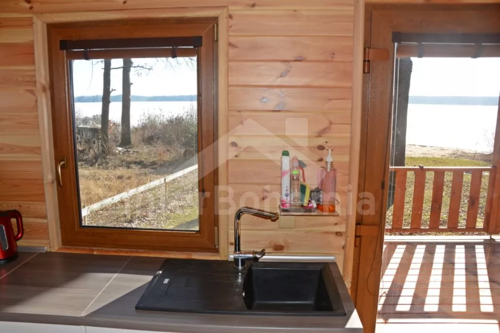 Freistehendes Chalet, komfortabel eingerichtet, auf einer Ebene, mit eigenem Strand und direktem Blick auf den See und die angrenzende Landschaft. Eingang, Wohnzimmer mit Esstisch für 5 Personen, Sitzecke (gleichzeitig Zusatzbett für 1 Kind), Radio und LCD-TV. Offene Küche mit Ceranfeld, Backofen mit Grillfunktion, Mikrowelle, Kühl / Gefrierschrank und Wasserkocher. Schlafzimmer mit einem Doppelbett. Zweites Schlafzimmer mit zwei Einzelbetten. Badezimmer mit Dusche, Waschbecken und Toilette. Elektrische heizung. Sie verfügen über eine überdachte Terrasse mit Möbeln, einen tragbaren Grill, einen Lagerfeuerplatz und ein Gartenhaus als Fahrradschuppen. Parkplatz für 2-3 Autos beim Chalet.