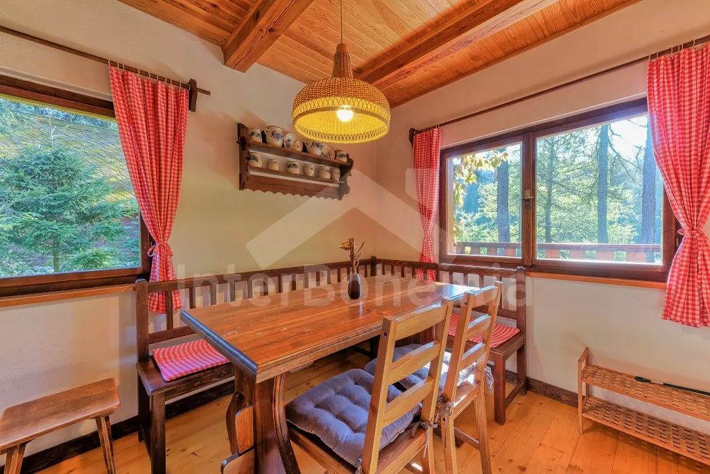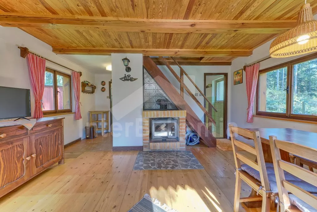 Vrijstaand huisje in het bos, gezellig ingericht. Ingang via het overdekte terras. Woonkamer met open haard, eettafel en satelliet-tv. Kitchenette met koelkast en vriezer, keramische kookplaat met 2 kookplaten, magnetron en waterkoker. Badkamer met douche, wastafel en toilet. Op de verdieping zijn twee slaapkamers, één met een tweepersoonsbed en twee éénpersoonsbedden en de tweede met twee éénpersoons bedden. Stoken middels de open haard. Het huisje staat op eigen bosgrondstuk, u beschikt over tuinmeubilair en kampvuurplaats. Eigen parkeergelegenheid.