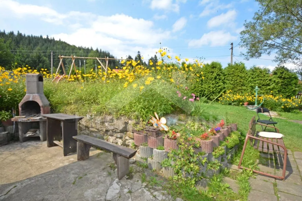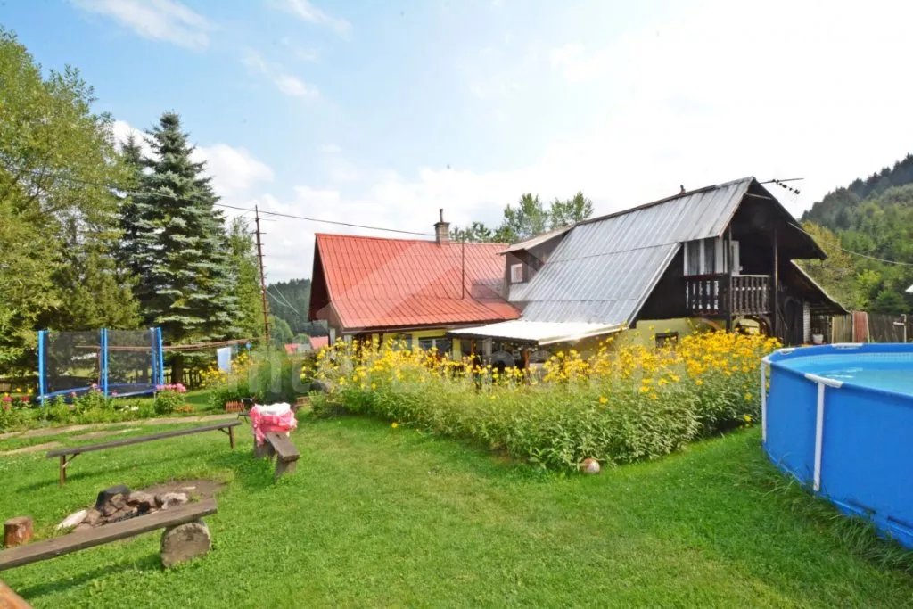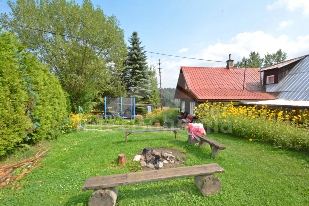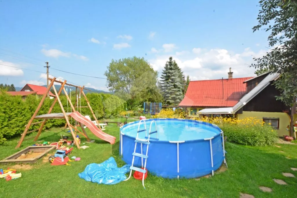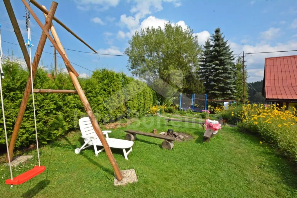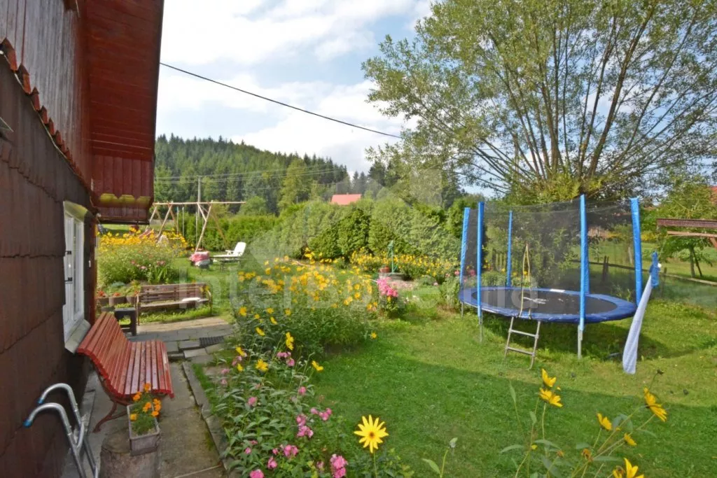 Volně stojící chalupa, velmi hezky a útulně zařízená. Vstup, chodba, hala s jídelním koutem a samostatné WC. Kuchyně s jídelním stolem, kachlovými kamny, plynovým sporákem s elektrickou troubou, lednicí, varnou konvicí a mikrovlnnou troubou. Obývací pokoj se sedací soupravou a televizí. Dvě ložnice – každá se dvěma samostatnými lůžky. Koupelna s rohovou vanou a sprchou. Toaleta. V patře se nachází ještě další 3 ložnice – dvě s dvojlůžkem a jedna se třemi samostatnými lůžky. Ústřední topení na tuhá paliva, možnost topit v kachlových kamnech. K dispozici je neoplocená zahrada, terasa s posezením a markýzou, zahradní nábytek se slunečníkem, přenosný gril, houpací lavice, pískoviště a bazén o průměru 3,6 m. Vlastní parkoviště.