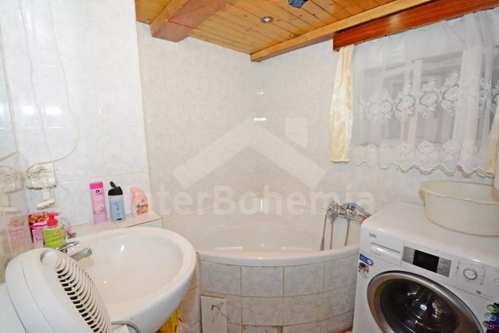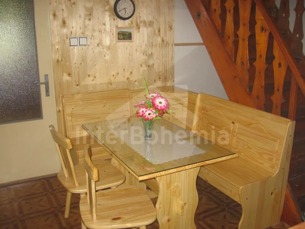 Volně stojící chalupa, velmi hezky a útulně zařízená. Vstup, chodba, hala s jídelním koutem a samostatné WC. Kuchyně s jídelním stolem, kachlovými kamny, plynovým sporákem s elektrickou troubou,… Více informací
