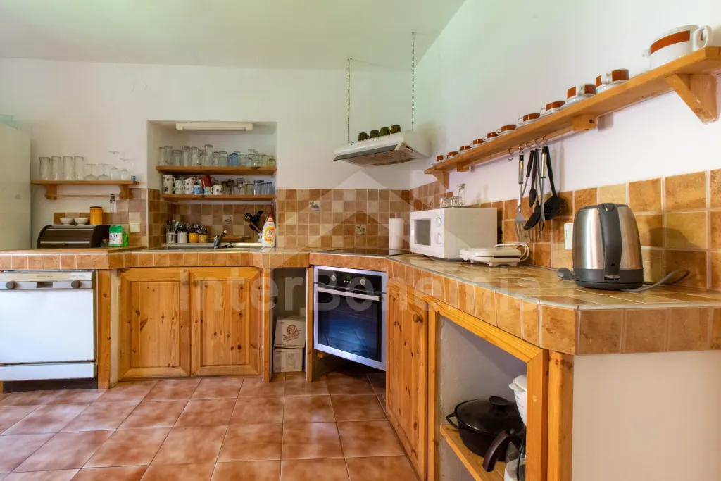 Apartmán č.1: Vchod, kuchyně s jídelním koutem vybavená sklokeramickou varnou deskou, elektrickou troubou, mikrovlnnou troubou, rychlovarnou konvicí. Za kuchyní se nachází spíž s ledničkou. Z kuchyně se přechází do obytné místnosti s rozkládací sedací soupravou (2 extra lůžka), křeslem a TV, kde se o tepelnou pohodu starají krbová kamna. Ložnice s dvoulůžkem, 2x jednolůžkem a pohovkou. Koupelna se sprchovým koutem, WC, umyvadlem a pračkou.