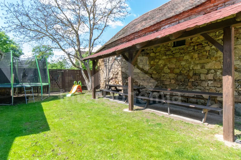Vytápění objektu skrze krbová kamna a přímotopy. Uzavřený dvůr s venkovním posezením pod terasou a druhé sezení se zahradním krbem s možností grilování za každého počasí. Pro děti je k dispozici trampolína, skluzavka a pískoviště.
