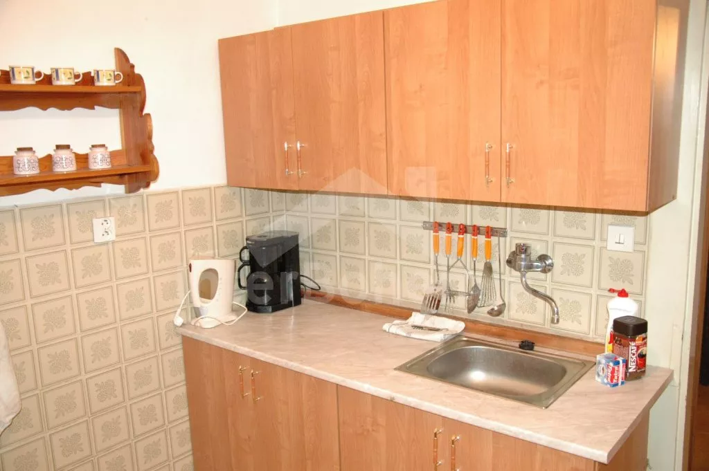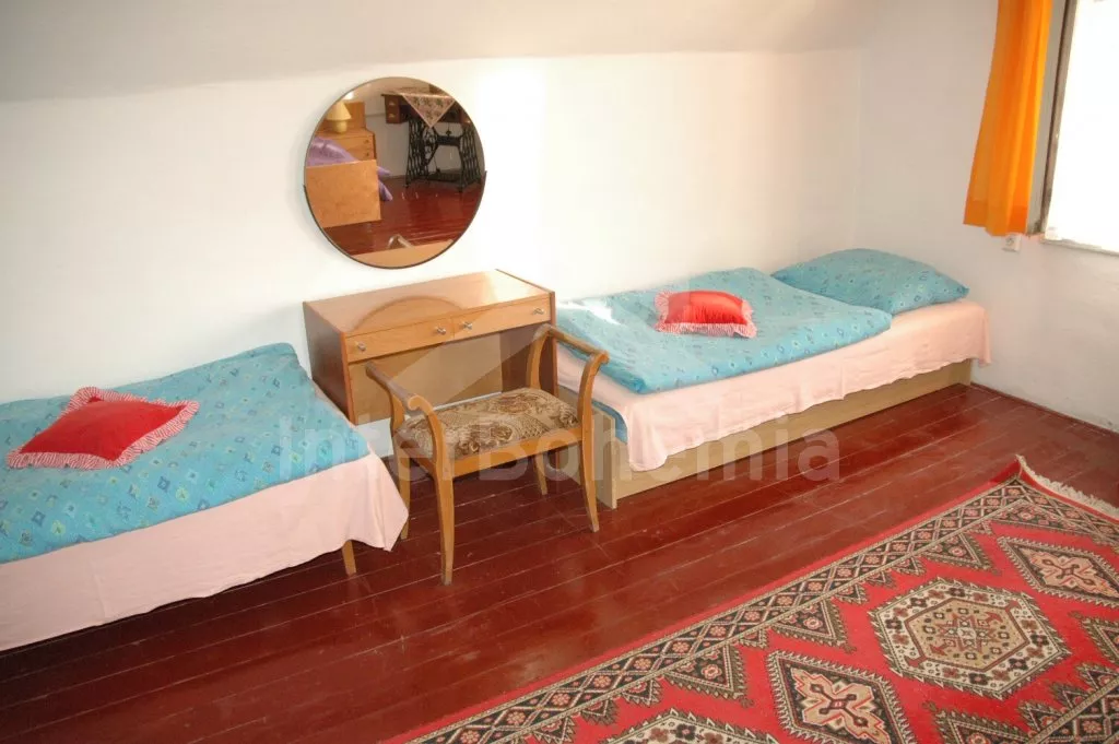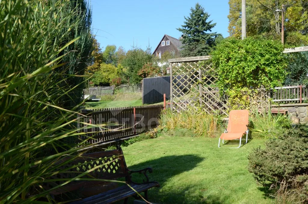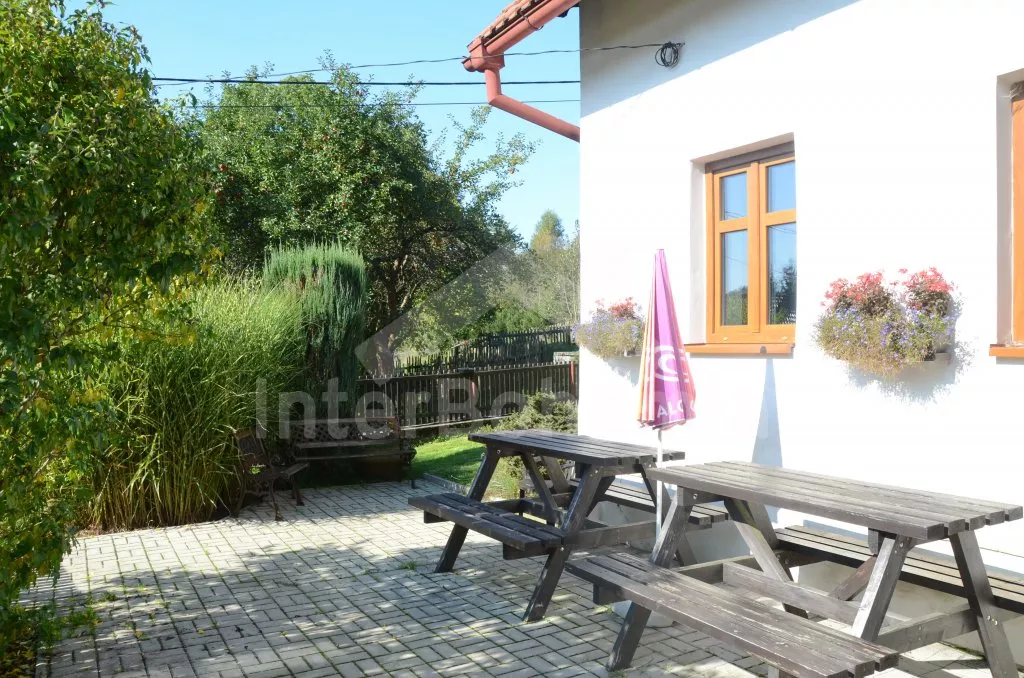 Volně stojící rekreační dům. Vstup, hala, obývací pokoj s krbovými kamny, televizí s DVD, posezením a jídelními stoly pro celkem 12 osob. Malá kuchyňka s elektrickým sporákem, lednicí, kávovarem, varnou konvicí a mikrovlnnou troubou. Koupelna se sprchou. Samostatná toaleta. Ložnice se dvěma samostatnými lůžky a posezením. V patře se nachází hala, druhá toaleta a tři ložnice – jedna s dvojlůžkem a dvěma samostatnými lůžky, druhá průchozí ložnice s dvojlůžkem a jedním samostatným lůžkem a třetí s dvojlůžkem a jedním samostatným lůžkem. Ústřední topení na tuhá paliva (v zimních měsících topí pronajímatel – chodí ke kotli v garáži). Zahrada je oplocená, k dispozici je dřevěný zahradní nábytek se slunečníkem, přenosný gril. Vlastní parkoviště.