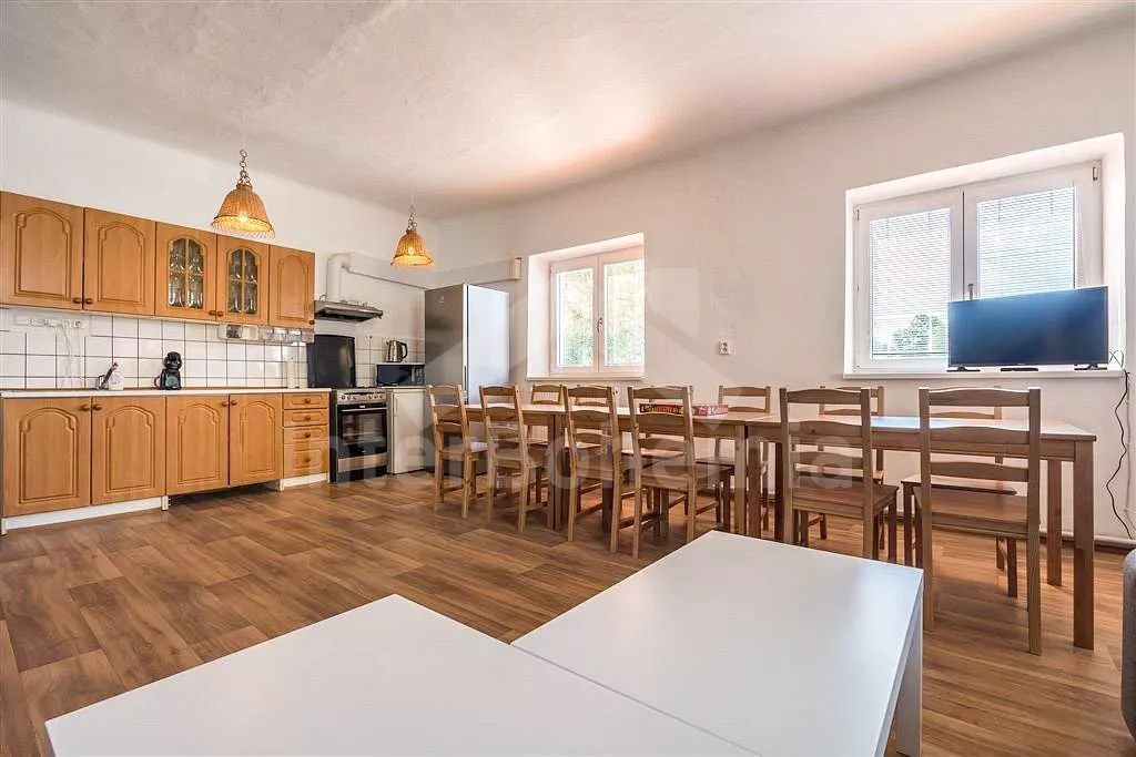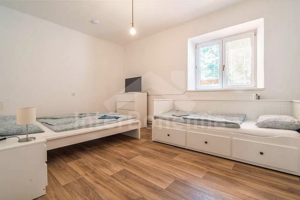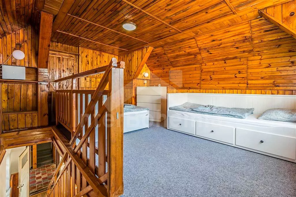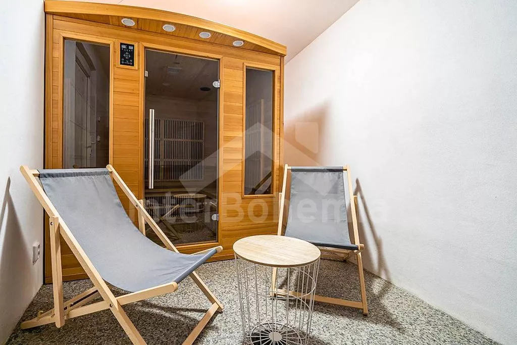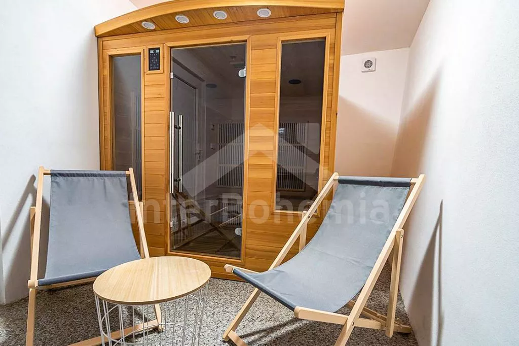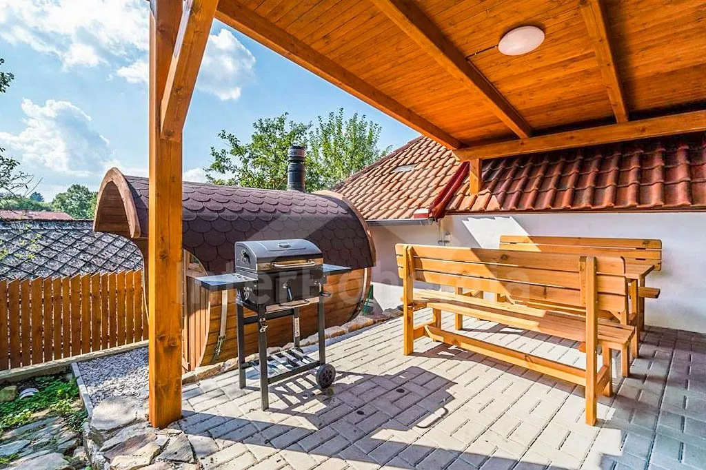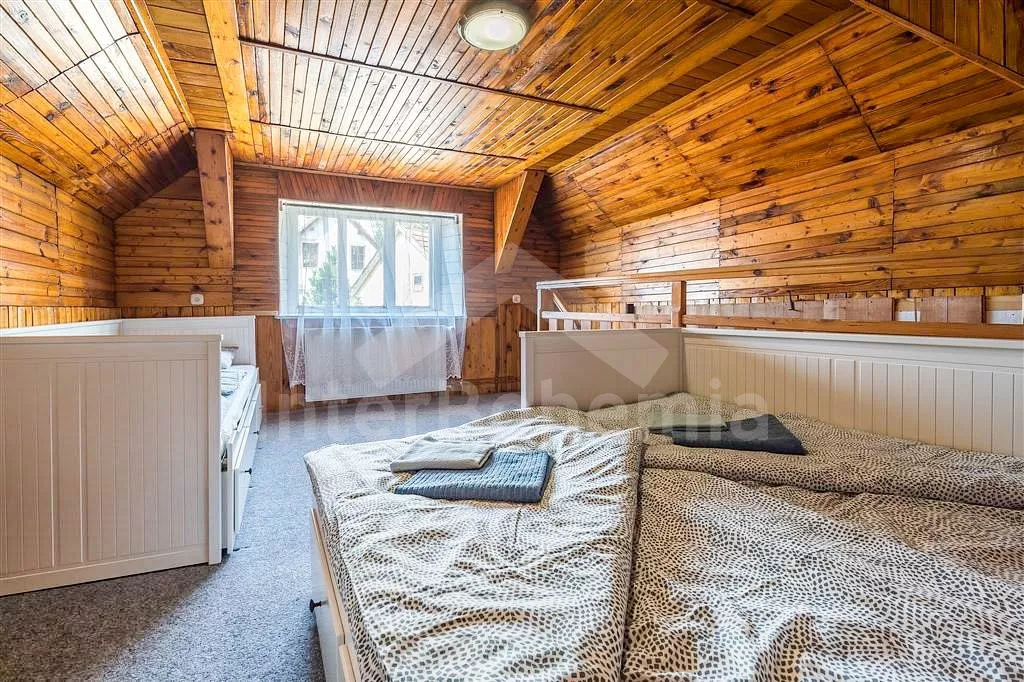 Chalupa v klidné lokalitě s wellness a zastřešenou terasou. Obývací pokoj disponuje 2x rozkládací pohovkou (celkem 4 lůžka), konferenčním stolkem, TV a dlouhým jídelním stolem s dětskou stoličkou. Kuchyně se sporákem a troubou, lednicí s mrazákem, kávovarem, mikrovlnnou troubou, varnou konvicí a veškerým vybavením na vaření. Moderní koupelna se sprchou a umyvadlem. Samostatné WC. Ložnice s dvoulůžkem, rozkládacím dvoulůžkem a TV. V podkroví ložnice s 2x rozkládacím dvoulůžkem. K dispozici vnitřní finská sauna a vířivka. Objekt je vytápěn ústředním topením. Oplocená zahrada se zastřešenou terasou, posezením, grilem, koupací kádí a druhou srubovou saunou. Možnost využití stolního fotbálku a stolu na ping-pong. Parkování před objektem pro 4 automobily.