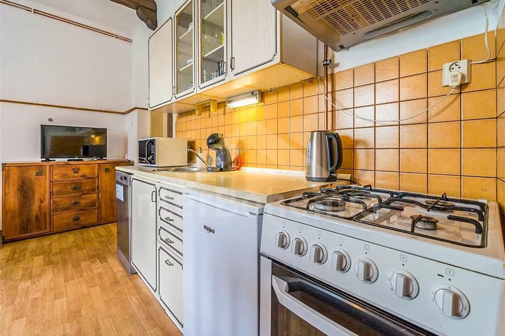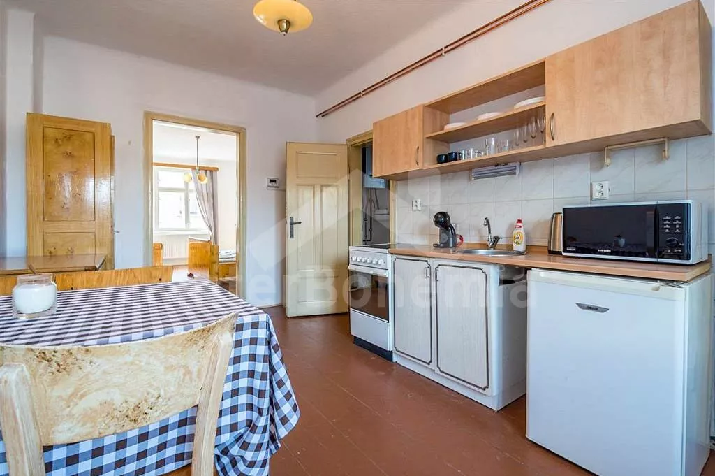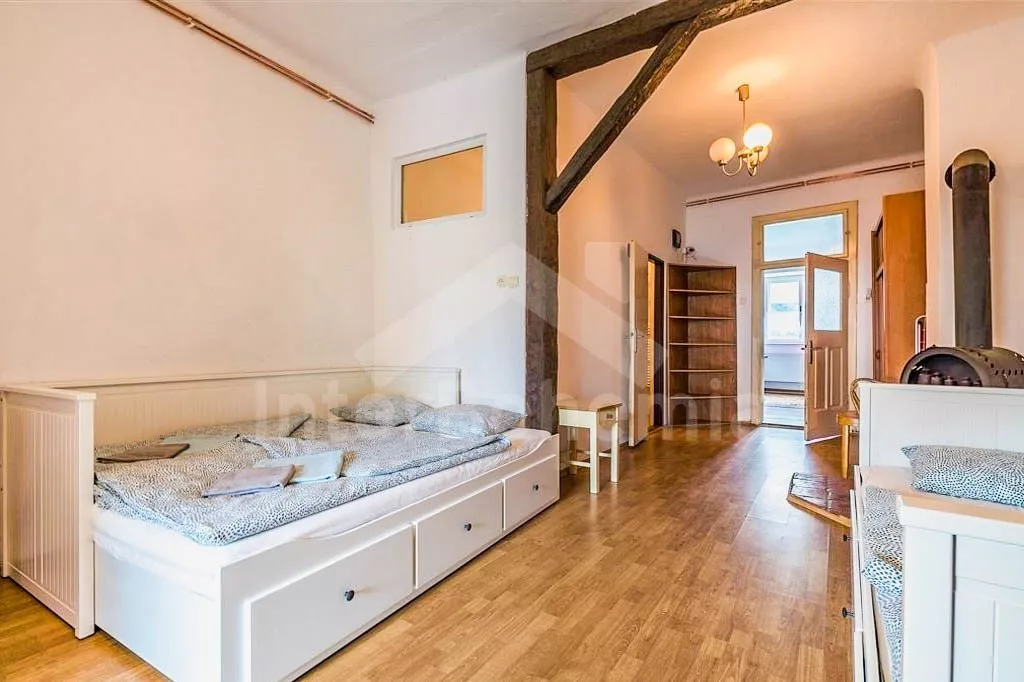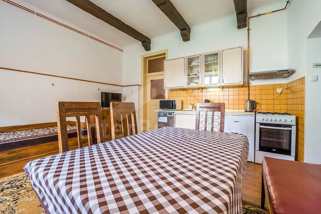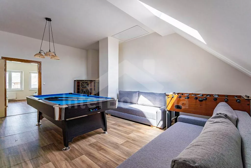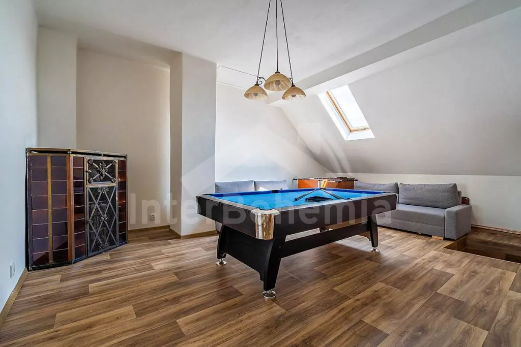 V prvním patře obývací pokoj s kulečníkem a 2x rozkládací pohovkou. Kuchyňka s jídelním stolkem , el.sporákem, lednicí, kávovarem, mikrovlnnou troubou, rychlovarnou konvicí a vybavením na vaření. Ložnice s TV, dvoulůžkem a 2x rozkládacím dvoulůžkem. Druhá ložnice s TV, dvoulůžkem a 2x rozkládacím dvoulůžkem. Koupelna se sprchou, umyvadlem a WC. Objekt je vytápěn ústředním topením. Zastřešená terasa s posezením a grilem. Oplocená zahrada s koupací kádí, srubovou saunou, trampolínou pro děti a mini pískovištěm. Parkování před objektem pro 4 automobily.