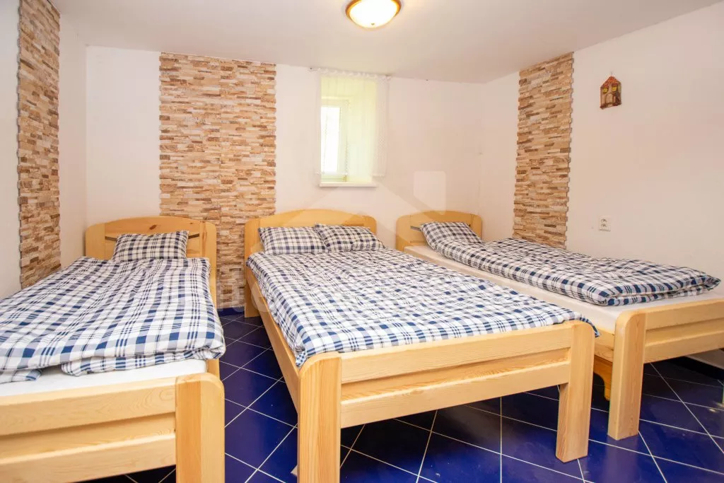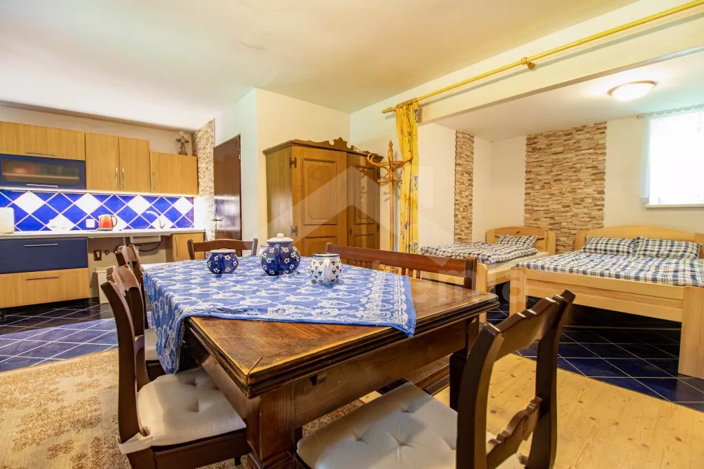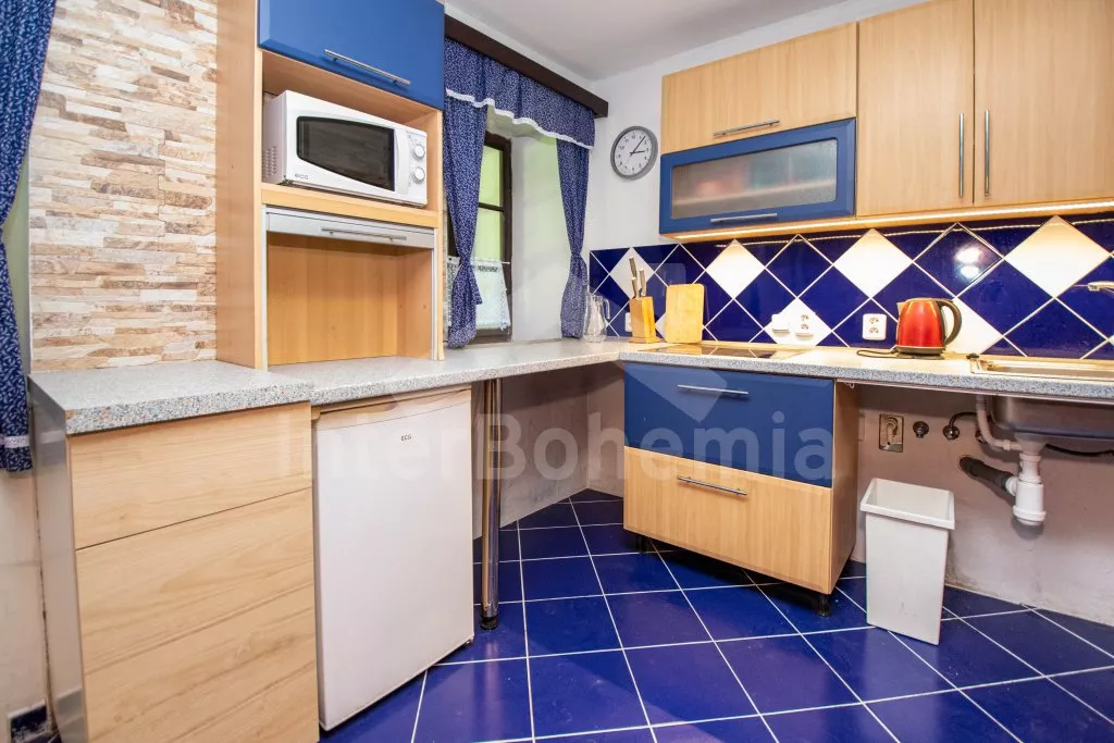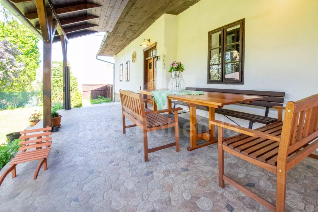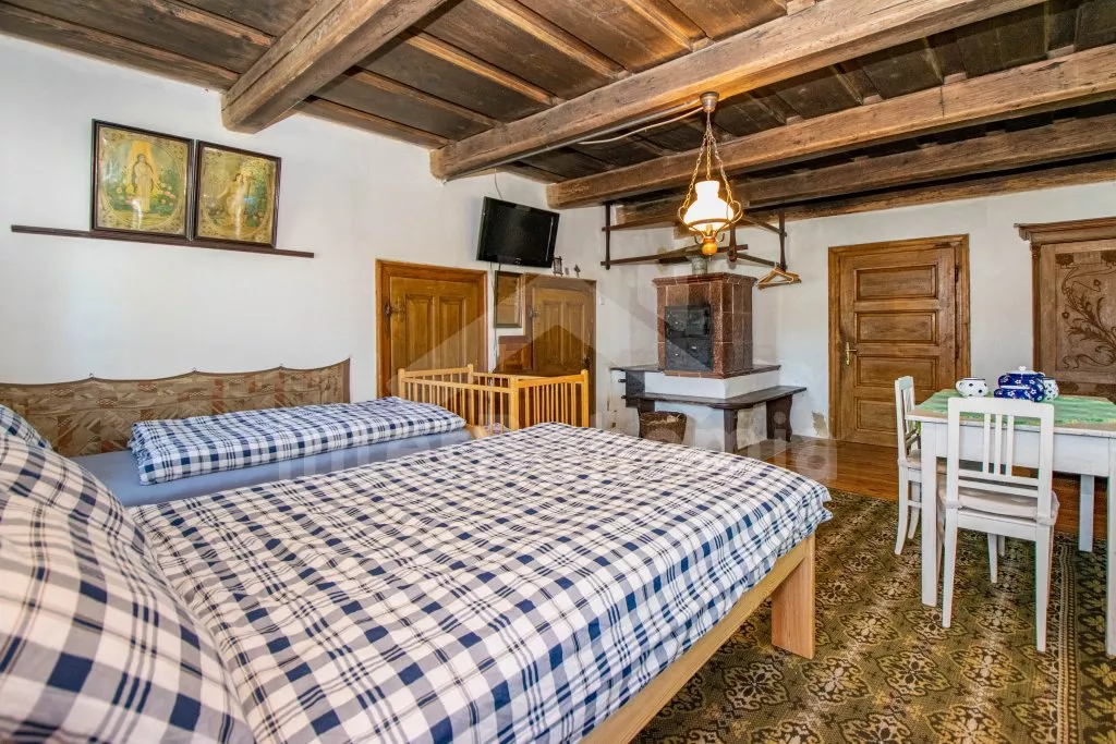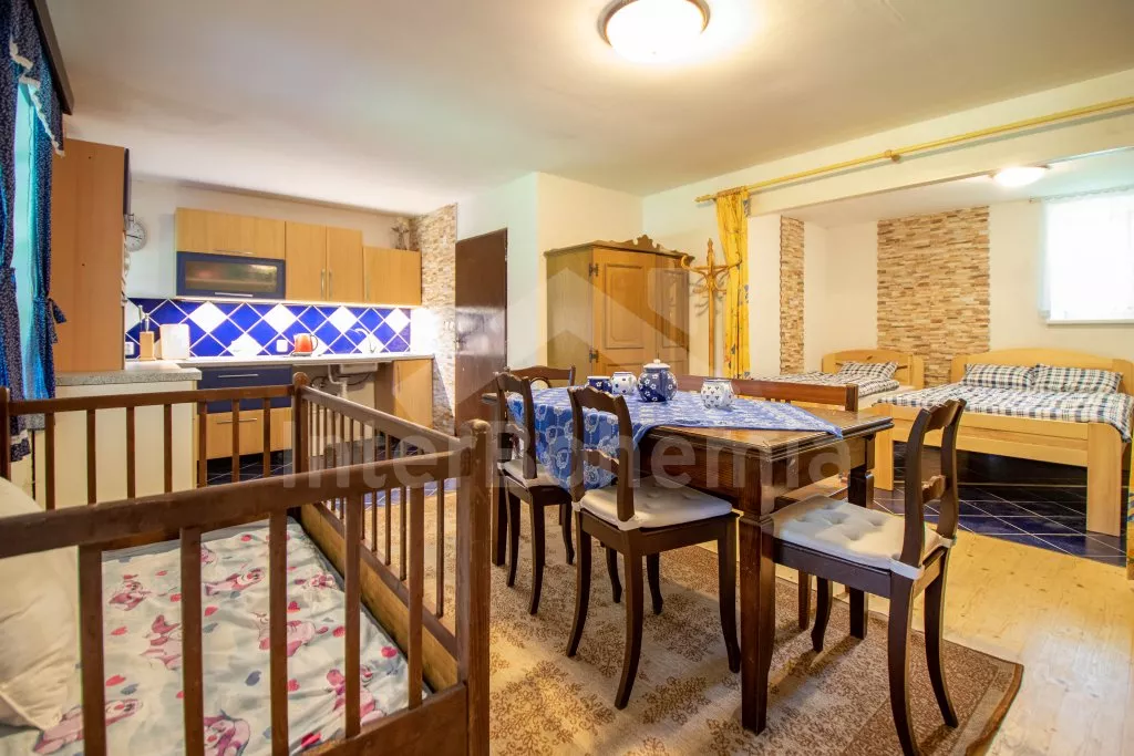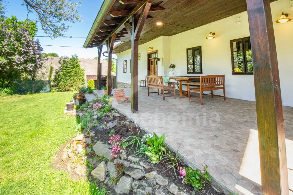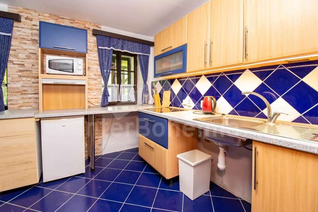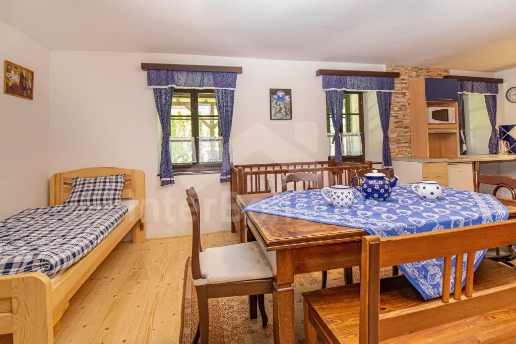 Chalupa s uzavřeným dvorem a vlastním bazénem se nachází ve výšce 620 m. n. m v malebné vesničce obklopené přírodou. Světnice s kachlovými kamny, jídelním stolem, TV, dvoulůžkem, 2x jednolůžkem a dětskou postýlkou. Vstup do prostorné kuchyně se sklokeramickou deskou, troubou, lednicí s mrazákem, rychlovarnou konvicí, sporákem na tuhá paliva, mikrovlnnou troubou a myčkou na nádobí. Ve druhé světnici kuchyňský kout se základním kuchyňským vybavením, rychlovarnou konvicí, lednicí, mikrovlnnou troubou a jídelním stolem. Dále krbová kamna, prostorná postýlka, 3x jednolůžko a dvoulůžko. Koupelna se sprchou, umyvadlem a pračkou. Samostatná toaleta. Objekt je vytápěn kamny. Velká, zastřešená pergola s posezením a grilem. Houpací lavice, bazén o průměru 2,5 m a pro děti malé pískoviště, bazének a skluzavka. Parkování na pozemku pro 2 automobily a 2 parkovací místa před objektem.