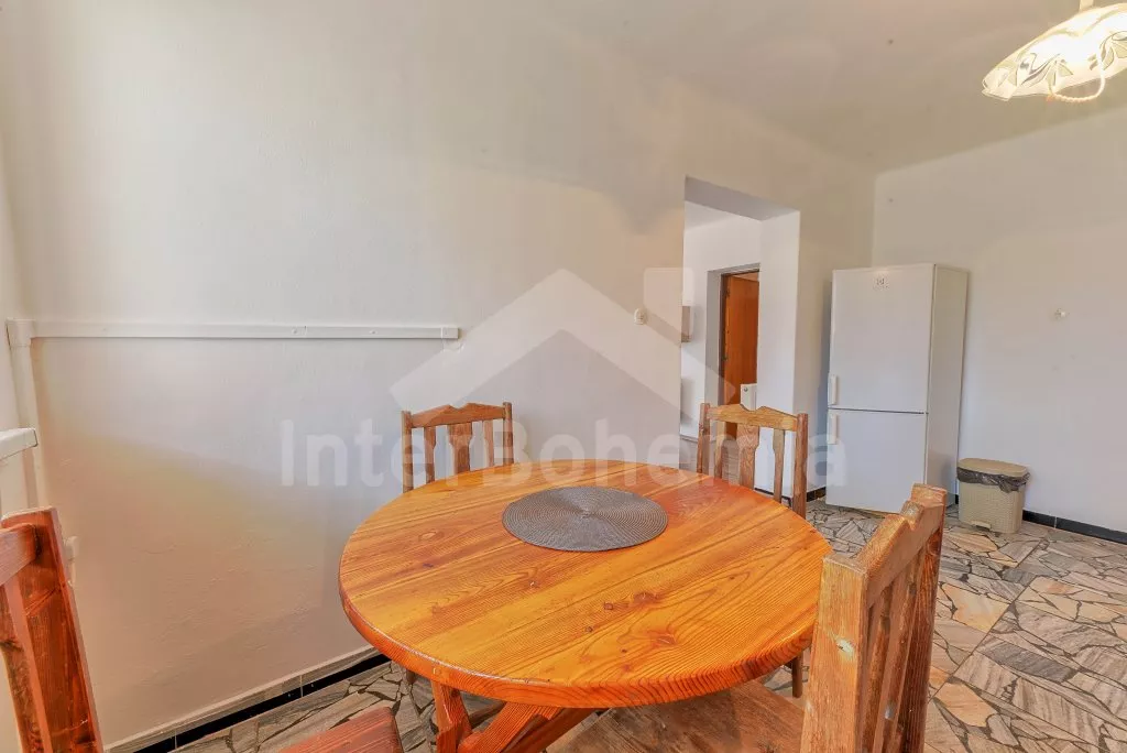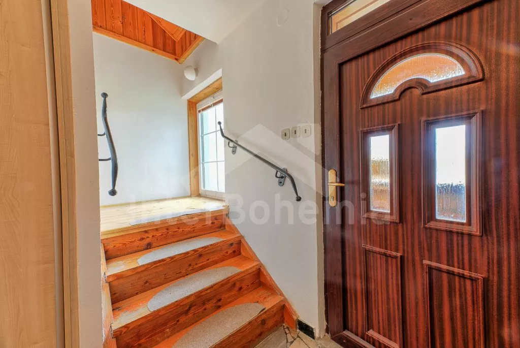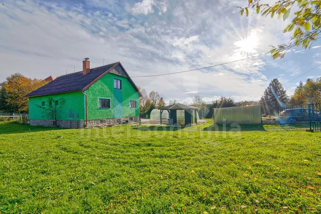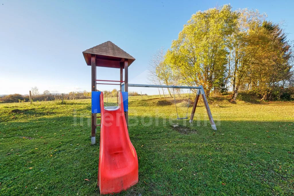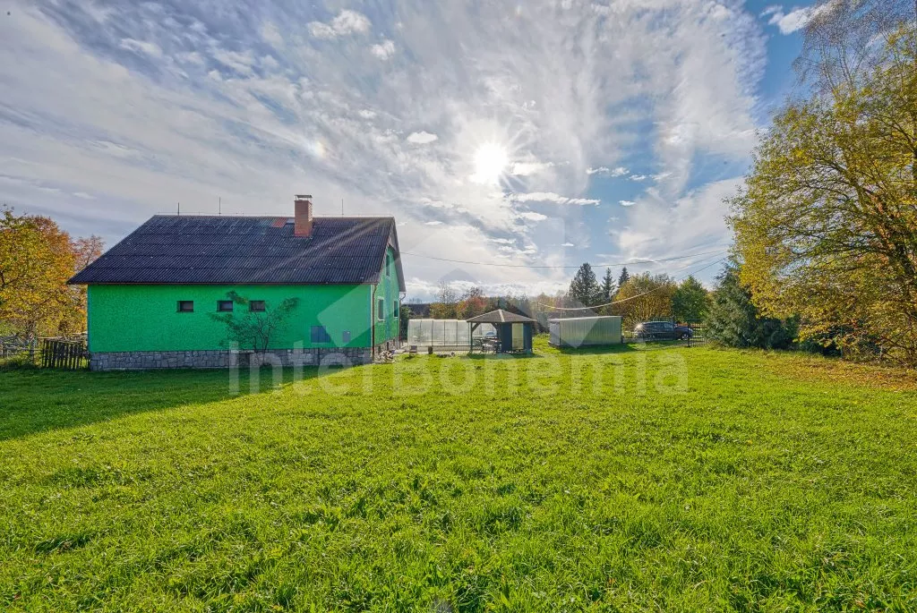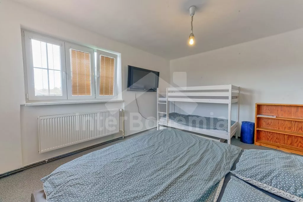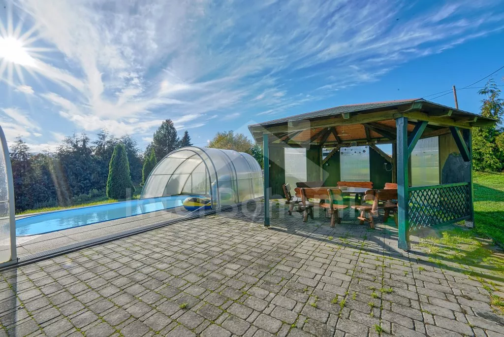 V roce 2018 částečně zrekonstruovaný prostorný dům s bazénem (celoroční použití), krytou pergolou (altánem) a velkou neoplocenou zahradou. Ideální místo pro velkou skupinu přátel. Vstup, centrální hala, na kterou navazuje obývací pokoj spojený s kuchyní. V kuchyni vybavená kuchyňská linka se sporákem (sklokeramický), troubou, mikrovlnnou troubou, lednicí s mrazákem, kávovarem, rychlovarnou konvicí, nádobím a myčkou na nádobí. Dále jídelní stůl pro 4 osoby. V obývacím pokoji druhý jídelní stůl pro 8 osob, sedací souprava s konferenčním stolkem, LCD televize a elektrický krb. V přízemí se nacházejí 2 ložnice, první s dvoulůžkem, palandou a LCD TV, druhá ložnice s dvoulůžkem a jedním jednolůžkem. Dále koupelna se sprchovým koutem, rohovou vanou a umyvadlem. Samostatné WC. V podkroví vpravo se nacházejí dvě ložnice, první se třemi jednolůžky, druhá s dvoulůžkem a dvěma jednolůžky. Třetí podkrovní ložnice v čele s jedním dvoulůžkem a sedací soupravou, konferenčním stolkem a LCD TV. Druhá koupelna se sprchovým koutem a umyvadlem. Druhé samostatné WC. Vytápění objektu ústřední na tuhá paliva + elektrokotel. Hosté mají k dispozici neoplocenou zahradu s krytou pergolou (altán), zapuštěný bazén 6 x 3 m s vyhříváním, přenosný gril, pro děti pak k dispozici venkovní hřiště 50 m od objektu s prolézačkami, houpačkou a skluzavkou. Parkování u objektu pro 6 automobilů.