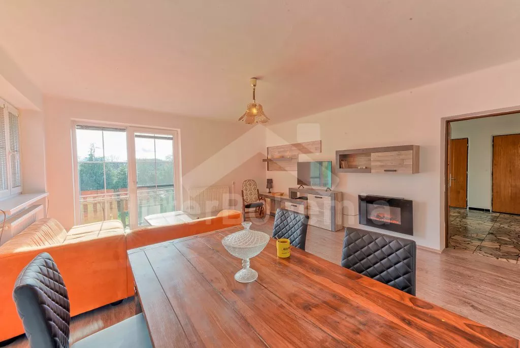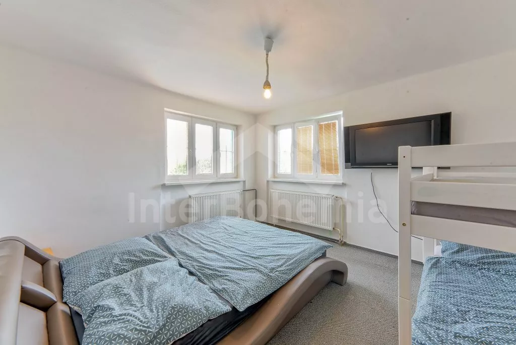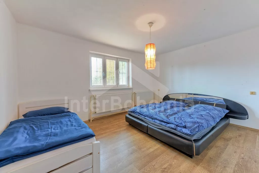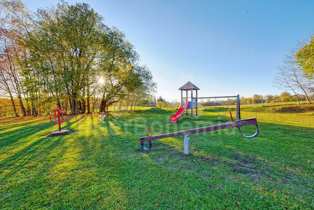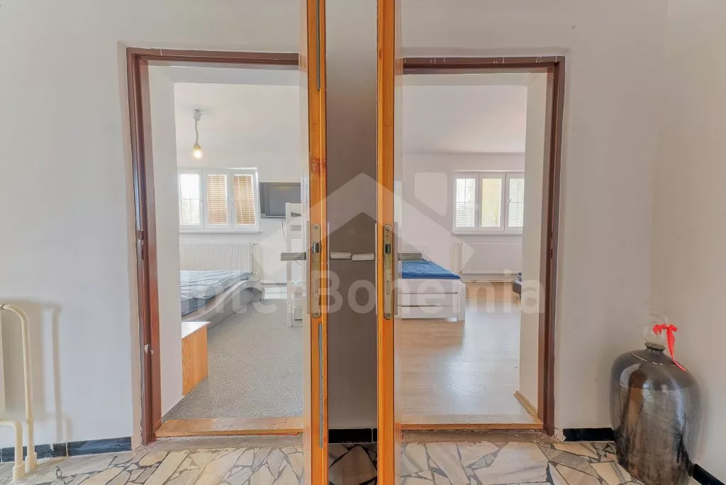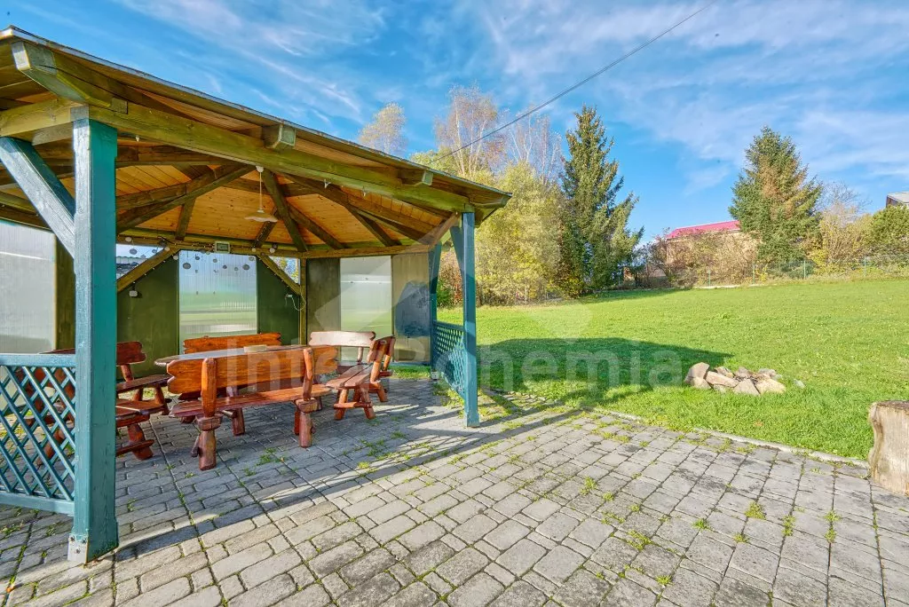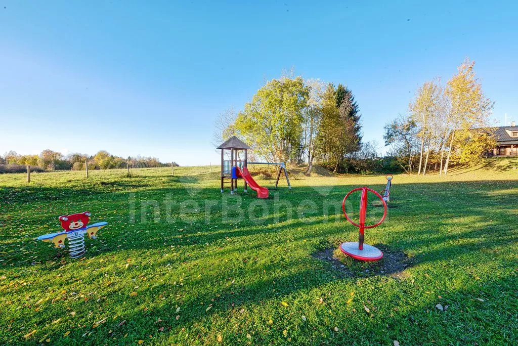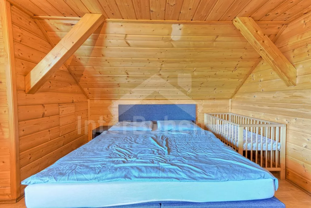 V roce 2018 částečně zrekonstruovaný prostorný dům s bazénem (celoroční použití), krytou pergolou (altánem) a velkou neoplocenou zahradou. Ideální místo pro velkou skupinu přátel. Vstup, centrální hala, na kterou navazuje obývací pokoj spojený s kuchyní. V kuchyni vybavená kuchyňská linka se sporákem (sklokeramický), troubou, mikrovlnnou troubou, lednicí s mrazákem, kávovarem, rychlovarnou konvicí, nádobím a myčkou na nádobí. Dále jídelní stůl pro 4 osoby. V obývacím pokoji druhý jídelní stůl pro 8 osob, sedací souprava s konferenčním stolkem, LCD televize a elektrický krb. V přízemí se nacházejí 2 ložnice, první s dvoulůžkem, palandou a LCD TV, druhá ložnice s dvoulůžkem a jedním jednolůžkem. Dále koupelna se sprchovým koutem, rohovou vanou a umyvadlem. Samostatné WC. V podkroví vpravo se nacházejí dvě ložnice, první se třemi jednolůžky, druhá s dvoulůžkem a dvěma jednolůžky. Třetí podkrovní ložnice v čele s jedním dvoulůžkem a sedací soupravou, konferenčním stolkem a LCD TV. Druhá koupelna se sprchovým koutem a umyvadlem. Druhé samostatné WC. Vytápění objektu ústřední na tuhá paliva + elektrokotel. Hosté mají k dispozici neoplocenou zahradu s krytou pergolou (altán), zapuštěný bazén 6 x 3 m s vyhříváním, přenosný gril, pro děti pak k dispozici venkovní hřiště 50 m od objektu s prolézačkami, houpačkou a skluzavkou. Parkování u objektu pro 6 automobilů.