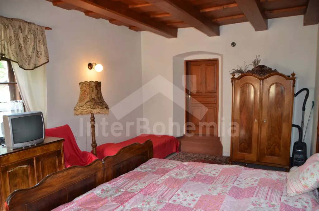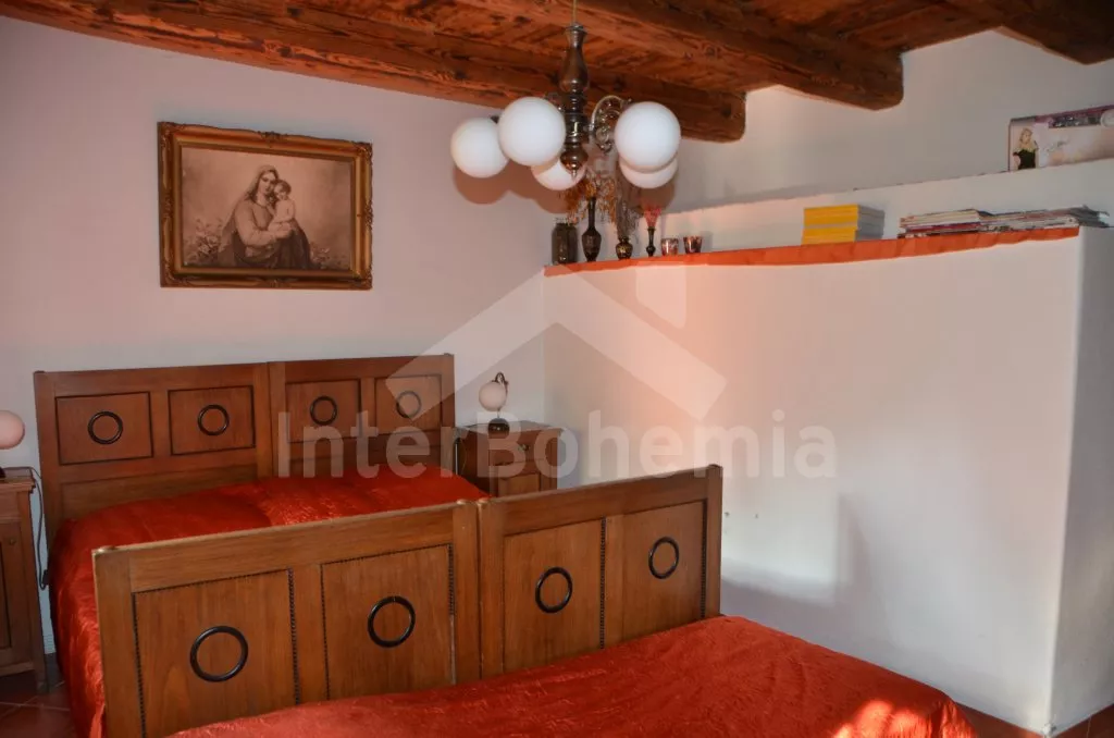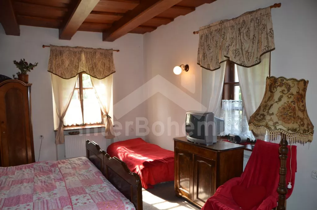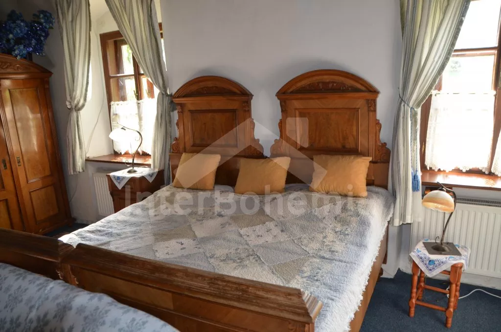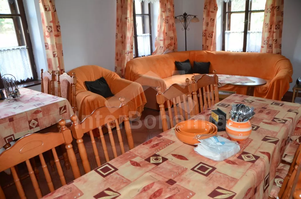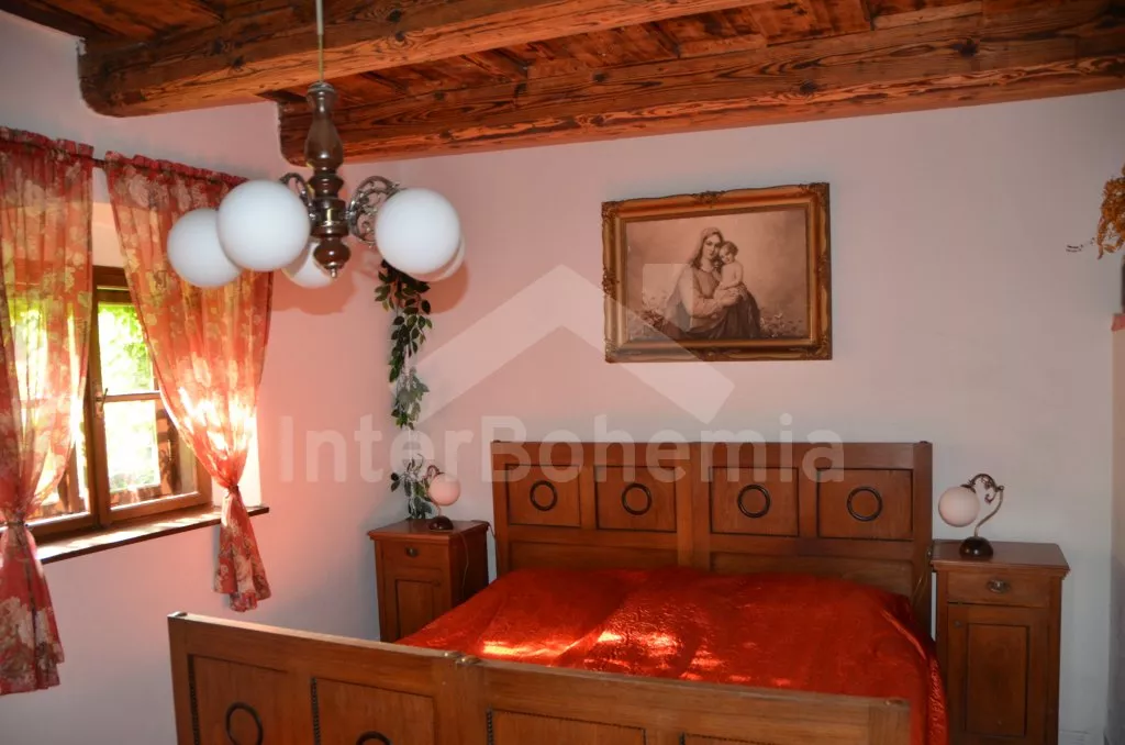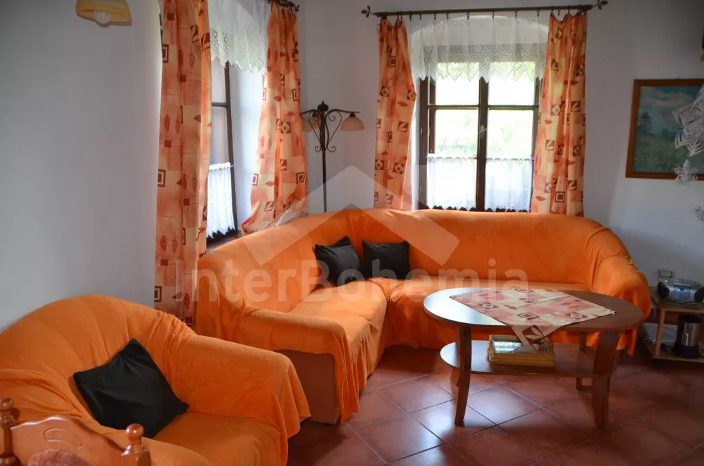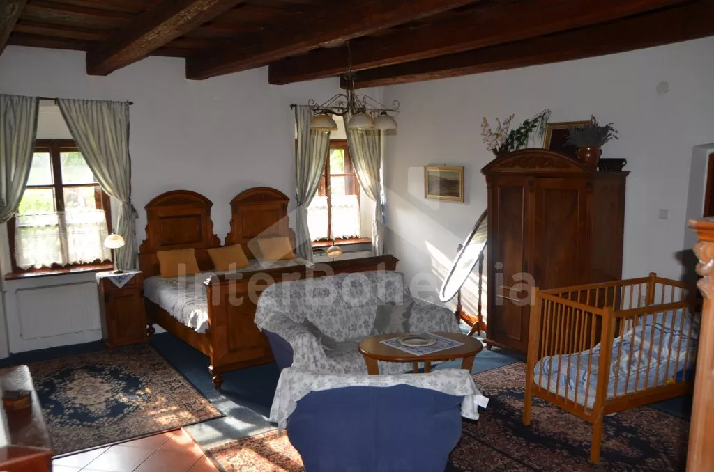Stylová, velmi prostorná chalupa - bývalá pekárna z roku 1800 (v domě se zachovala původní pec). Dům prošel v roce 2004 celkovou rekonstrukcí a je velmi vkusně a útulně zařízen. Vstup, chodba, společenská místnost se sedací soupravou pro 8 osob, dvěma jídelními stoly pro celkem 12 osob, televizí se satelitním příjmem a DVD. Otevřená kuchyně s plynovým sporákem s elektrickou troubou, lednicí, kávovarem, mikrovlnnou troubou, varnou konvicí, myčkou na nádobí. Čtyři ložnice – první s dvojlůžkem a možností jedné přistýlky, druhá ložnice průchozí s dvojlůžkem, sedací soupravou pro 8 osob, televizí se satelitním příjmem a krbovými kamny, třetí ložnice s dvojlůžkem a dvěma samostatnými lůžky a čtvrtá ložnice průchozí se dvěma samostatnými lůžky. Koupelna s vanou a toaletou. Ústřední podlahové topení na plyn. Zahrada je oplocená, k dispozici je příjemné zastřešené posezení, zahradní nábytek, zahradní gril, stolní tenis a ohniště. Pro děti je k dispozici houpačka. Vlastní parkoviště.