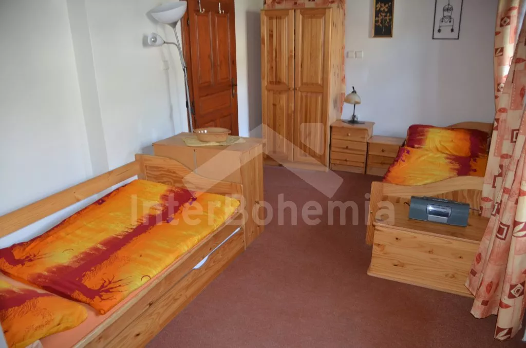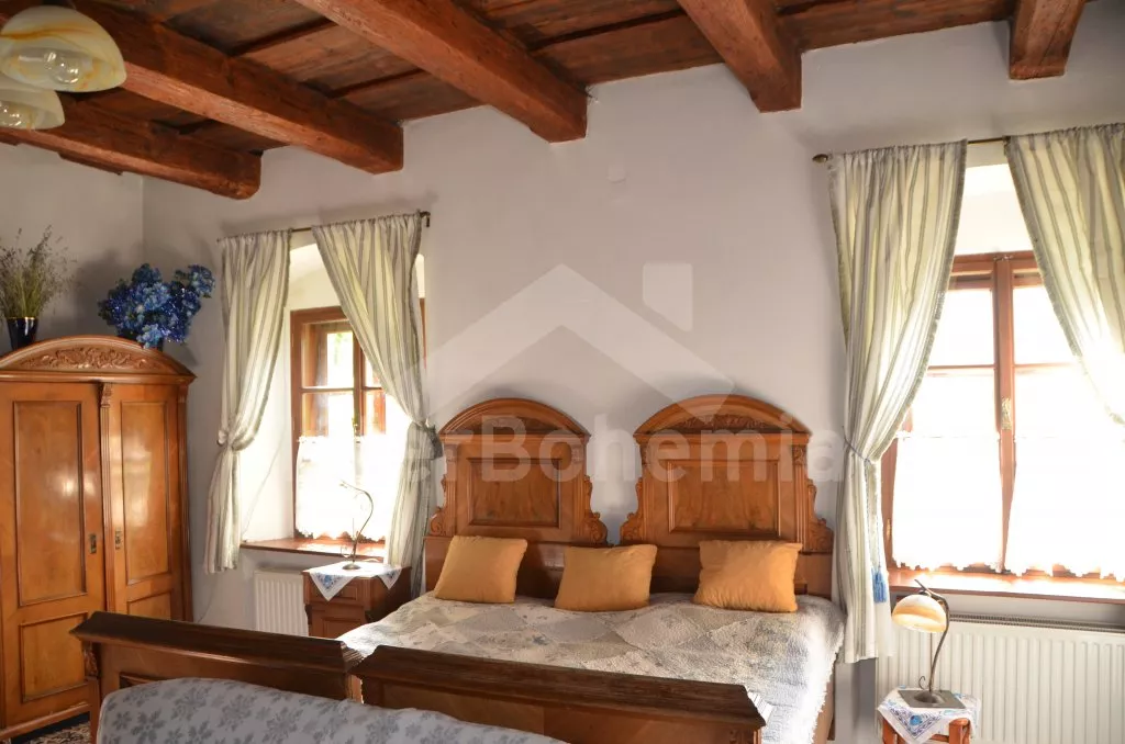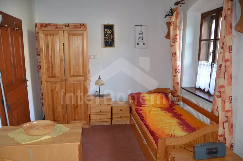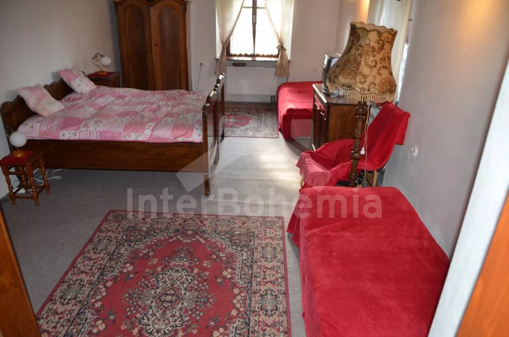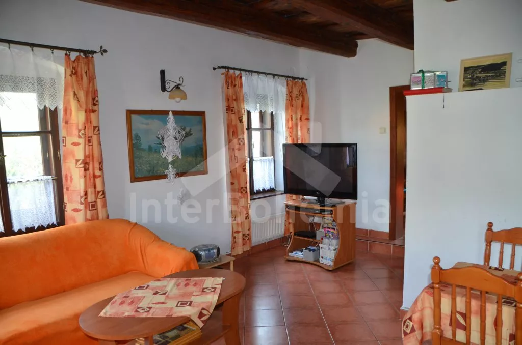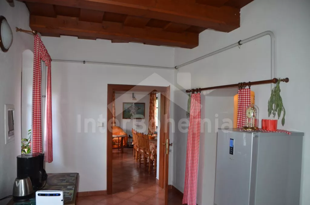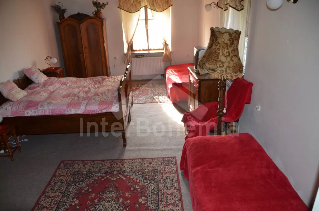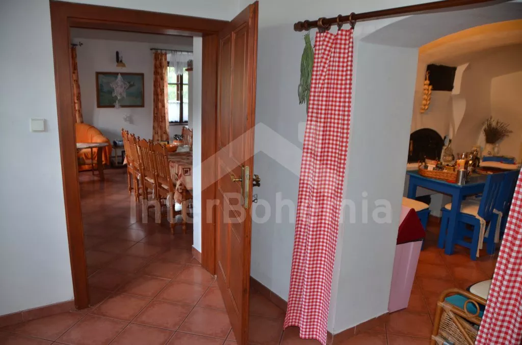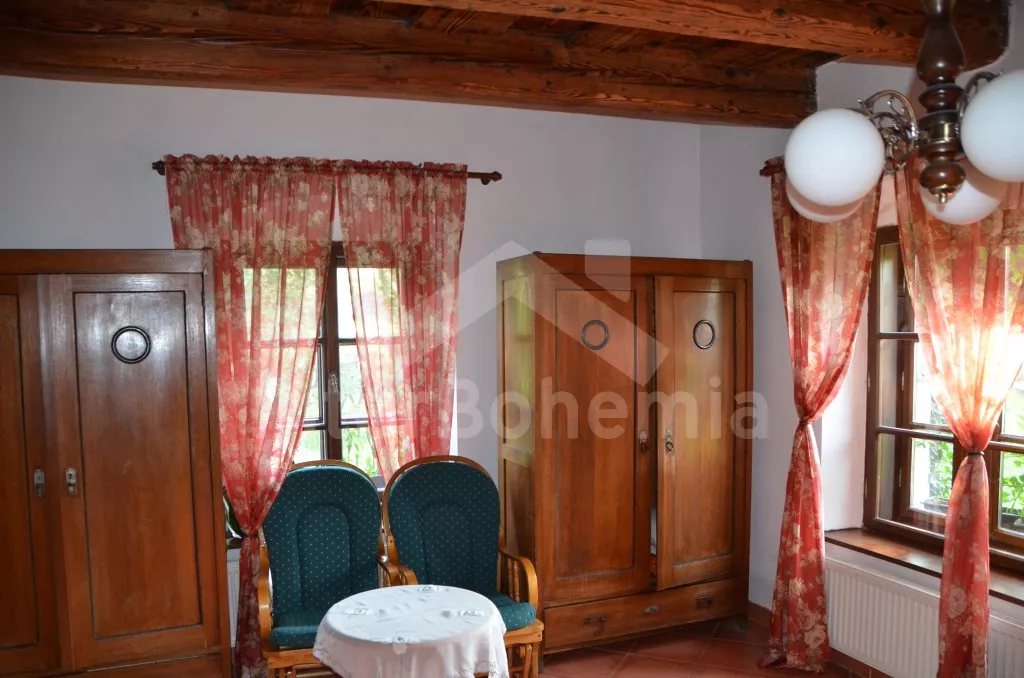 Stylová, velmi prostorná chalupa - bývalá pekárna z roku 1800 (v domě se zachovala původní pec). Dům prošel v roce 2004 celkovou rekonstrukcí a je velmi vkusně a útulně zařízen. Vstup, chodba, společenská místnost se sedací soupravou pro 8 osob, dvěma jídelními stoly pro celkem 12 osob, televizí se satelitním příjmem a DVD. Otevřená kuchyně s plynovým sporákem s elektrickou troubou, lednicí, kávovarem, mikrovlnnou troubou, varnou konvicí, myčkou na nádobí. Čtyři ložnice – první s dvojlůžkem a možností jedné přistýlky, druhá ložnice průchozí s dvojlůžkem, sedací soupravou pro 8 osob, televizí se satelitním příjmem a krbovými kamny, třetí ložnice s dvojlůžkem a dvěma samostatnými lůžky a čtvrtá ložnice průchozí se dvěma samostatnými lůžky. Koupelna s vanou a toaletou. Ústřední podlahové topení na plyn. Zahrada je oplocená, k dispozici je příjemné zastřešené posezení, zahradní nábytek, zahradní gril, stolní tenis a ohniště. Pro děti je k dispozici houpačka. Vlastní parkoviště.