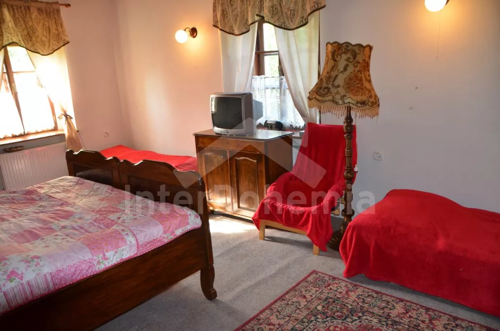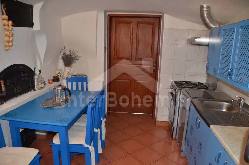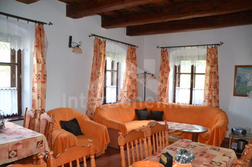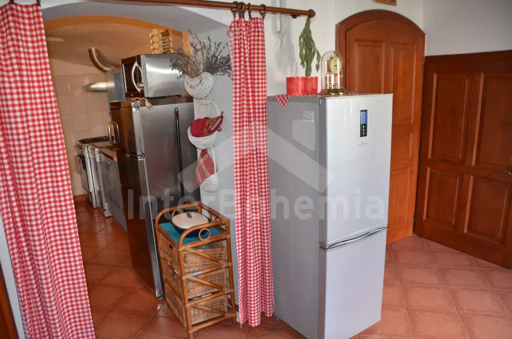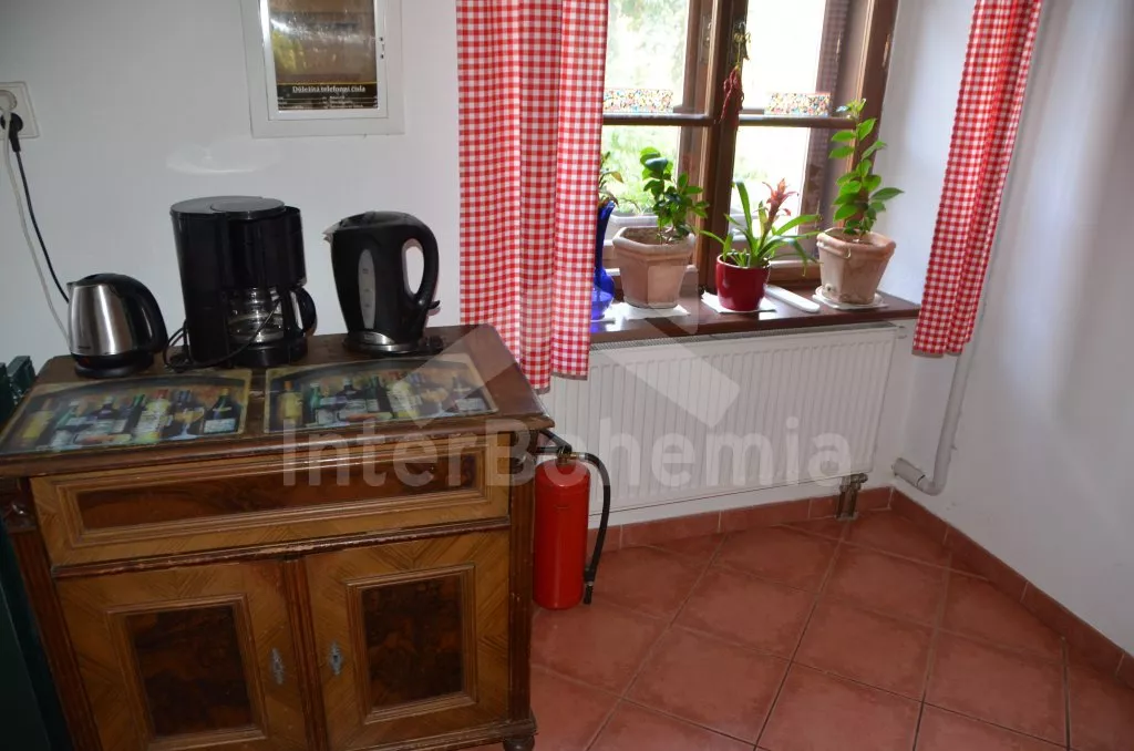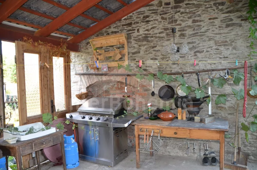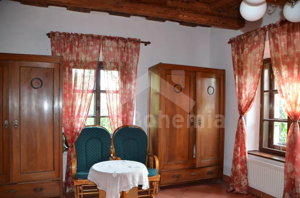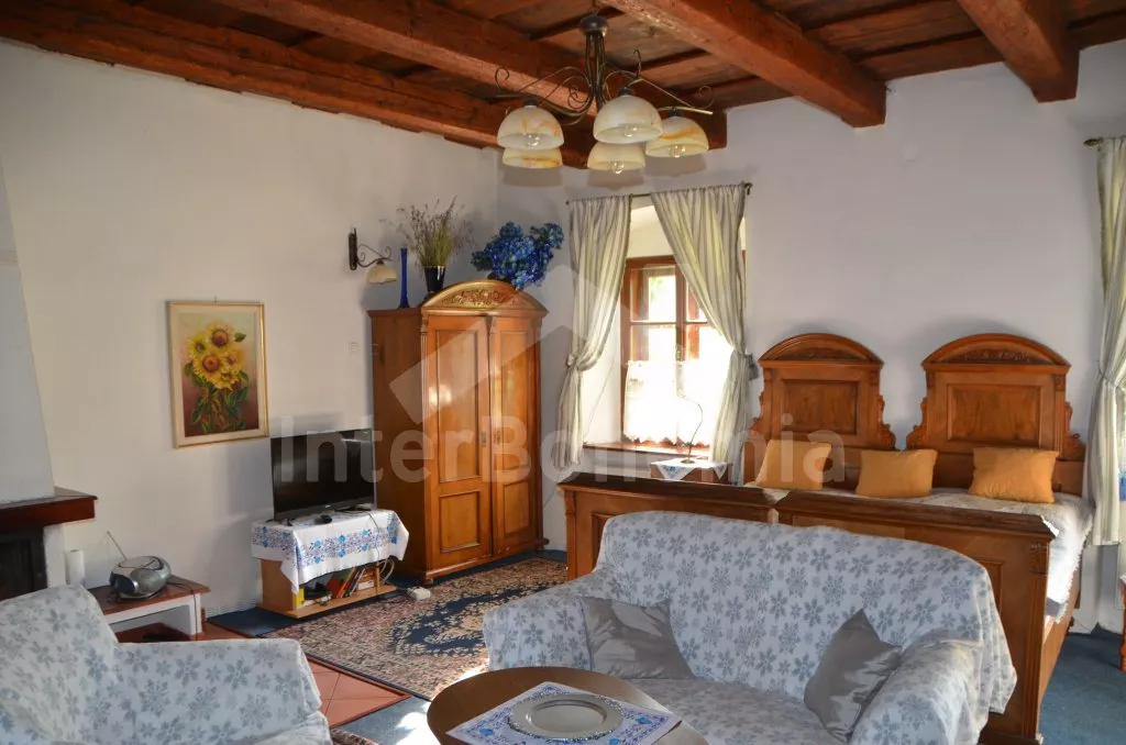 Stylová, velmi prostorná chalupa - bývalá pekárna z roku 1800 (v domě se zachovala původní pec). Dům prošel v roce 2004 celkovou rekonstrukcí a je velmi vkusně a útulně zařízen. Vstup, chodba, společenská místnost se sedací soupravou pro 8 osob, dvěma jídelními stoly pro celkem 12 osob, televizí se satelitním příjmem a DVD. Otevřená kuchyně s plynovým sporákem s elektrickou troubou, lednicí, kávovarem, mikrovlnnou troubou, varnou konvicí, myčkou na nádobí. Čtyři ložnice – první s dvojlůžkem a možností jedné přistýlky, druhá ložnice průchozí s dvojlůžkem, sedací soupravou pro 8 osob, televizí se satelitním příjmem a krbovými kamny, třetí ložnice s dvojlůžkem a dvěma samostatnými lůžky a čtvrtá ložnice průchozí se dvěma samostatnými lůžky. Koupelna s vanou a toaletou. Ústřední podlahové topení na plyn. Zahrada je oplocená, k dispozici je příjemné zastřešené posezení, zahradní nábytek, zahradní gril, stolní tenis a ohniště. Pro děti je k dispozici houpačka. Vlastní parkoviště.
