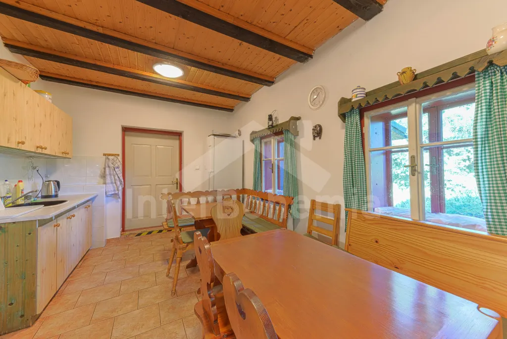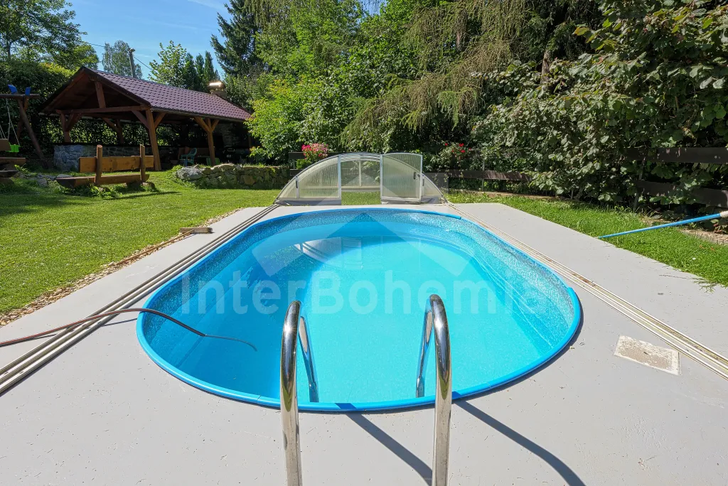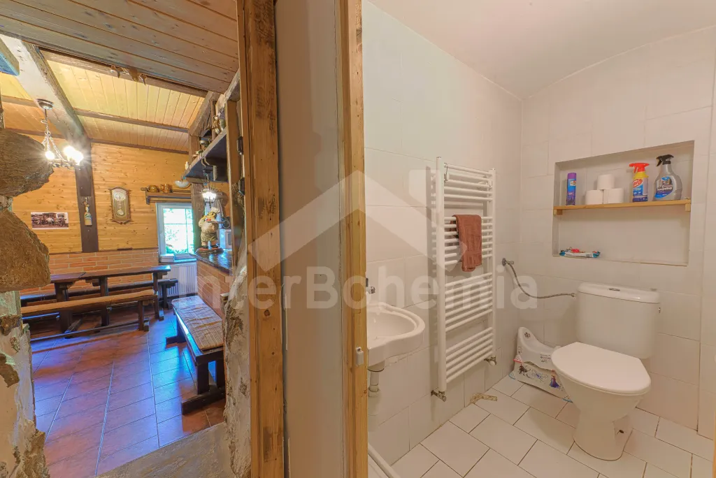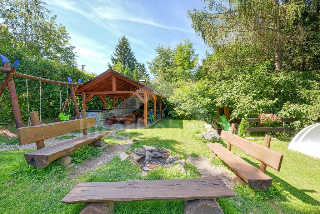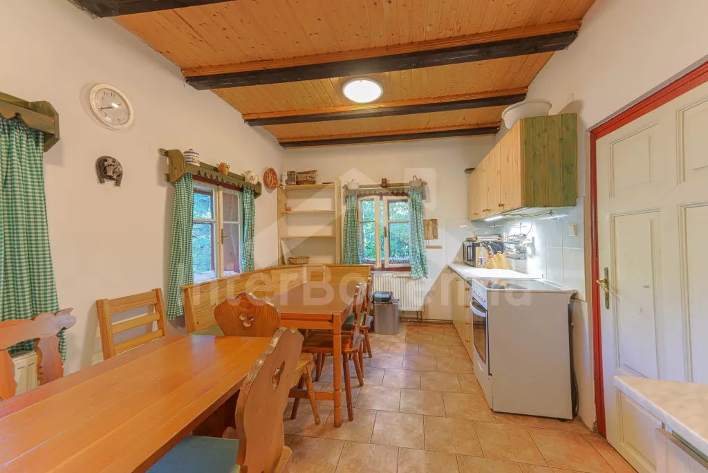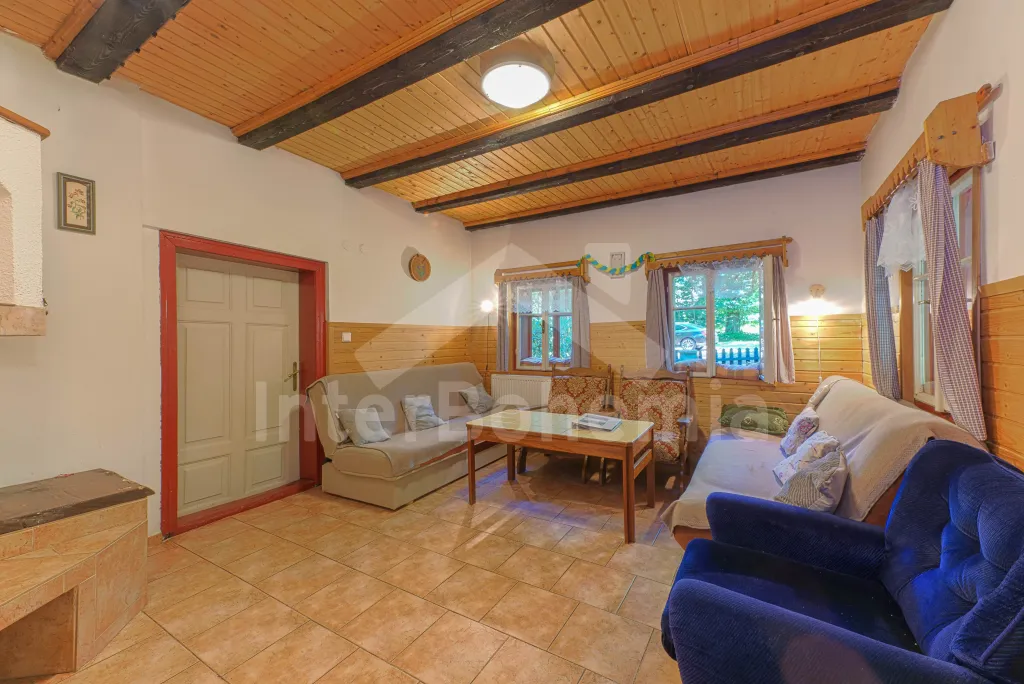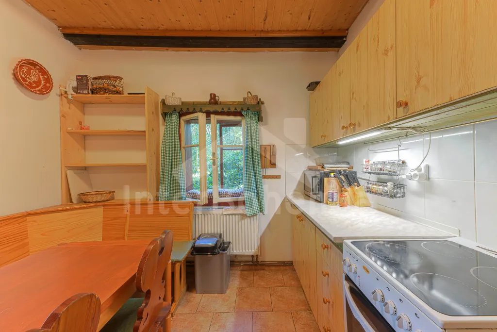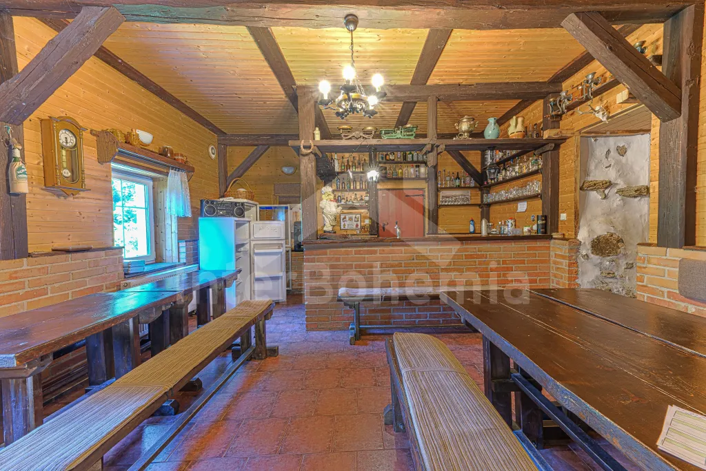 Volně stojící a prostorná chalupa, v roce 2005 zrekonstruovaná, účelně a příjemně zařízená. Vchod, chodba, prostor pro ukládání lyží a samostatná toaleta. Obývací pokoj se sedací soupravou pro 8 osob, televizí a hezkým krbem. Kuchyně s jídelním koutem, elektrickým sporákem, lednicí, kávovarem, varnou konvicí a mikrovlnnou troubou. Veranda s jídelními stoly a lavicemi. Malá průchozí ložnice s rozkládacím gaučem (slouží také jako dvojlůžko). Prostorná společenská místnost přístupná přes malou ložnici nebo zvenčí. Ve společenské místnosti se nachází kompletní výčepní zařízení, krbová kamna, chladicí skříň a posezení – stoly a lavice. Z chodby vedou schody do podkroví, kde se nachází chodba, koupelna s vanou a toaletou, druhá koupelna se sprchou a toaletou a další čtyři ložnice. První dvě ložnice každá s palandou a dvěma samostatnými lůžky a další dvě ložnice každá s palandou a třemi samostatnými lůžky. V suterénu se nachází finská sauna se sprchou a toaletou (přístup ze zahrady). Vytápění krbem a krbovými kamny, v zimě ústřední topení (o topení se stará správce). Chalupa stojí na vlastním oploceném pozemku, k dispozici je dřevěný zahradní nábytek, zahradní gril a bazén 5,5 x 3 m se zastřešením. Vlastní parkoviště.