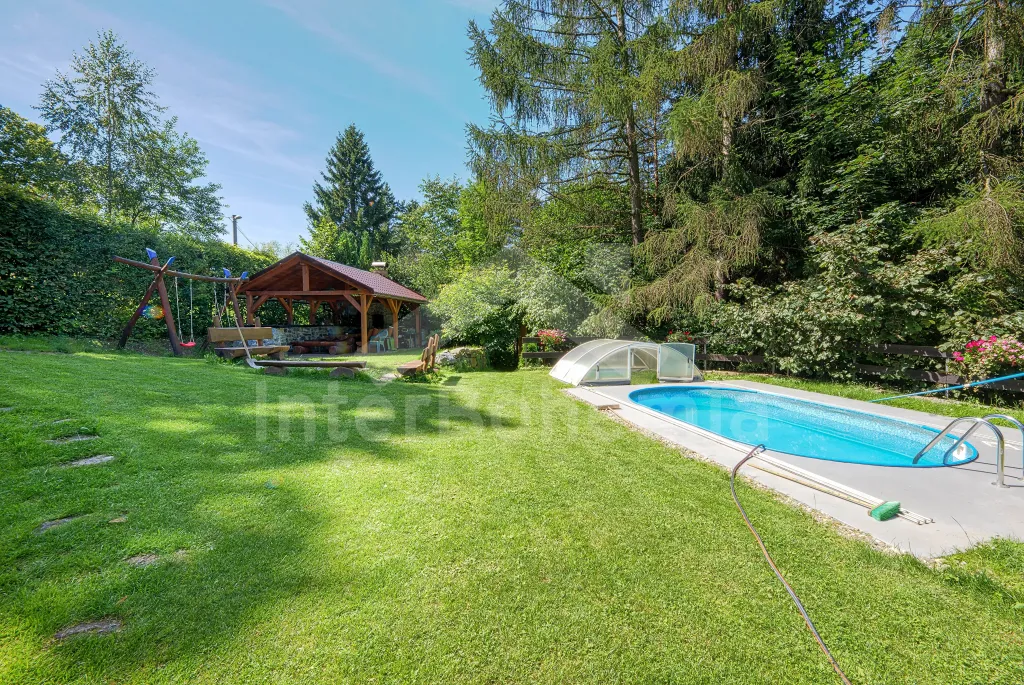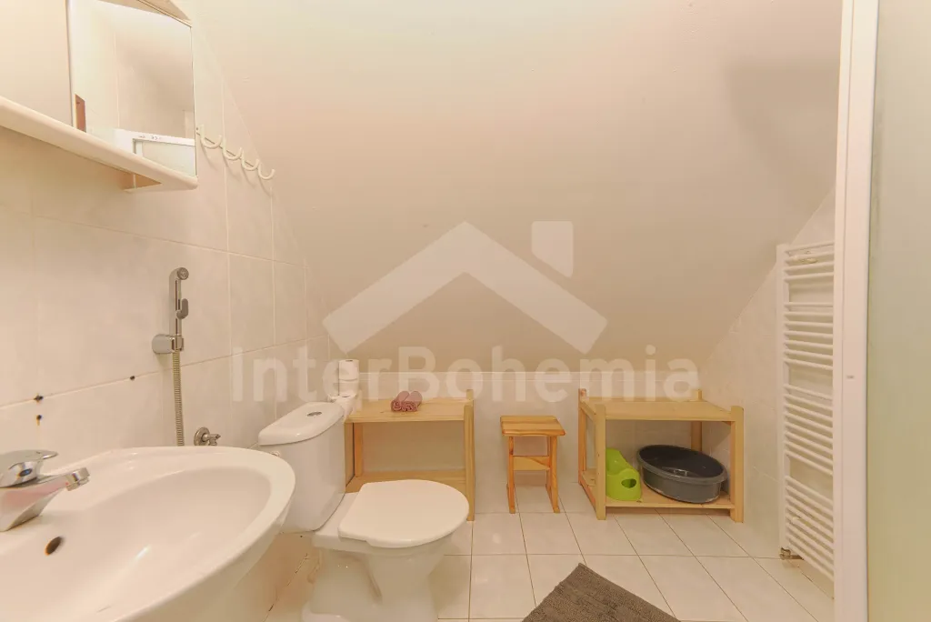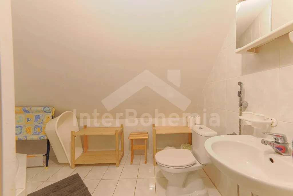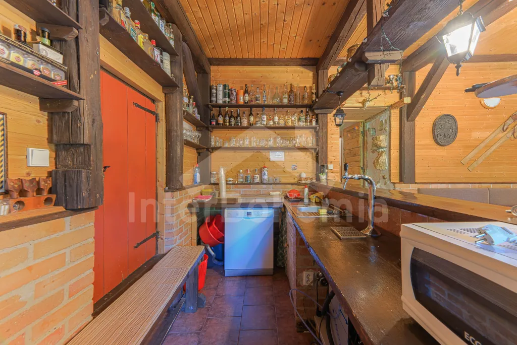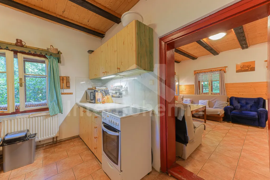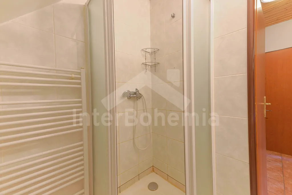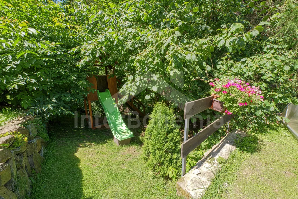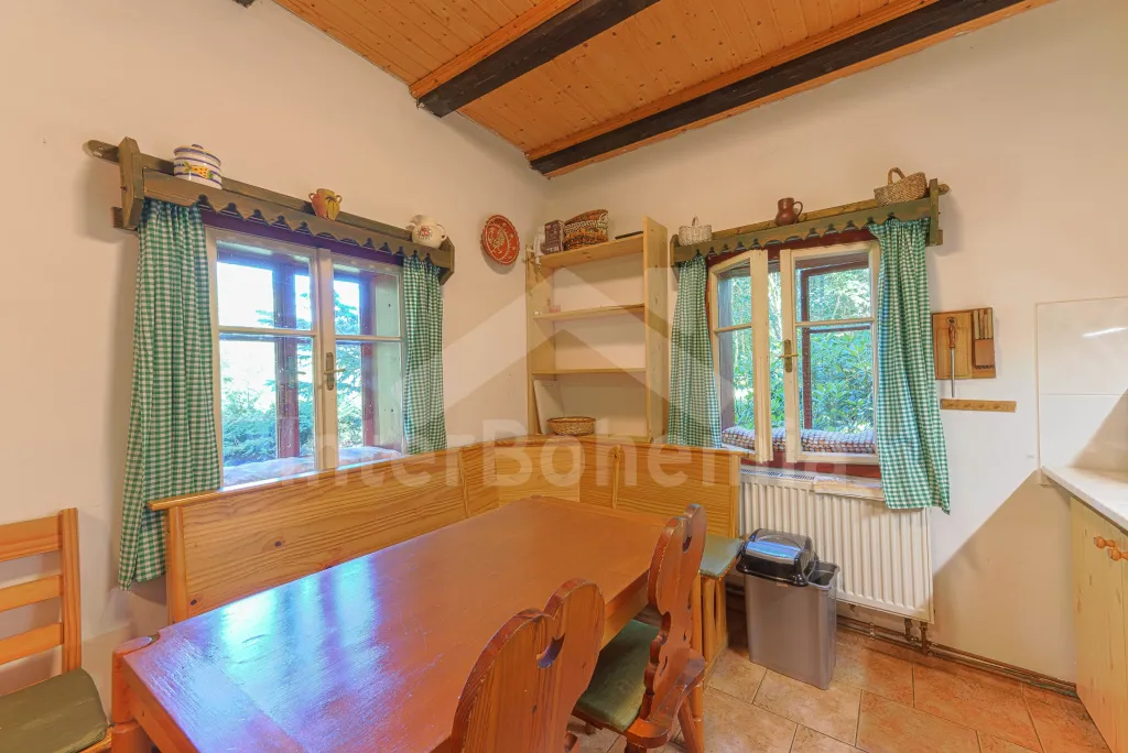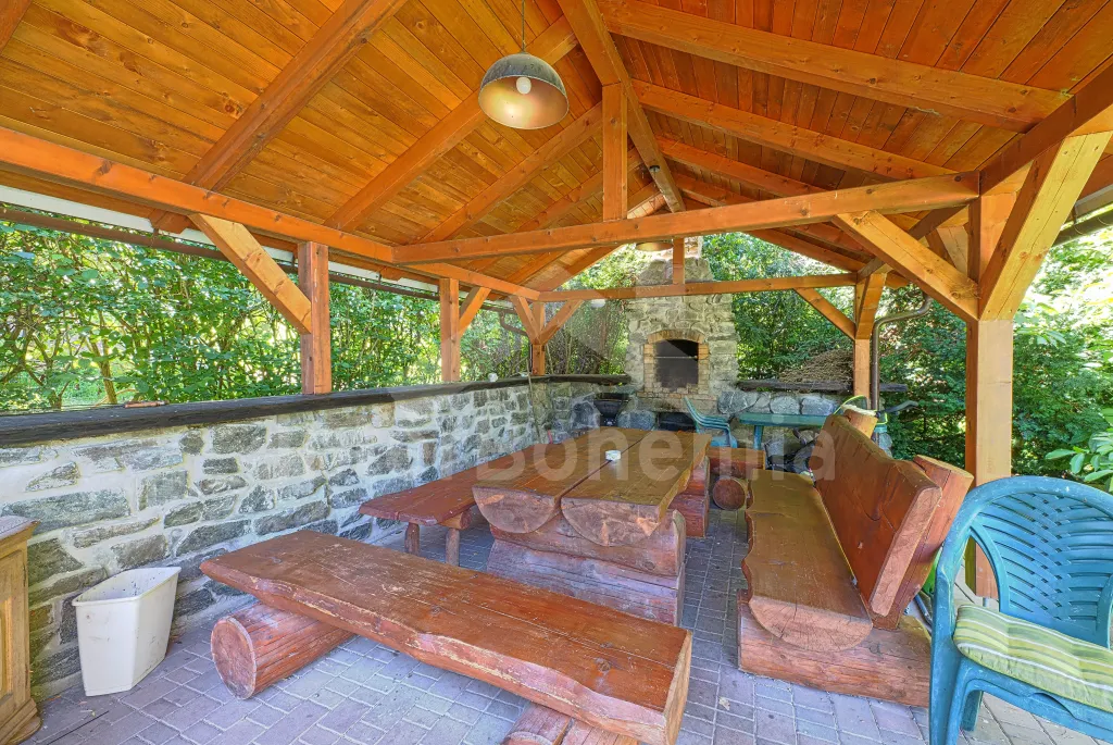 Volně stojící a prostorná chalupa, v roce 2005 zrekonstruovaná, účelně a příjemně zařízená. Vchod, chodba, prostor pro ukládání lyží a samostatná toaleta. Obývací pokoj se sedací soupravou pro 8 osob, televizí a hezkým krbem. Kuchyně s jídelním koutem, elektrickým sporákem, lednicí, kávovarem, varnou konvicí a mikrovlnnou troubou. Veranda s jídelními stoly a lavicemi. Malá průchozí ložnice s rozkládacím gaučem (slouží také jako dvojlůžko). Prostorná společenská místnost přístupná přes malou ložnici nebo zvenčí. Ve společenské místnosti se nachází kompletní výčepní zařízení, krbová kamna, chladicí skříň a posezení – stoly a lavice. Z chodby vedou schody do podkroví, kde se nachází chodba, koupelna s vanou a toaletou, druhá koupelna se sprchou a toaletou a další čtyři ložnice. První dvě ložnice každá s palandou a dvěma samostatnými lůžky a další dvě ložnice každá s palandou a třemi samostatnými lůžky. V suterénu se nachází finská sauna se sprchou a toaletou (přístup ze zahrady). Vytápění krbem a krbovými kamny, v zimě ústřední topení (o topení se stará správce). Chalupa stojí na vlastním oploceném pozemku, k dispozici je dřevěný zahradní nábytek, zahradní gril a bazén 5,5 x 3 m se zastřešením. Vlastní parkoviště.