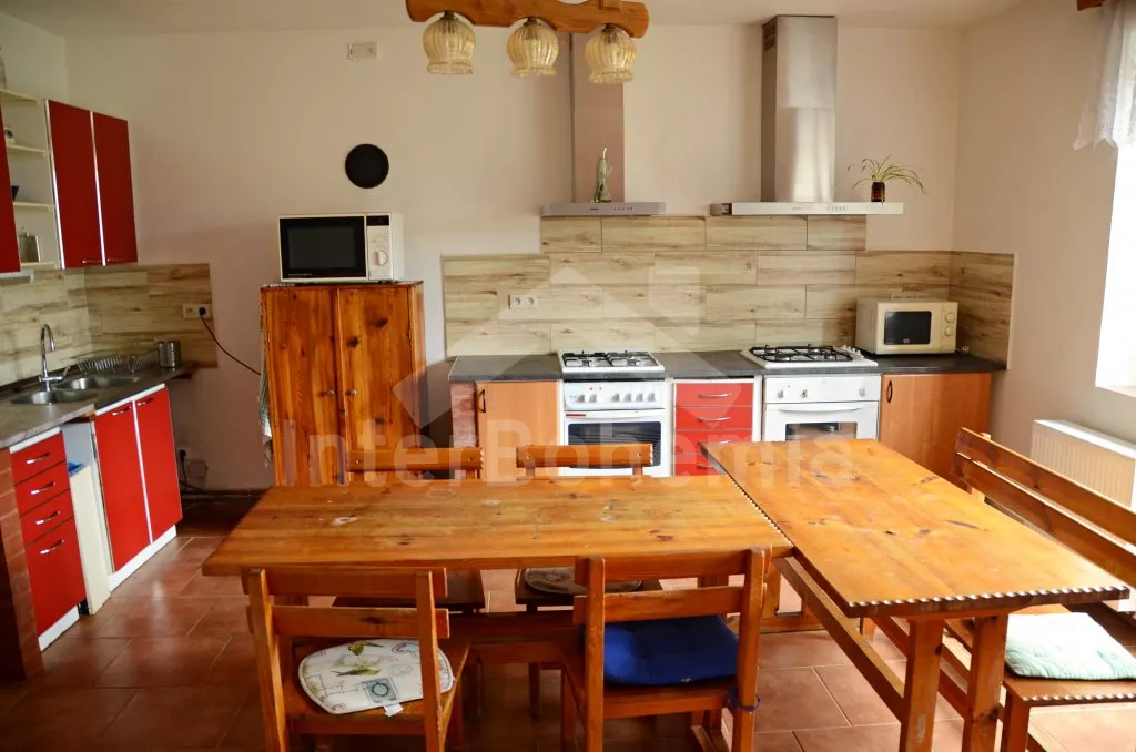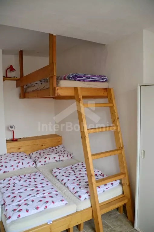 Volně stojící chalupa, pěkně a účelně zařízená. V přízemí je vstup, hala s posezením, krbovými kamny, plochou TV a jídelním stolem pro 10 osob. Kuchyně se dvěma plynovými sporáky s horkovzdušnou troubou, 2 mikrovlnnými troubami, chladničkou s mrazákem, varnou konvicí a kávovarem a jídelním stolem pro 7 osob a plochou TV. Tři samostatné ložnice, dvě s jedním dvojlůžkem a dvěma samostatnými lůžky a jedna s jedním samostatným lůžkem a jedním dvojlůžkem s palandou. V patře se nachází hala s posezením a dvě samostatné ložnice, jedna s jedním dvojlůžkem a dvěma samostatnými lůžky a jedna se třemi samostatnými lůžky. Všechny ložnice mají vlastní koupelnu se sprchovým koutem, toaletou a umyvadlem. Vytápění krbovými kamny a elektrickými přímotopy. Chalupa stojí na vlastním pozemku s kompletně oplocenou zahradou. K dispozici je venkovní posezení pod pergolou se zahradním nábytkem (dřevo a plast), zahradní přenosný gril a nadzemní bazén o průměru 4 m. K dispozici je také garáž na jízdní kola. Parkování před objektem.