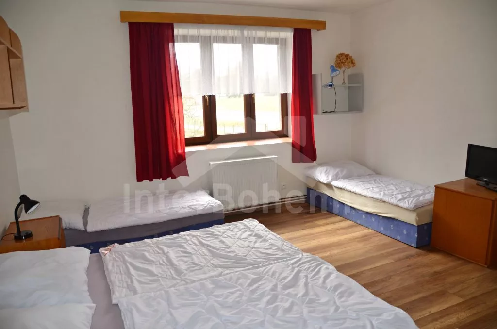 Vzdálenosti: restaurace a občerstvení v místě do 300 m, další restaurace a základní potraviny (Deštná) 3 km, supermarkety, veškerá občanská vybavenost, restauranty, plovárna a aqua park, tenisové kurty a sauna (Jindřichův Hradec) 15 km, pronájem lodiček a rybaření (s povolenkou a na místní lístek) na jezeře kolem zámku (Červená Lhota) 300 m. Les 100 m.