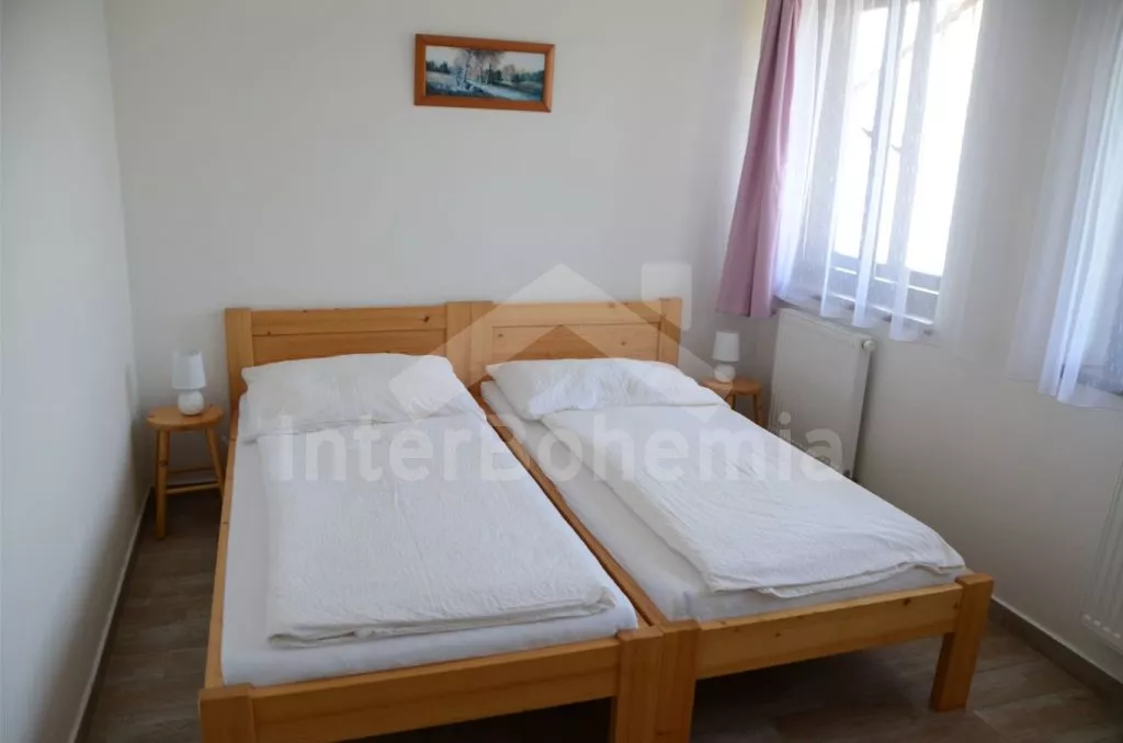 Apartmán č.1 - kuchyňská linka se sklokeramickou dvouplotýnkovou varnou deskou, mikrovlnnou troubou, lednicí, rychlovarnou konvicí a nádobím. Dále jídelní stůl pro 4 osoby a LCD televize. Ložnice s dvoulůžkem a palandou. Druhá ložnice s dvoulůžkem. Koupelna se sprchovým koutem, umyvadlem a wc.