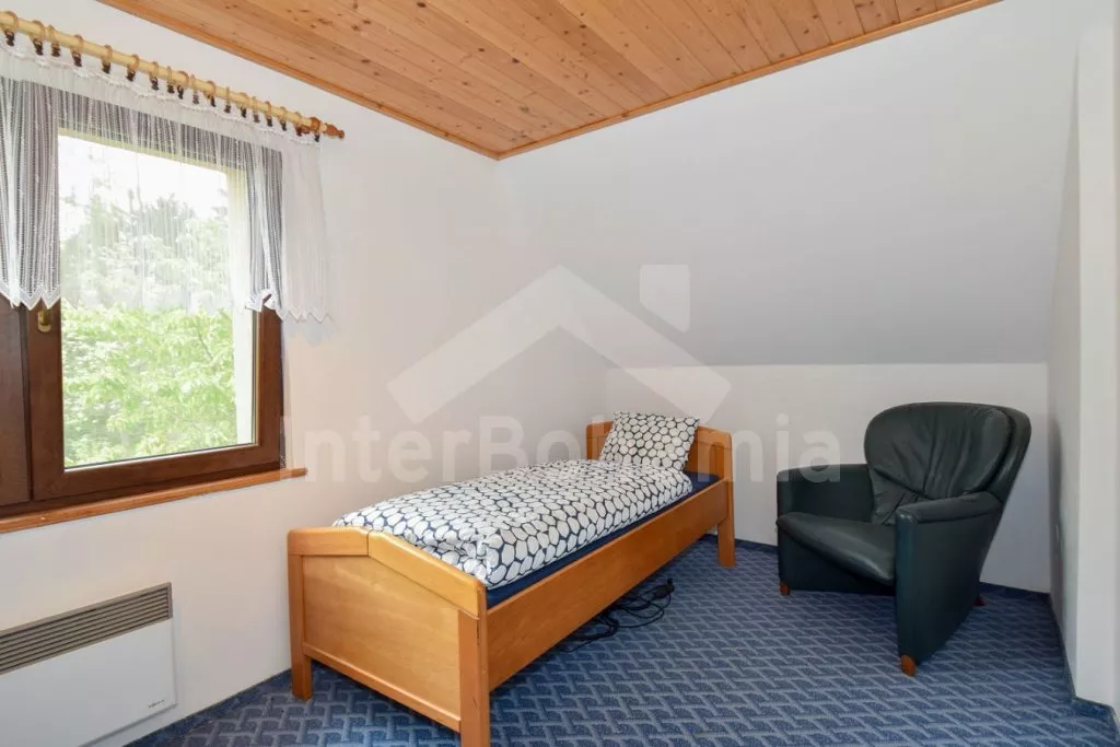 Maximální klid s maximální tmou v noci. Za plotem na pastvě kravičky, jinak nikdo nikde. Krásná zahrada jako součást objektu s kusem vlastního lesa.