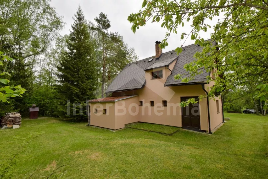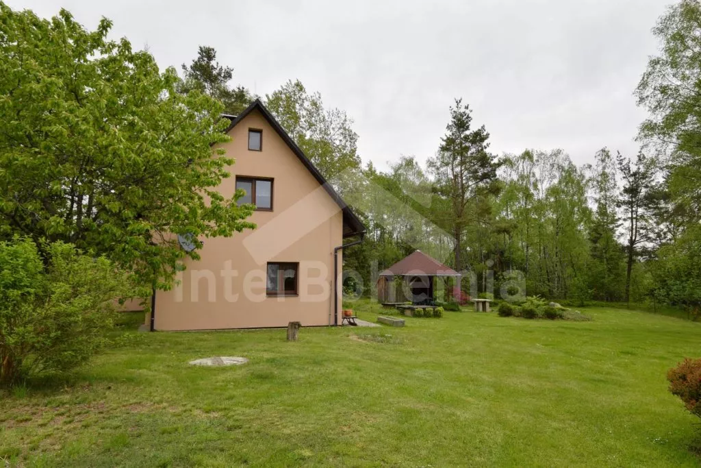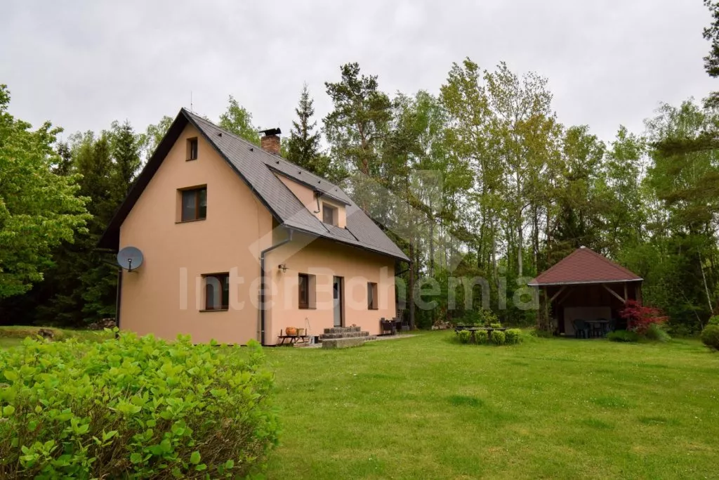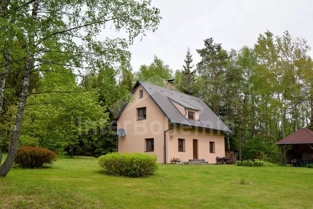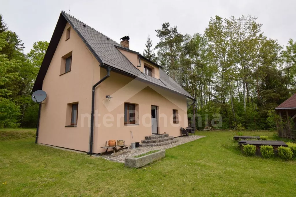 Samostatně stojící chalupa, na rozlehlém oploceném pozemku, po celkové rekonstrukci v roce 2020. Vstup, chodba, jídelna s posezením, kamny a kuchyňským koutem se sklokeramickou varnou deskou, troubou, mikrovlnnou troubou, rychlovarnou konvicí a nádobím. Obývací pokoj s pohovkou (extra dvoulůžko) a LCD televizí se satelitem. Koupelna se sprchovým koutem, umyvadlem a pračkou. Samostatné WC. Vstup do podkroví po strmějších schodech. První ložnice s dvoulůžkem a třemi extra lůžky (rozkládací křesla a pohovka). Druhá ložnice se dvěma samostatnými lůžky a psacím stolem. Vytápění objektu kamny a přímotopy. Rozlehlá, kompletně oplocená zahrada s venkovním posezením, plynovým grilem v pergole, ohništěm a nadzemním bazénem. Parkování přímo u objektu až pro 3 vozidla.
