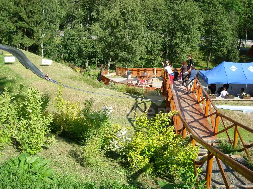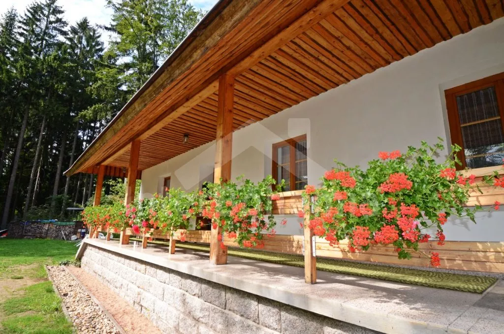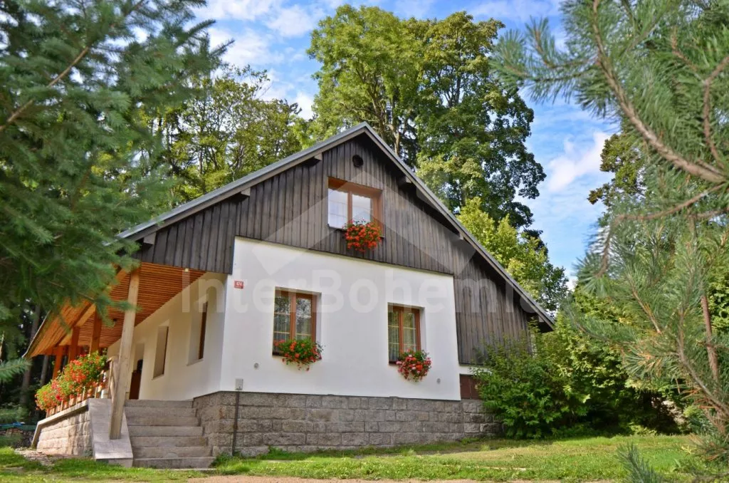 Volně stojící rekreační dům, kompletně zrenovovaný a hezky udržovaný. Vstup, chodba. Obývací pokoj/ložnice se sedací soupravou (zároveň rozkládací dvojlůžko), jídelním stolem, krbem a kuchyňským koutem se dvěma varnými plotýnkami, varnou konvicí a mikrovlnnou troubou. Samostatná toaleta, sprcha a sauna. Druhý obývací pokoj/ložnice s dvojlůžkem, jedním samostatným lůžkem, jídelním stolem, televizí a kuchyňským koutem se dvěma varnými plotýnkami, lednicí, varnou konvicí a mikrovlnnou troubou. Vstup do koupelny se sprchou a toaletou. V patře se nachází kuchyně s jídelním stolem, dvěma varnými plotýnkami, lednicí, varnou konvicí a mikrovlnnou troubou. Koupelna se sprchou a toaletou. Ložnice s posezením, televizí, dvojlůžkem a dvěma samostatnými lůžky. Druhá ložnice s posezením, televizí, dvojlůžkem a jedním samostatným lůžkem. Elektrické topení. Dům stojí na vlastním neoploceném pozemku, k dispozici je zahradní nábytek a přenosný gril. Vlastní parkoviště pro 3 auta.