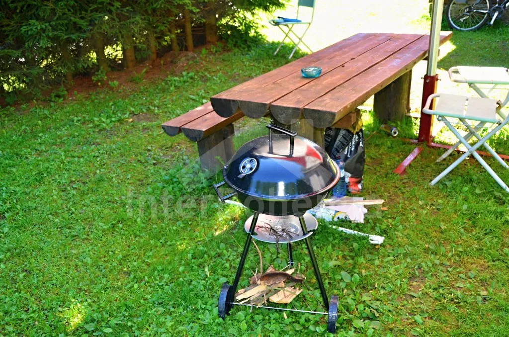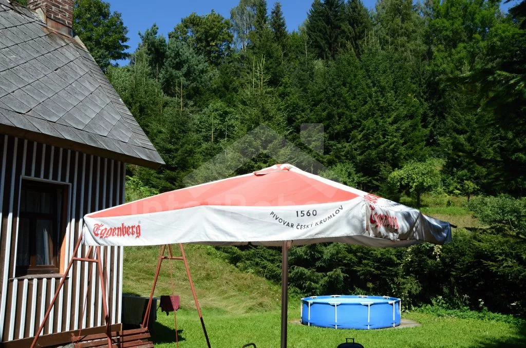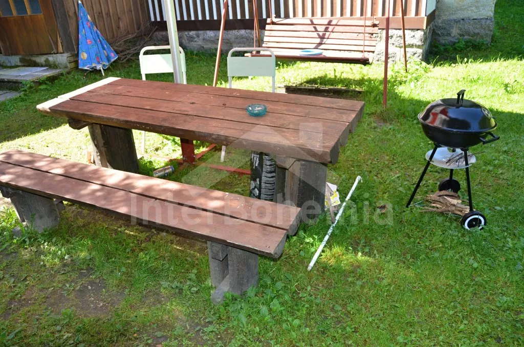 Chalupa stojí na neoploceném pozemku, každé apartmá má k dispozici zahradní nábytek (stůl a lavice), slunečník, zahradní gril a ohniště. Pro obě apartmá společně je zde kulatý bazén o průměru 3,6 m. Vlastní parkoviště.