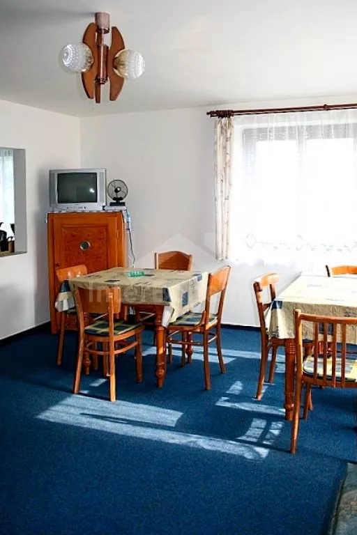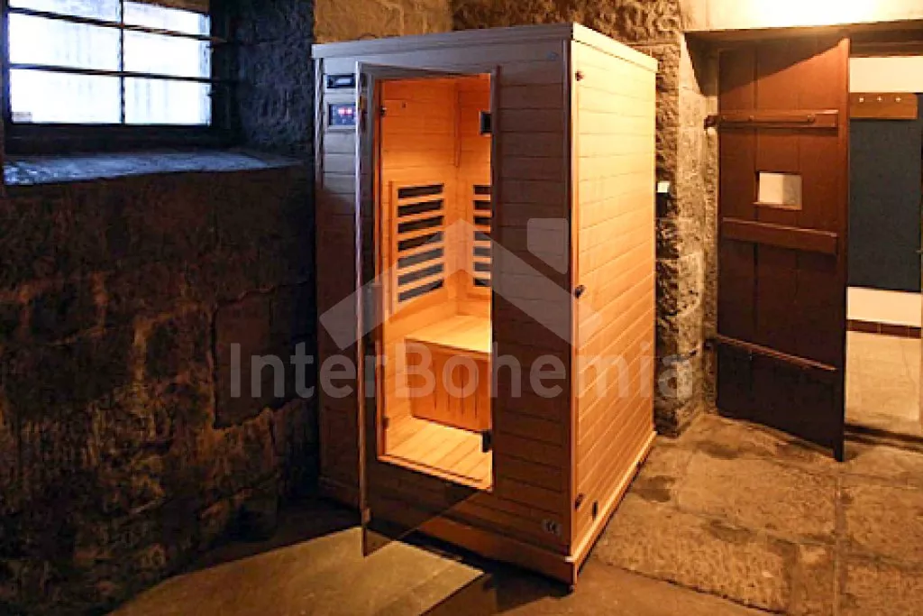 Prostorná chalupa s infrasaunou, vhodná pro velkou skupinu osob. V přízemí kuchyně s varnou deskou, dvěma lednicemi, troubou, mikrovlnnou troubou, kávovarem, varnou konvicí a nádobím. Obývací pokoj s jídelními stoly a sedací soupravou. První koupelna s dvěma sprchovými kouty, dvěma umyvadly a pračkou.