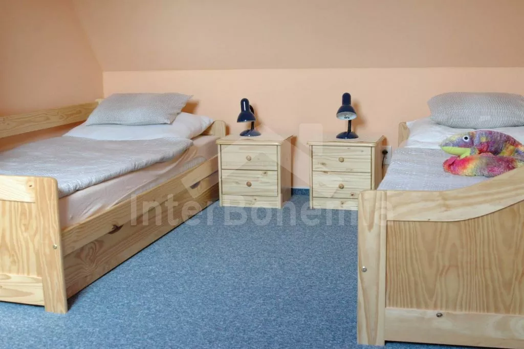 Volně stojící dům, v roce 2006 zrenovovaný, útulně a vkusně zařízený. Vstup, chodba, malý obývací pokoj se sedací soupravou, krbem, televizí se satelitním příjmem a DVD a stolkem. Kuchyně s jídelním stolem pro 4 osoby, sporákem se keramickou varnou deskou, lednicí, kávovarem, varnou konvicí a mikrovlnnou troubou. Koupelna se sprchou a toaletou. Nahoře se nachází dvě ložnice – jedna s dvojlůžkem a druhá se dvěma samostatnými lůžky a jedním vysouvacím lůžkem. Elektrické vytápění. Oplocená zahrada, k dispozici je zahradní nábytek se slunečníkem, zahradní krb, pískoviště, houpačka a kulatý bazén s průměrem 4 m, zahradní sprcha a stolní tenis. Vlastní parkoviště.
