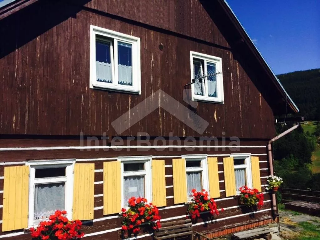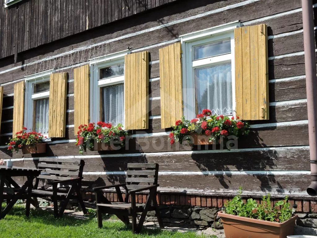Volně stojící roubená chalupa, kde jsou k dispozici dva samostatné apartmány, na každém patře je jeden, tudíž je chalupa ideální pro dvě spřátelené rodiny. Zařízení je příjemné a funkční, horní apartmán je poněkud skromněji zařízený. Vstup, veranda s prostorem na uskladnění lyží a bot a vstup do společenské haly, která je společná pro oba apartmány. Je zde posezení u stolu a krbová kamna. Z této místnosti vedou dveře do přízemního apartmánu A a schody do podkrovního apartmánu B. Apartmán A má obývací pokoj s rozkládací válendou (zároveň přistýlka), televizi se set-top-boxem, jídelní stůl a otevřenou kuchyni vybavenou sporákem s elektrickou troubou a plynovou varnou deskou, lednicí, mikrovlnnou troubou a varnou konvicí. Dále je zde ložnice s dvoulůžkem a palandou a vstupem do koupelny se sprchou, umyvadlem a WC. Vytápění elektrické (akumulačky). Apartmá je vhodné pro maxiimálně 4/5 osob.