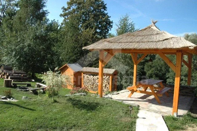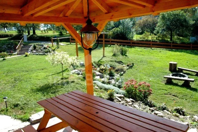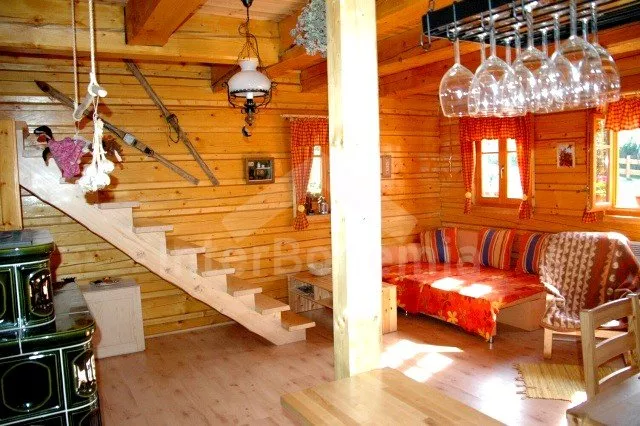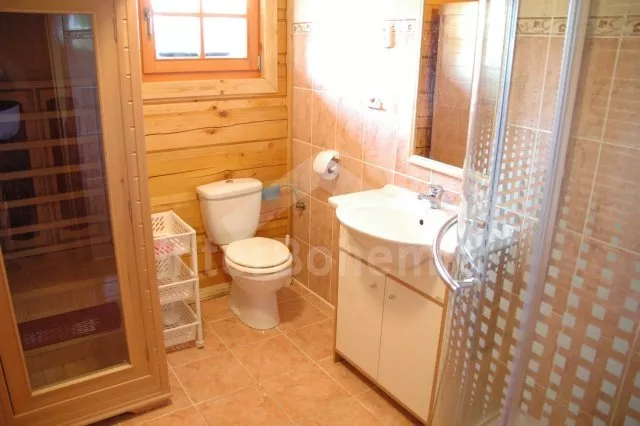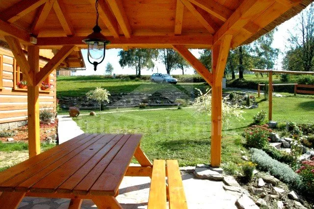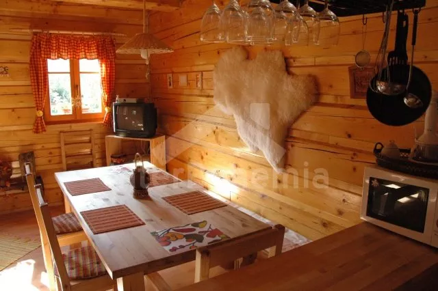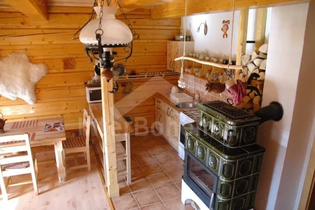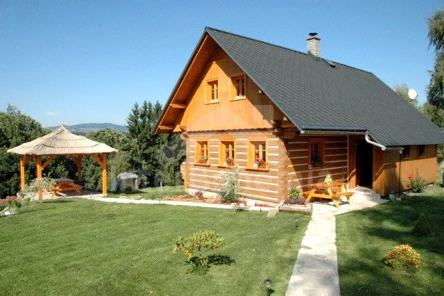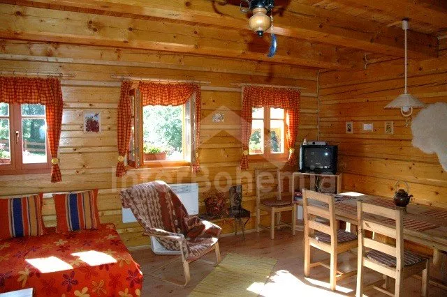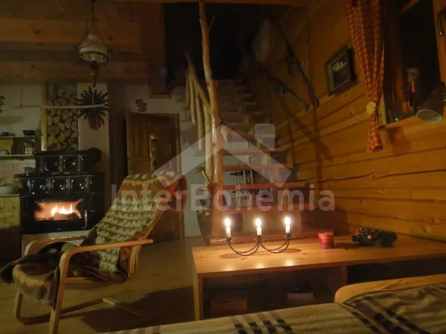 Volně stojící roubená chata, v roce 2010 nově postavená, velmi dobře a pohodlně zařízená a hezky udržovaná. Vstup, hala, chodba, prostorný obývací pokoj se sedací soupravou pro 4/5 osob, jídelním koutem, hezkými krbovými kamny a televizí se satelitním příjmem. Otevřená kuchyně s barem, plynovým sporákem s elektrickou troubou, lednicí, varnou konvicí a mikrovlnnou troubou. Luxusní koupelna s umyvadlem, sprchou a toaletou. V podkroví se nachází tři ložnice – první s jedním samostatným lůžkem a přistýlkou, druhá se dvěma samostatnými lůžky a přistýlkou a třetí ložnice s dvojlůžkem a dvěma samostatnými lůžky. Vytápění krbovými kamny na dřevo a ústřední elektrické topení. V kuchyni a v koupelně je podlahové topení. Dům stojí na rozlehlém neoploceném pozemku, k dispozici je hezká pergola, dřevěný zahradní nábytek, přenosný zahradní gril a ohniště. Vlastní parkoviště.