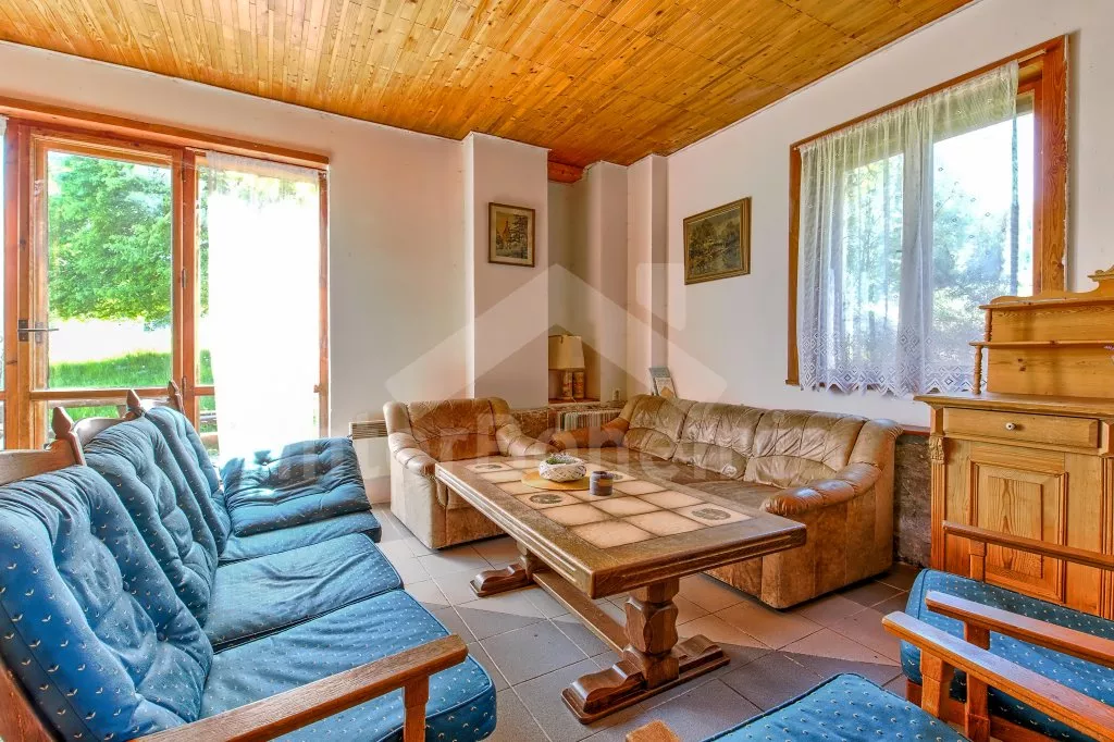 Volně stojící chalupa na samotě. Z chodby vedou dveře do koupelny, na toaletu a do kuchyně. Kuchyně s menším jídelním stolem, kuchyňským koutem, lednicí s mrazákem, elektrickým sporákem, varnou konvicí. Obývací pokoj s jídelním stolem, sedací soupravou, kachlová kamna (pouze dekorativní) a dřevěné schody do horní části objektu. Koupelna s vanou a umyvadlem. Samostatná toaleta. V podkroví jsou 4 ložnice a toaleta. Tři ložnice s dvoulůžky. Čtvrtá ložnice s dvoulůžkem (šířka 140 cm) a jednolůžkem. Vytápění elektrickými přímotopy. K dispozici je neoplocená zahrada s venkovním posezením, přenosným zahradním grilem a ohništěm. Možnost využít hřiště se sítí. Vlastní parkoviště.