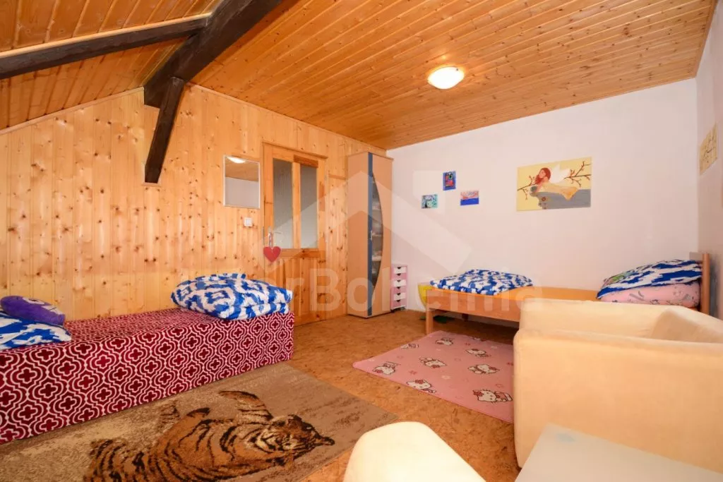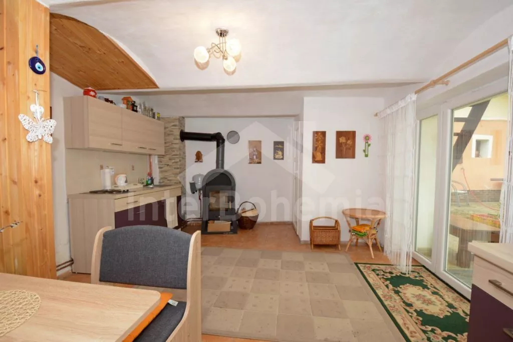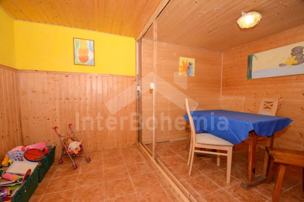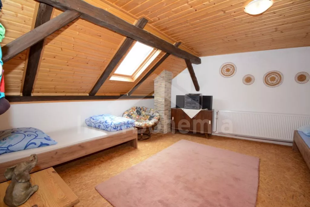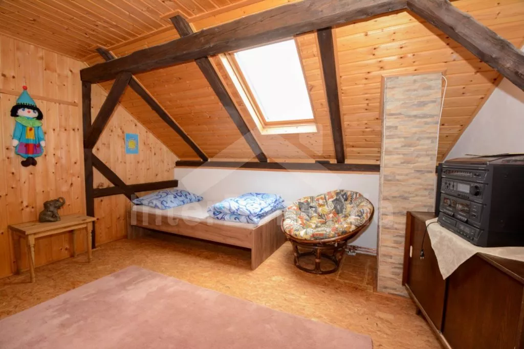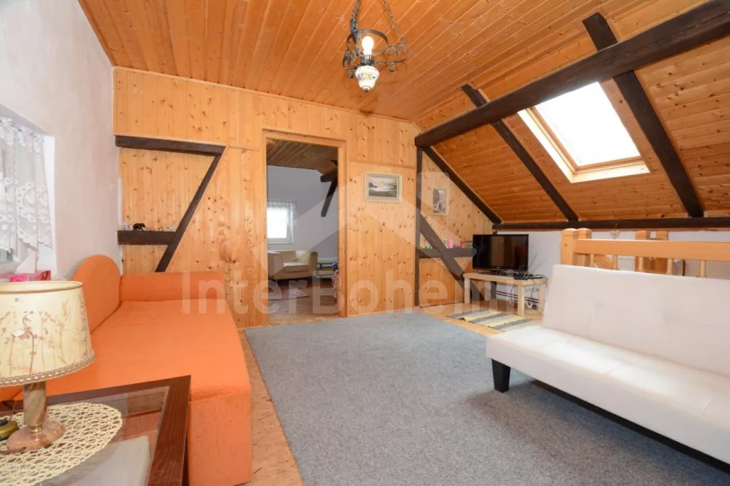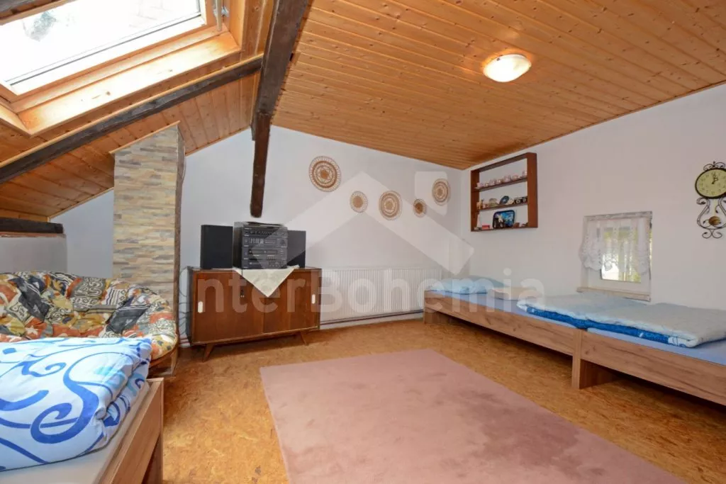 V roce 2017 zrekonstruovaná vesnická chalupa na vlastním oploceném pozemku, s útulnými podkrovními ložnicemi obloženými dřevem. Obýváte centrální chalupu staveb situovaných do U, ostatní budovy ve vlastnictví majitele jsou uzavřené. Vstup, obývací místnost spojená s kuchyní a po schodech do podkroví s obývací galerií. Kuchyňská linka s dvouplotýnkovým elektrickým vařičem, mikrovlnnou troubou, lednicí s mrazákem, rychlovarnou konvicí a nádobím. První menší jídelní stůl pro 3 osoby. Atmosféru dokreslí krbová kamna. V zadní propojené místností jídelní stůl pro 4 osoby. V podkroví centrální galerie se dvěma pohovkami (zároveň přistýlka pro 1 osobu) a LCD televizí. První ložnice se třemi jednolůžky. Druhá ložnice se dvěma jednolůžky a posezením. V přízemí sprchový kout a samostatné WC s umyvadlem. Vytápění chalupy ústřední na tuhá paliva a lokálně kamny. Hosté mají k dispozici zahradní posezení, přenosný gril a ohniště. Parkování u chalupy pro 2 automobily.