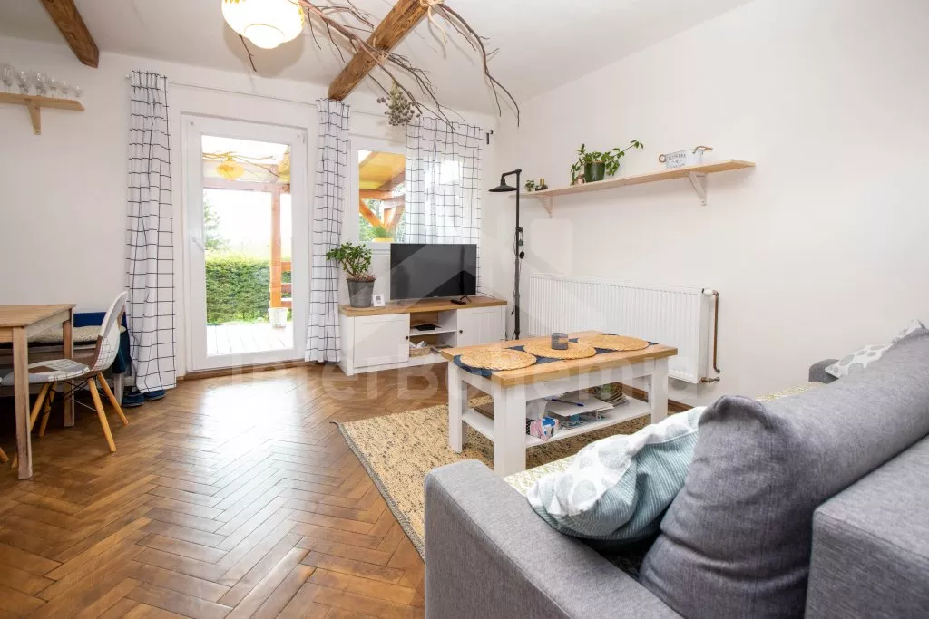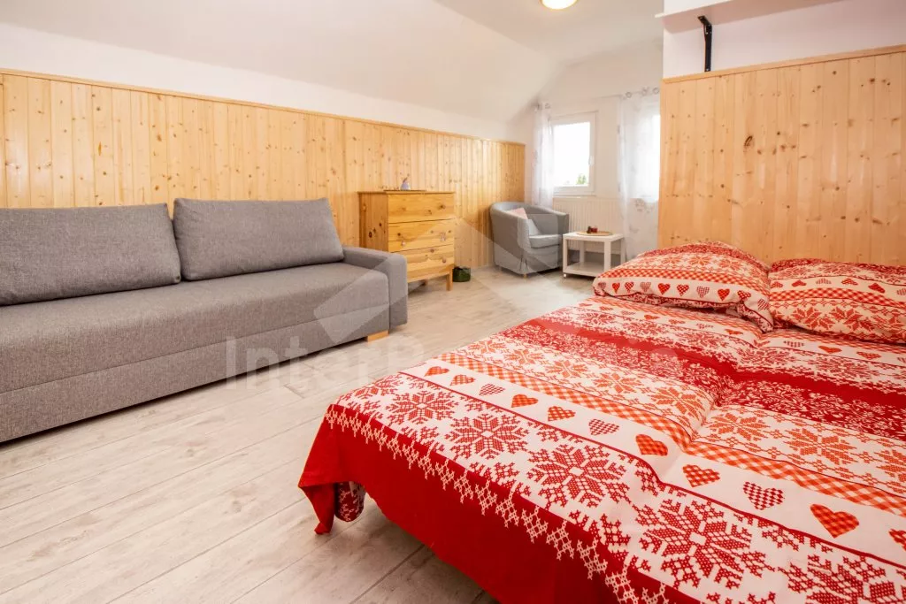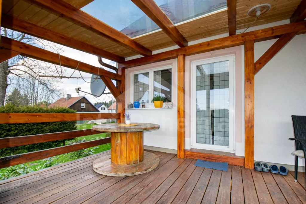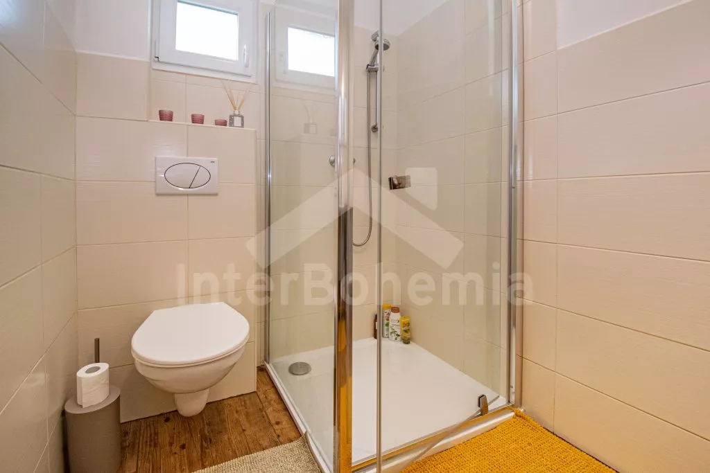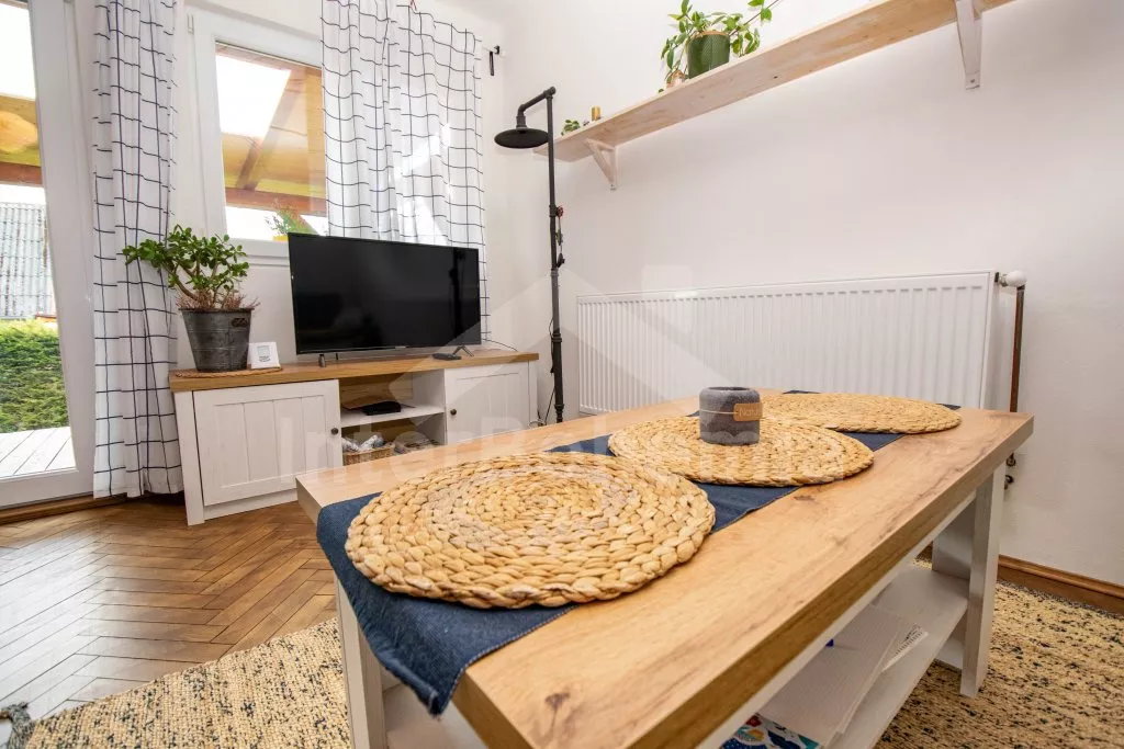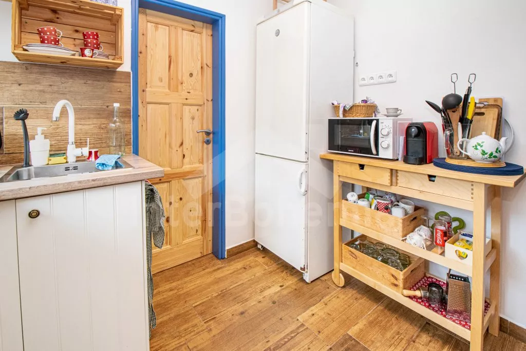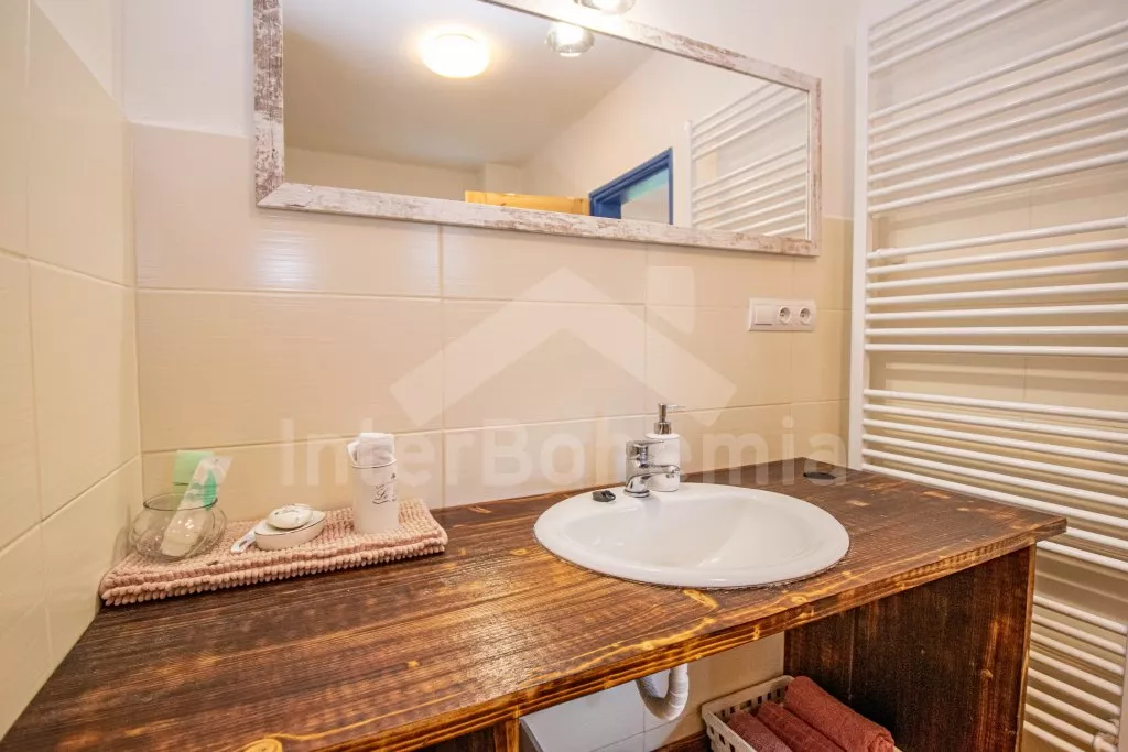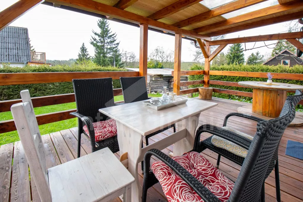 Vkusně zařízená chalupa v klidném prostředí se zastřešenou terasou. Obývací pokoj s rozkl. pohovkou, konferenčním stolkem, TV, jídelním stolem pro 6 osob a krbovými kamny. Kuchyně s lednicí a mrazákem, sklokeramickým sporákem, rychlovarnou konvicí, mikrovlnnou troubou a základním kuchyňským vybavením. Z kuchyně vstup do koupelny se sprchou, umyvadlem a toaletou. V ložnici najdete dvoulůžko, komodu a stůl. V prvním patře druhá ložnice s dvoulůžkem a rozkládací pohovkou. Objekt je vytápěn kamny či ústředním topením. Zastřešená terasa s posezením a zahrada s trampolínou pro děti. Parkování na pozemku pro 2 automobily.