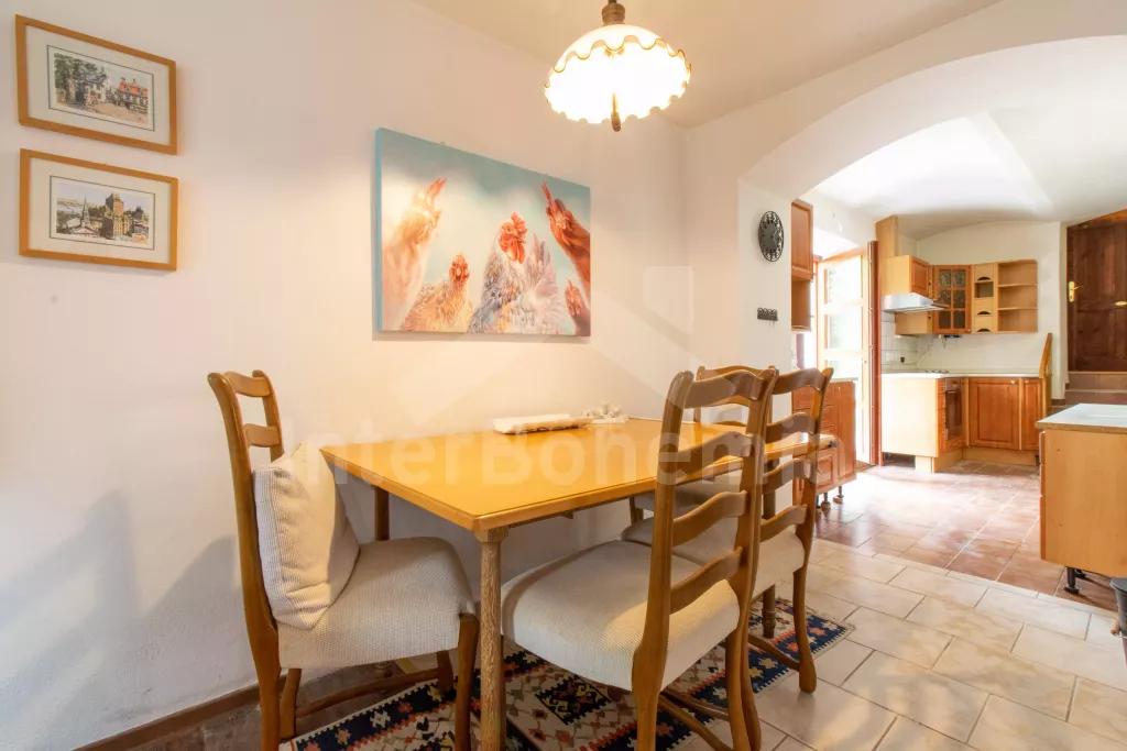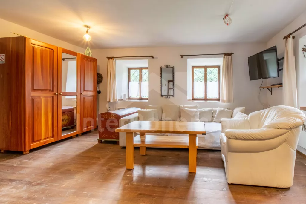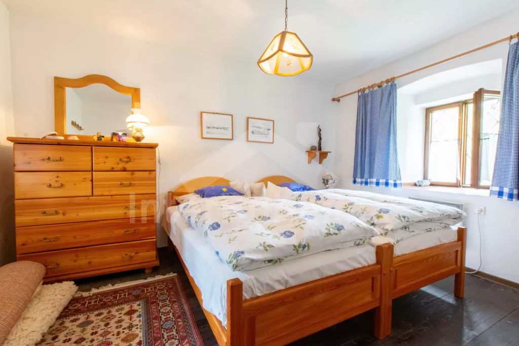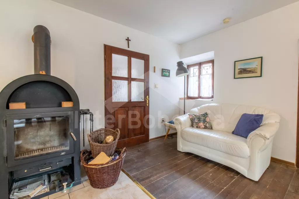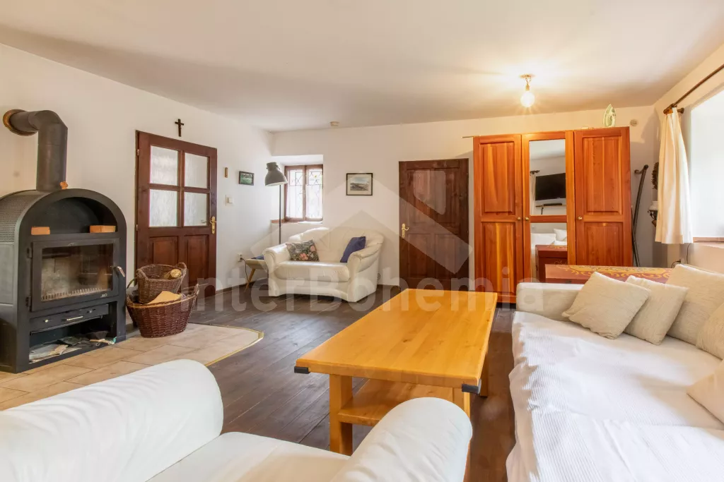 Obýváte levou část nově zrekonstruované chalupy (v roce 2023) s vlastním vchodem. Kuchyně s el. sporákem s troubou, lednicí s mrazákem, mikrovlnnou troubou, kávovarem na překapávanou kávu, rychlovarnou konvicí, nádobím, jídelním stolem s židlemi a myčkou. Obývací místnost s jednolůžkem (chybí foto), pohovkou (extra lůžko), konferenčním stolkem, TV, šatní skříní a krbovými kamny. Ložnice s dvoulůžkem. Koupelna se sprchou, umyvadlem, WC a pračkou. Objekt je vytápěn krbovými kamny. K dispozici část zahrady s posezením pod altánkem. Parkování přímo u objektu.