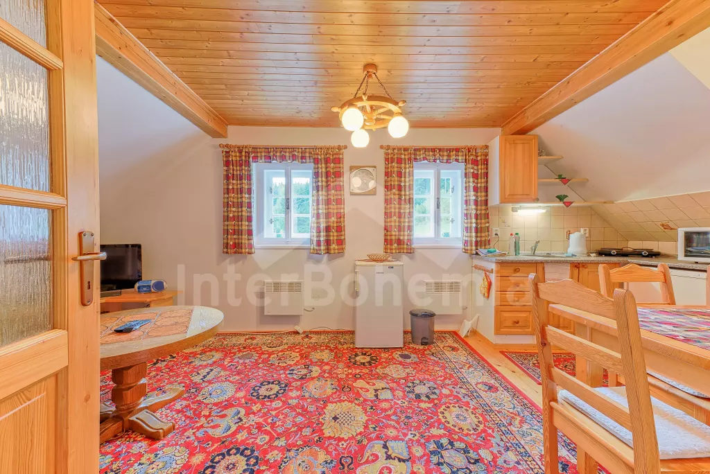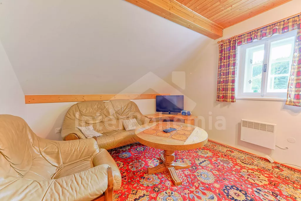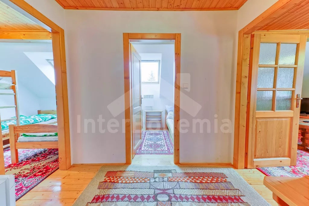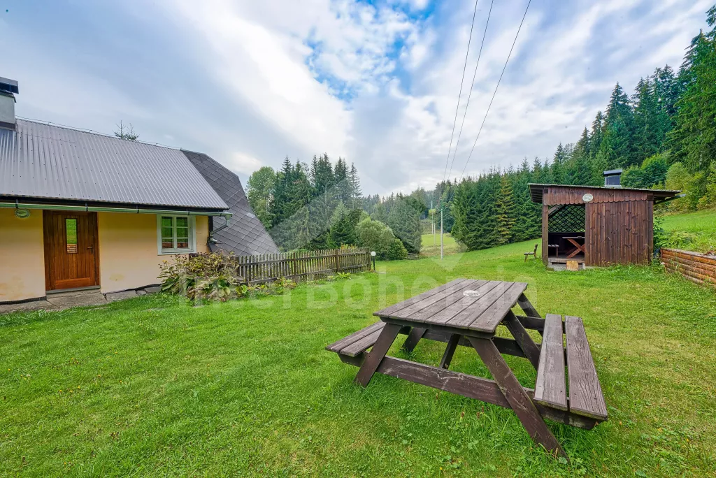 Volně stojící stylová horská chalupa, hezky a útulně zařízená. Obýváte horní část chalupy s vlastním vchodem. Vstup, chodba, obývací pokoj se sedací soupravou, televizí a kuchyňským koutem s elektrickým vařičem, lednicí, mikrovlnnou troubou, varnou konvicí, kávovarem a jídelním stolem pro 8 osob. Dále je zde ložnice se dvěma samostatnými lůžky a druhá ložnice se třemi samostatnými lůžky. Koupelna se sprchovým koutem, toaletou a umyvadlem. Po schůdkách vystoupáte do podkroví k dalším dvěma ložnicím v každé s jedním dvojlůžkem. Objekt je vytápěn elektrickými přímotopy. Okolo domu je velká neoplocená zahrada se stylovým ohništěm a krytým posezením s pevným zahradním krbem. Zapuštěný bazén 8 x 4 m, může jej užívat i sousední chalupa VC 0022. Dostatek parkovacích míst u chalupy.