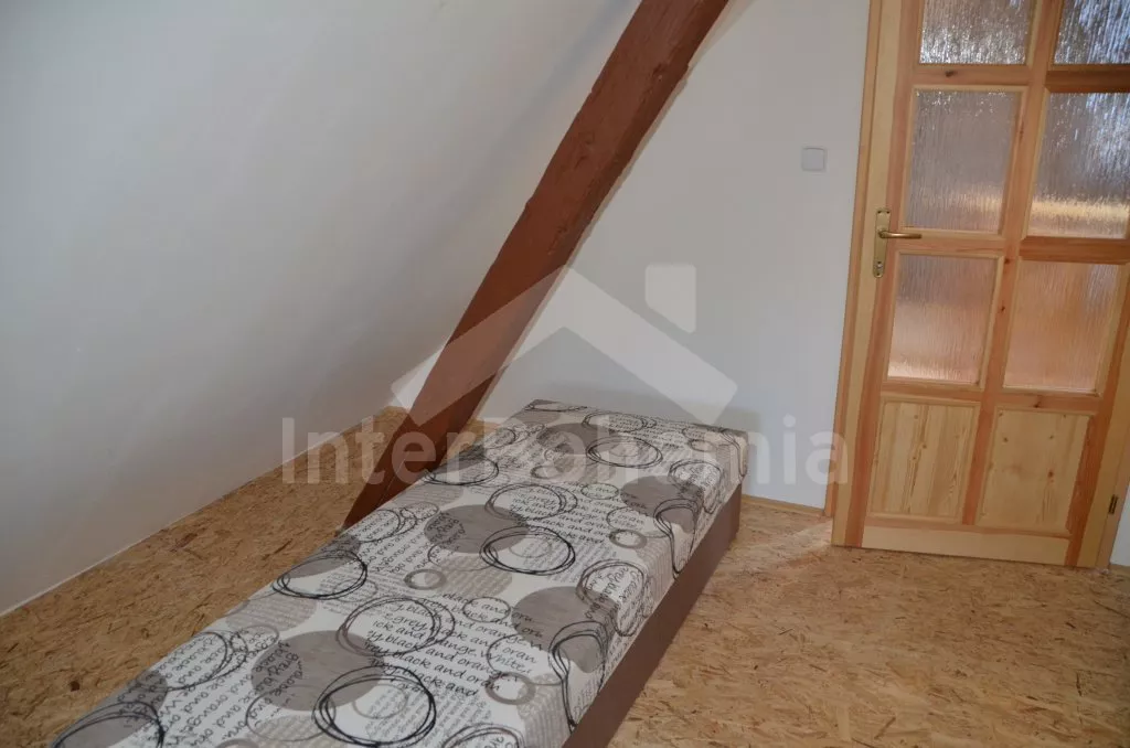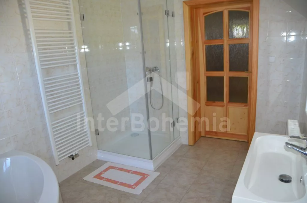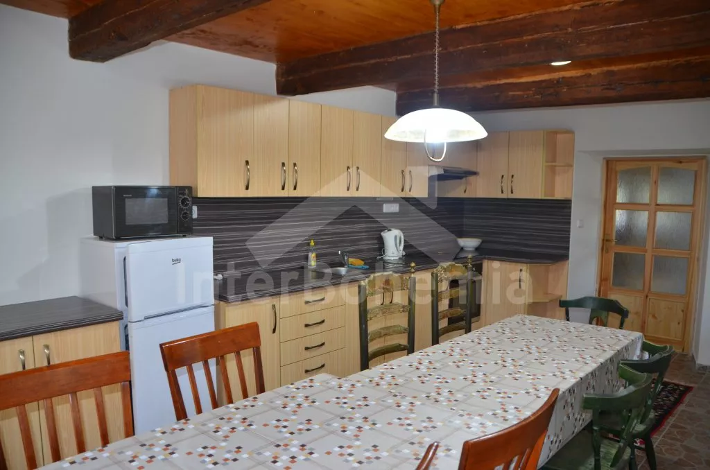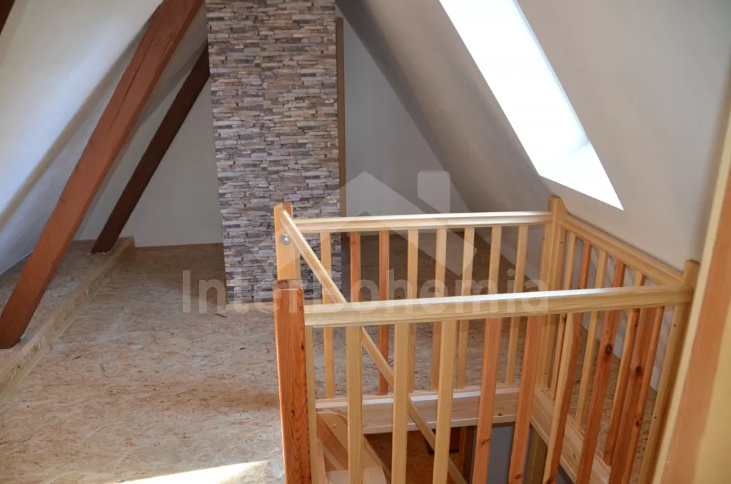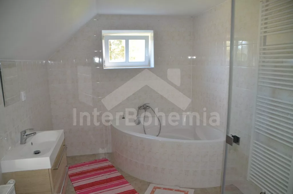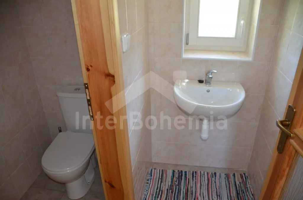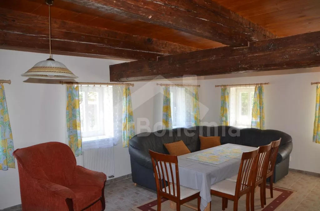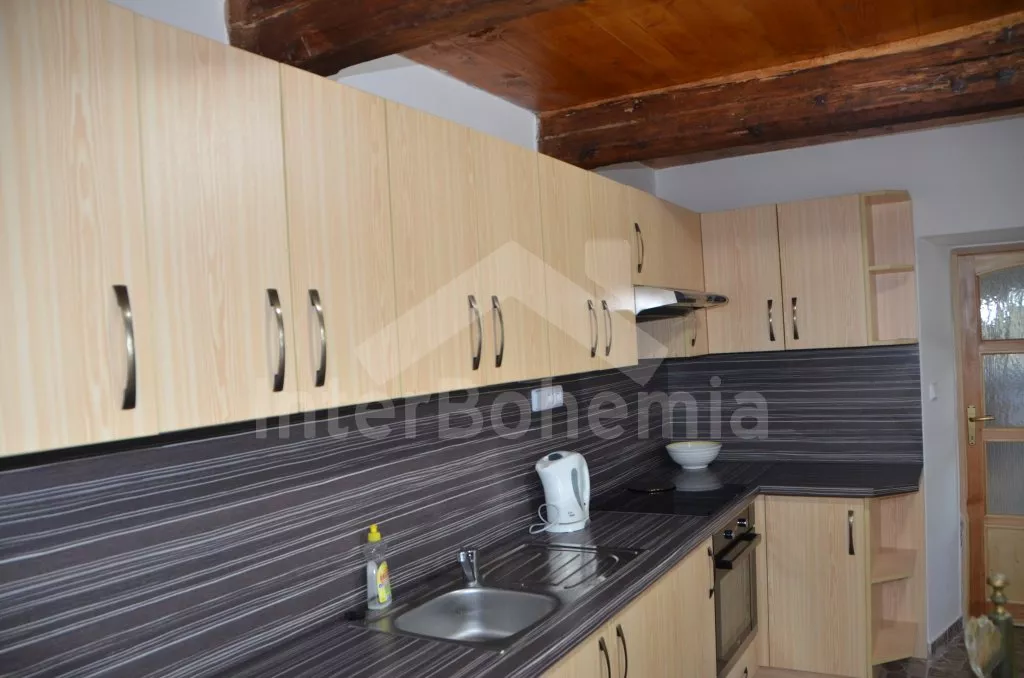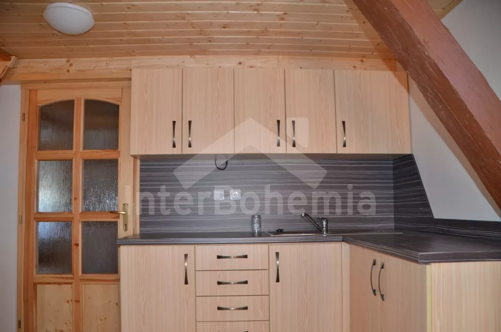 Volně stojící, prostorná roubená chalupa, v roce 2018 kompletně zrekonstruovaná, příjemně zařízená. Přízemí: vstup, chodba, obývací místnost se sedací soupravou, krbovými kamny a televizí se satelitním příjmem. Kuchyně s jídelním stolem, lednicí s mrazákem, elektrickým sporákem s horkovzdušnou troubou a sklokeramickou deskou, myčkou na nádobí, mikrovlnnou troubou a varnou konvicí. Sklípek se stolem, lavicemi a kuchyňkou. Koupelna s vanou a umyvadlem. Zadní vchod, chodba a dvě WC s umyvadly. Zvenčí místnost na kola a lyže. První patro: hala s kuchyňkou, chodba se vstupem do obývací ložnice s televizí, rozkládacím dvoulůžkem a jedním samostatným lůžkem a vstup do ložnice se dvěma samostatnými lůžky, koupelna se sprchou, umyvadlem a WC. Z haly je chodba se vstupem do obývací ložnice s televizí a dvěma rozkládacími gauči jako dvě dvoulůžka a vstup do ložnice se dvěma samostatnými lůžky. Koupelna se sprchou, umyvadlem a WC. Podkroví: hala a dvě ložnice, každá se čtyřmi lůžky. Vytápění a teplá voda na plyn. Velká zahrada, zahradní nábytek, gril a bazén průměr 3,6 m. Vlastní parkoviště. Objekt je vhodný pro maximálně 13/15 osob.
