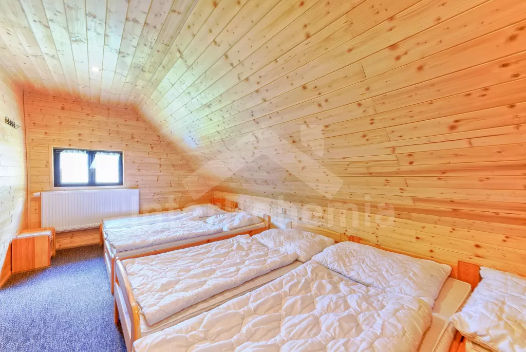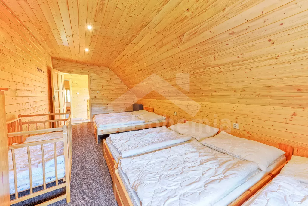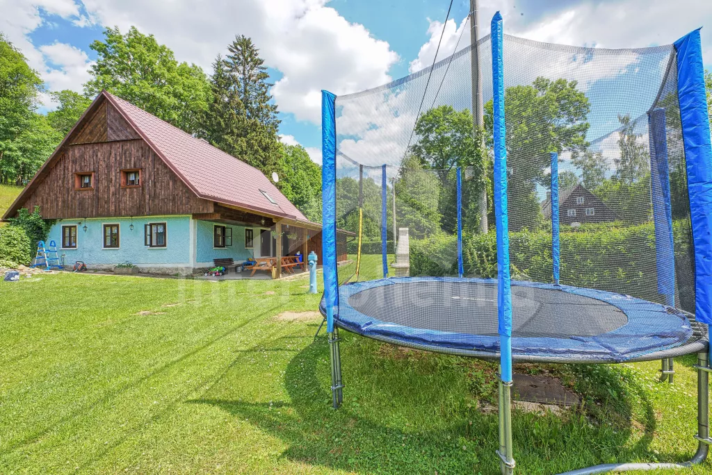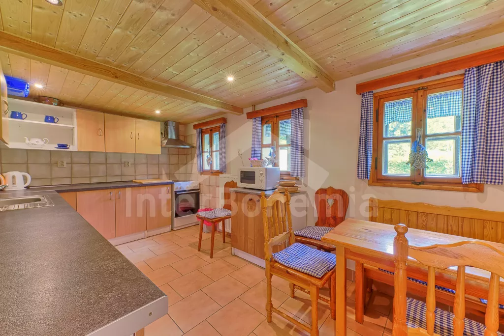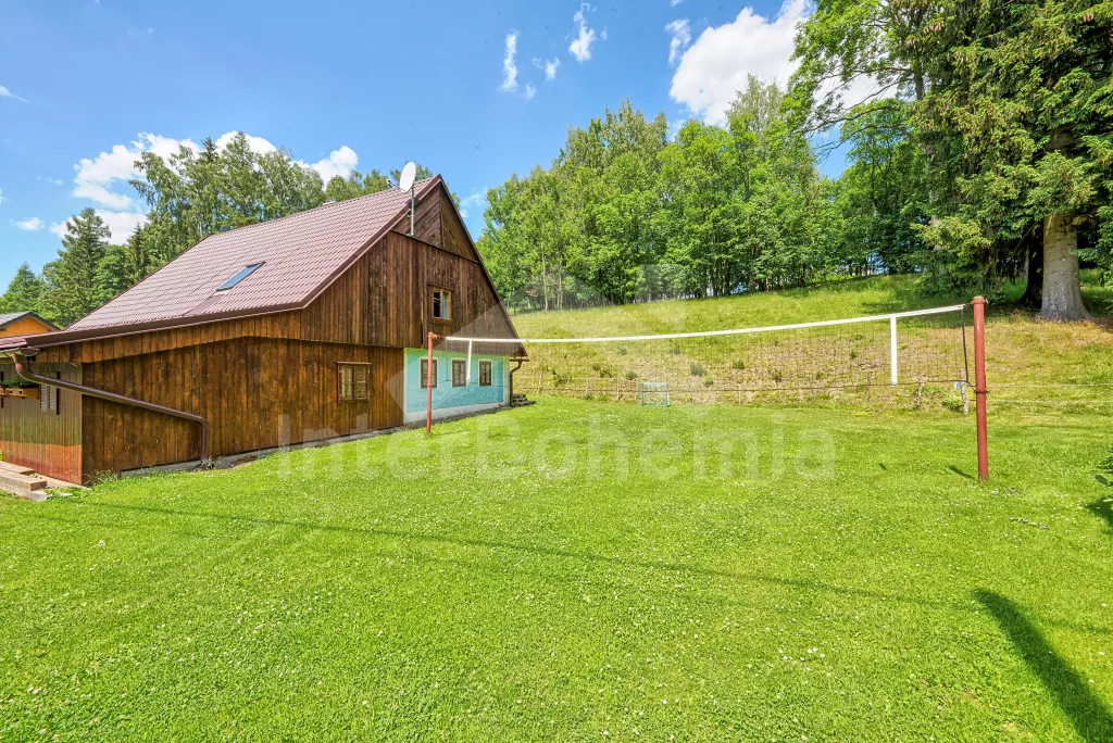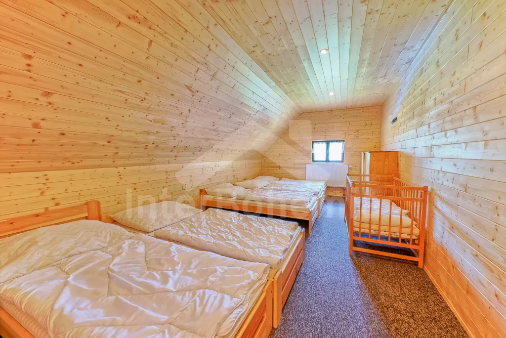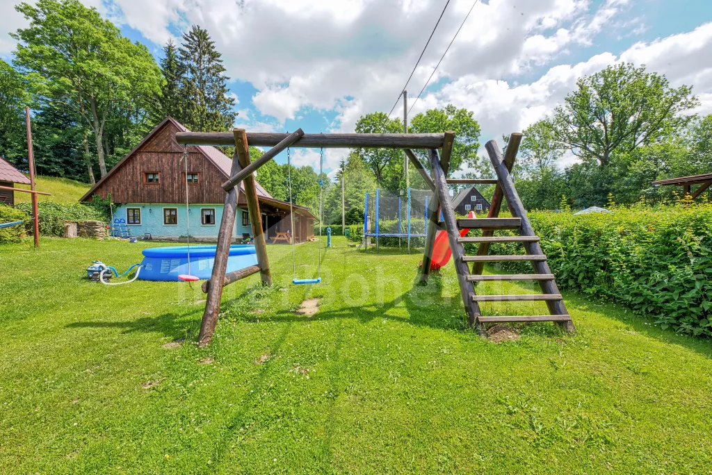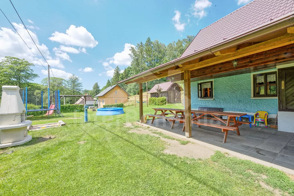 Volně stojící stylová horská chalupa, útulně zařízená, po rekonstrukci v roce 2018. Vstup pod dřevěnou pergolou do verandy, ze které se vchází do lyžárny a následně do chodby. Velká, plně vybavená kuchyně se sklokeramickou deskou, troubou, dvěma lednicemi, mikrovlnnou troubou, toustovačem, varnou konvicí, kávovarem, jídelním koutem pro 6 osob a myčkou na nádobí. Společenská místnost s jídelním stolem pro 12 osob, sedací soupravou pro 8 osob, televizí se satelitním příjmem a DVD, CD přehrávačem a krbovými kamny, které jsou napojeny na ústřední topení. Ložnice v přízemí s dvojlůžkem a přistýlkou. Koupelna se dvěma umyvadly, 2x sprchou a 2x samostatná toaleta. V patře se nachází další tři ložnice - dvě s pěti lůžky a třetí se čtyřmi lůžky. Vytápěno krbovými kamny s rozvody, popřípadě elektricky. Chalupa stojí na rozlehlém neoploceném pozemku vymezeným živým plotem. Prostorná venkovní dřevěná pergola s posezením. K dispozici zahradní gril a nadzemní bazén o průměru 3,6 m. Pro děti je zde velké travnaté hřiště s prolézačkami, pískovištěm, skluzavkou, houpačkou a velkou trampolínou. Dále k dispozici branky na fotbálek, volejbalové hřiště a koš na basketbal, stolní tenis. Vedlejší objekt je též pronajímán a naleznete ho pod kódem VC 0040. Každý objekt má své dětské hřiště. Parkování vedle objektu (max. 8 aut). U pronajímatele lze vypůjčit chlazení na pivo, dětské postýlky a židličky. Vedle domu dřevník, který lze použít na uskladnění jízdních kol.