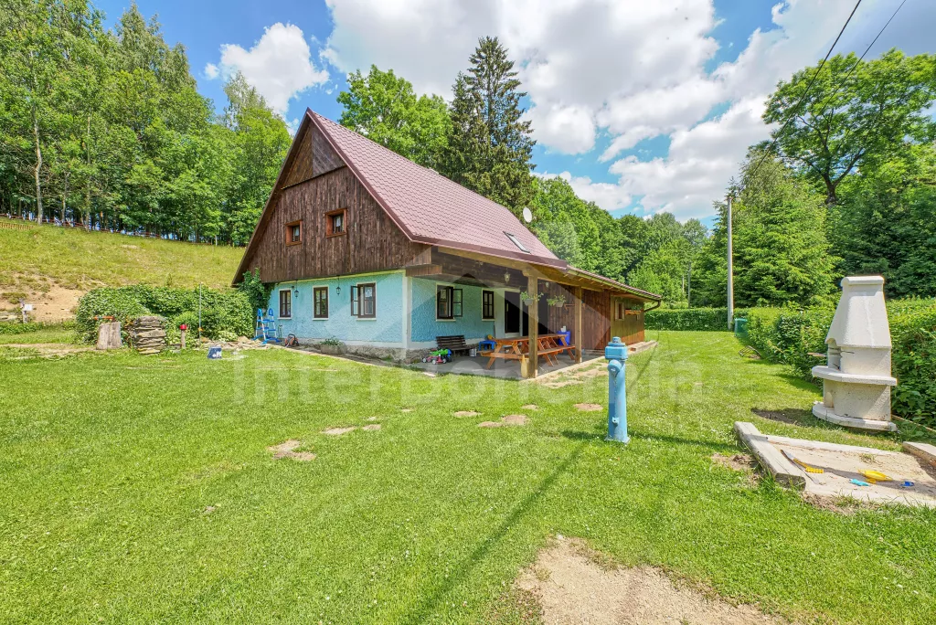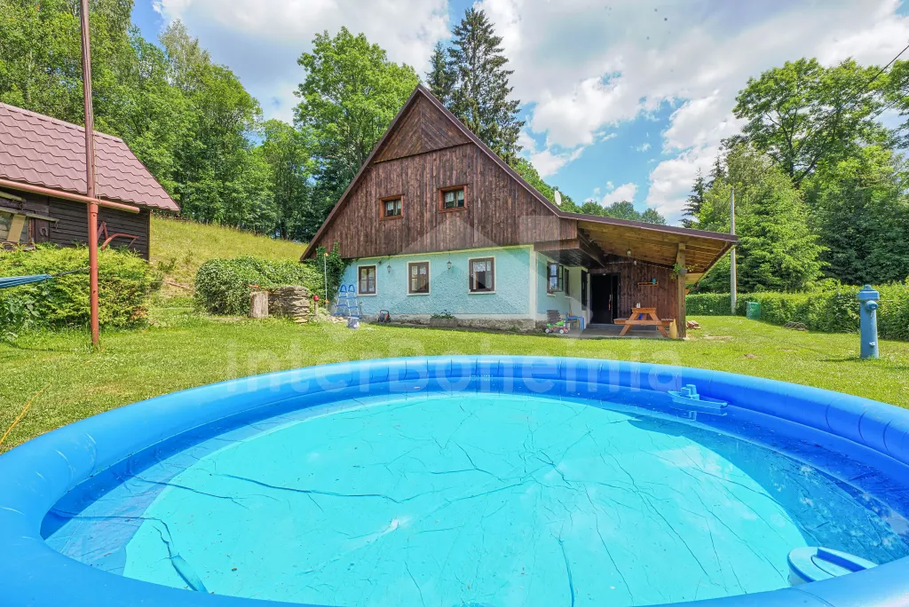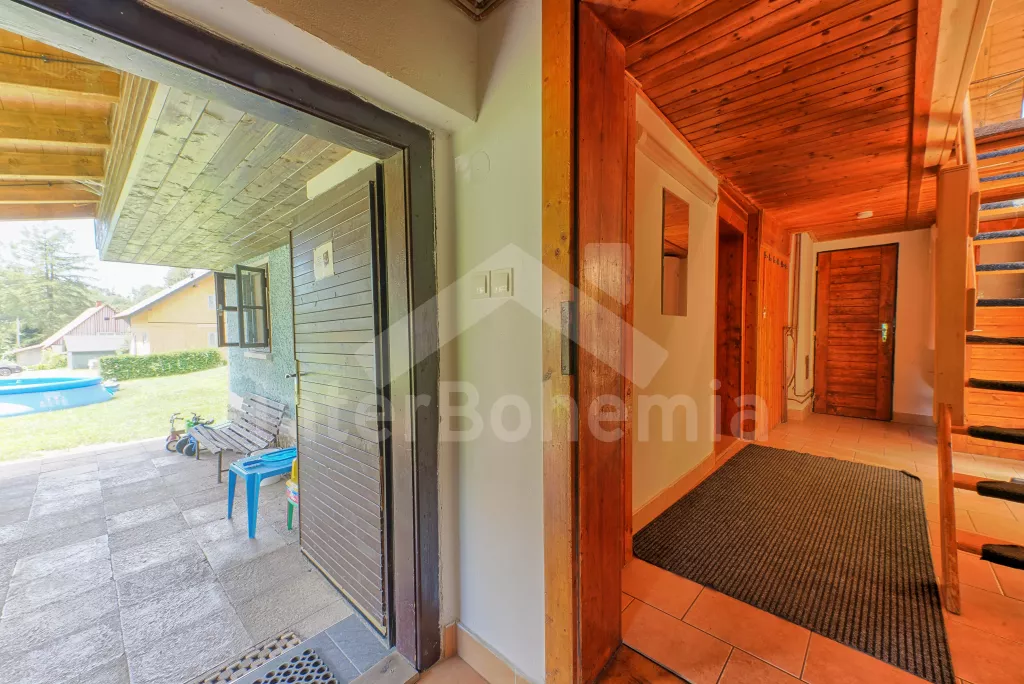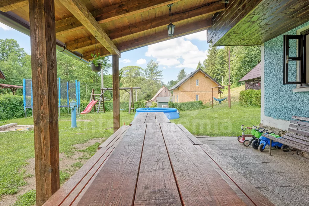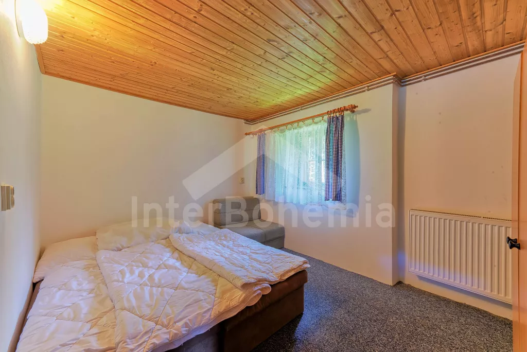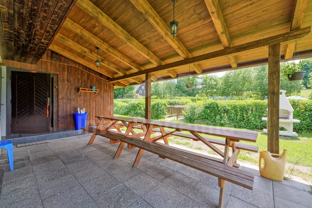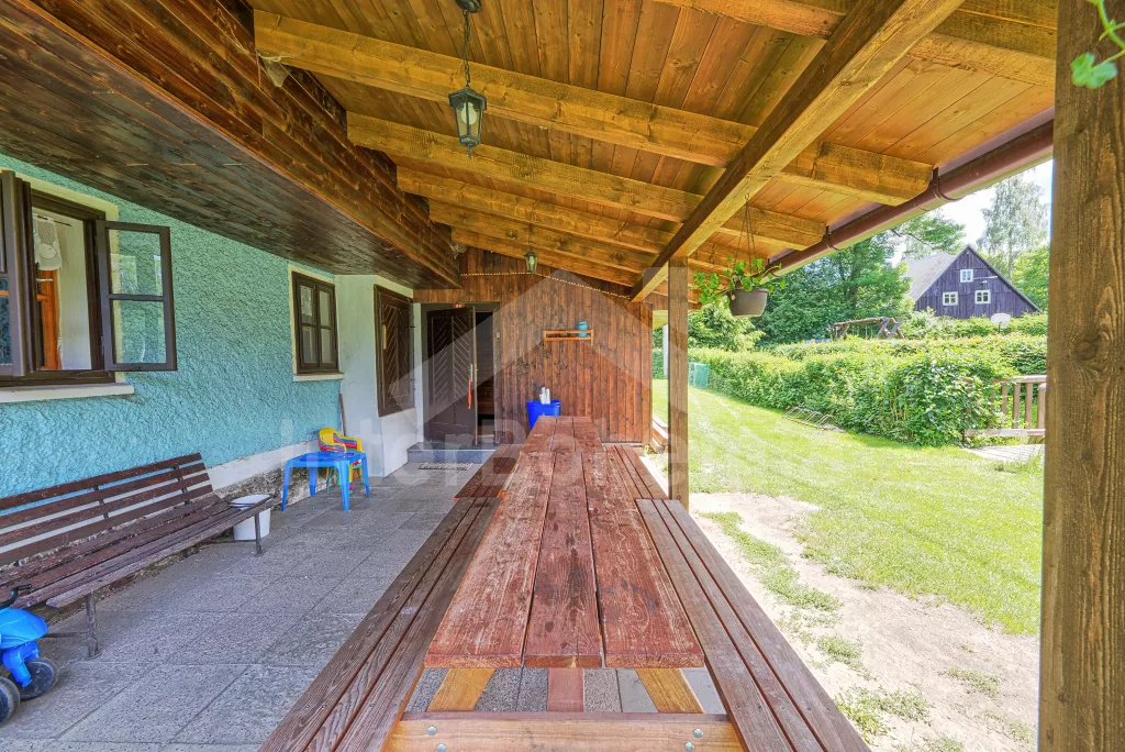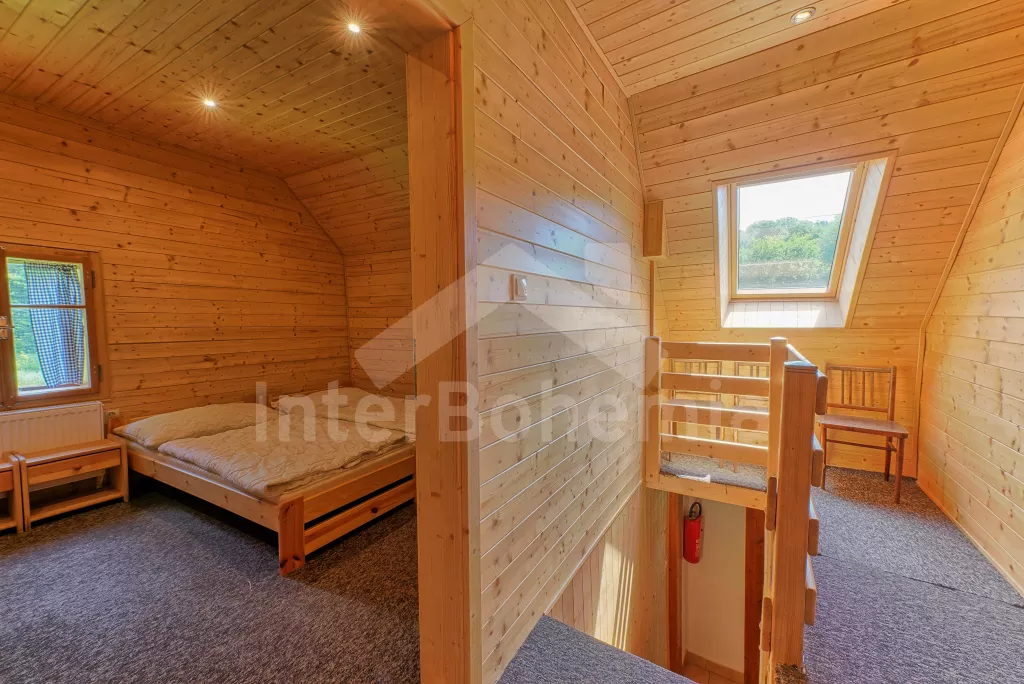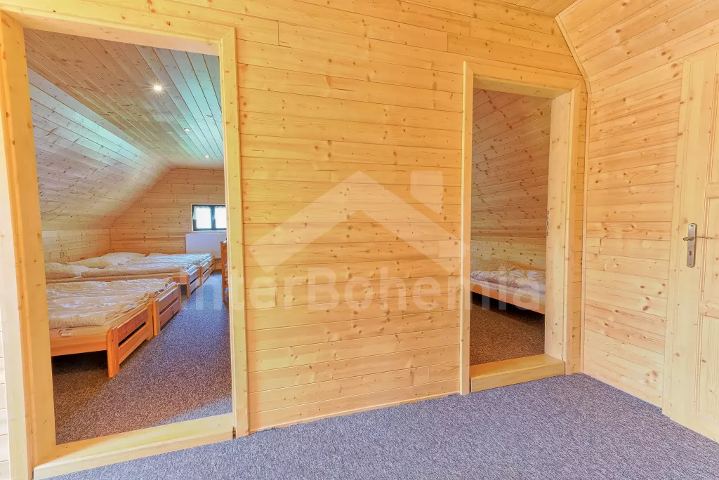 Volně stojící stylová horská chalupa, útulně zařízená, po rekonstrukci v roce 2018. Vstup pod dřevěnou pergolou do verandy, ze které se vchází do lyžárny a následně do chodby. Velká, plně vybavená kuchyně se sklokeramickou deskou, troubou, dvěma lednicemi, mikrovlnnou troubou, toustovačem, varnou konvicí, kávovarem, jídelním koutem pro 6 osob a myčkou na nádobí. Společenská místnost s jídelním stolem pro 12 osob, sedací soupravou pro 8 osob, televizí se satelitním příjmem a DVD, CD přehrávačem a krbovými kamny, které jsou napojeny na ústřední topení. Ložnice v přízemí s dvojlůžkem a přistýlkou. Koupelna se dvěma umyvadly, 2x sprchou a 2x samostatná toaleta. V patře se nachází další tři ložnice - dvě s pěti lůžky a třetí se čtyřmi lůžky. Vytápěno krbovými kamny s rozvody, popřípadě elektricky. Chalupa stojí na rozlehlém neoploceném pozemku vymezeným živým plotem. Prostorná venkovní dřevěná pergola s posezením. K dispozici zahradní gril a nadzemní bazén o průměru 3,6 m. Pro děti je zde velké travnaté hřiště s prolézačkami, pískovištěm, skluzavkou, houpačkou a velkou trampolínou. Dále k dispozici branky na fotbálek, volejbalové hřiště a koš na basketbal, stolní tenis. Vedlejší objekt je též pronajímán a naleznete ho pod kódem VC 0040. Každý objekt má své dětské hřiště. Parkování vedle objektu (max. 8 aut). U pronajímatele lze vypůjčit chlazení na pivo, dětské postýlky a židličky. Vedle domu dřevník, který lze použít na uskladnění jízdních kol.