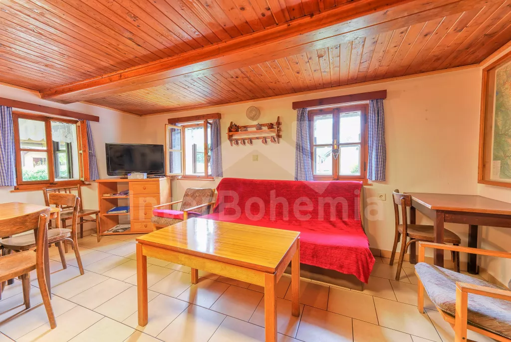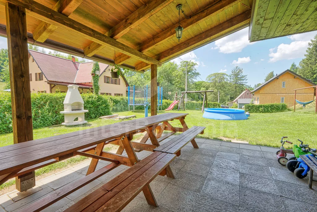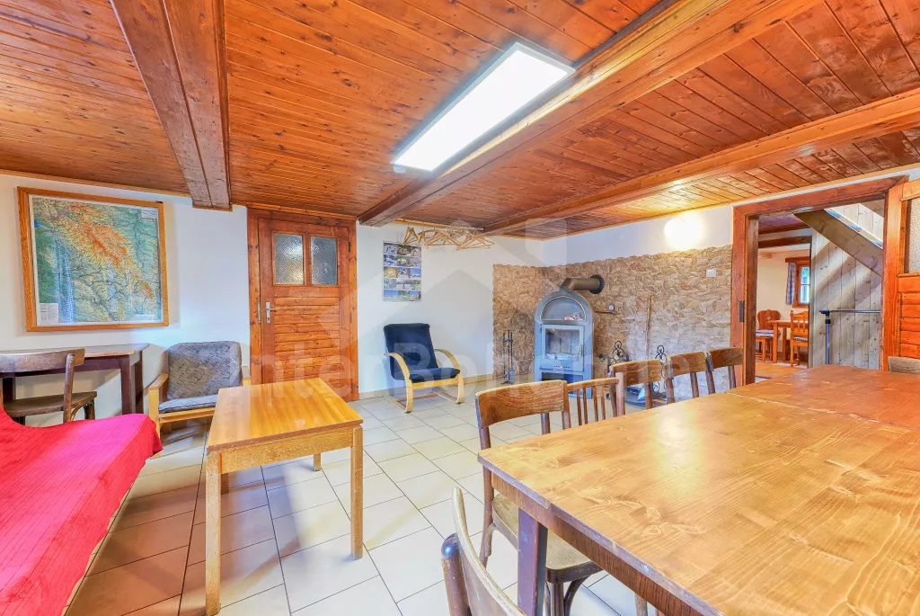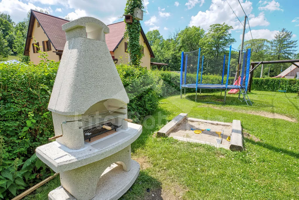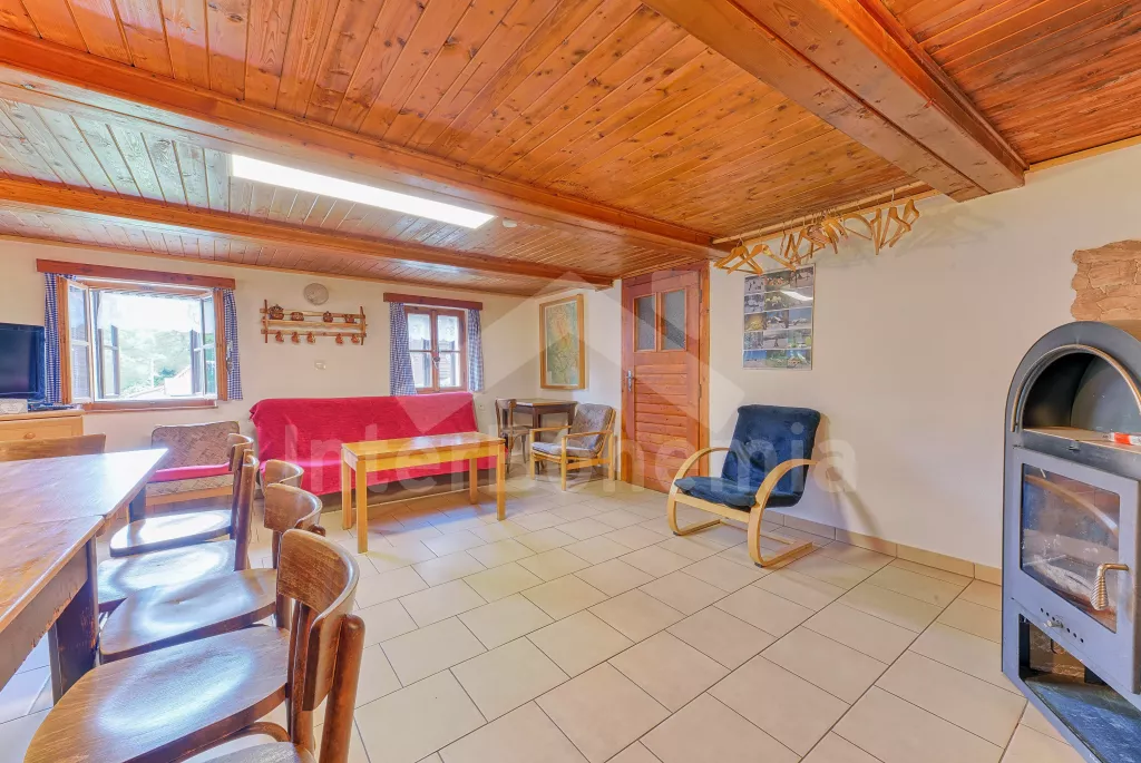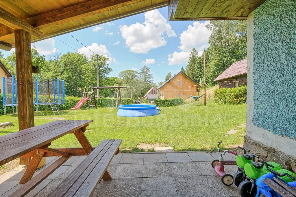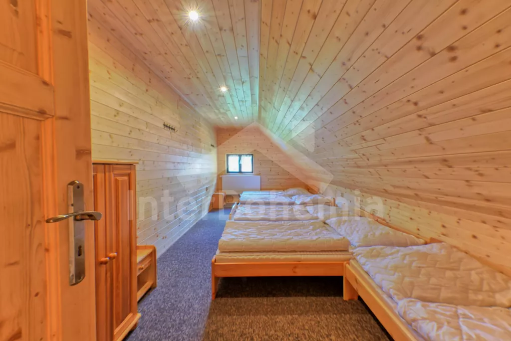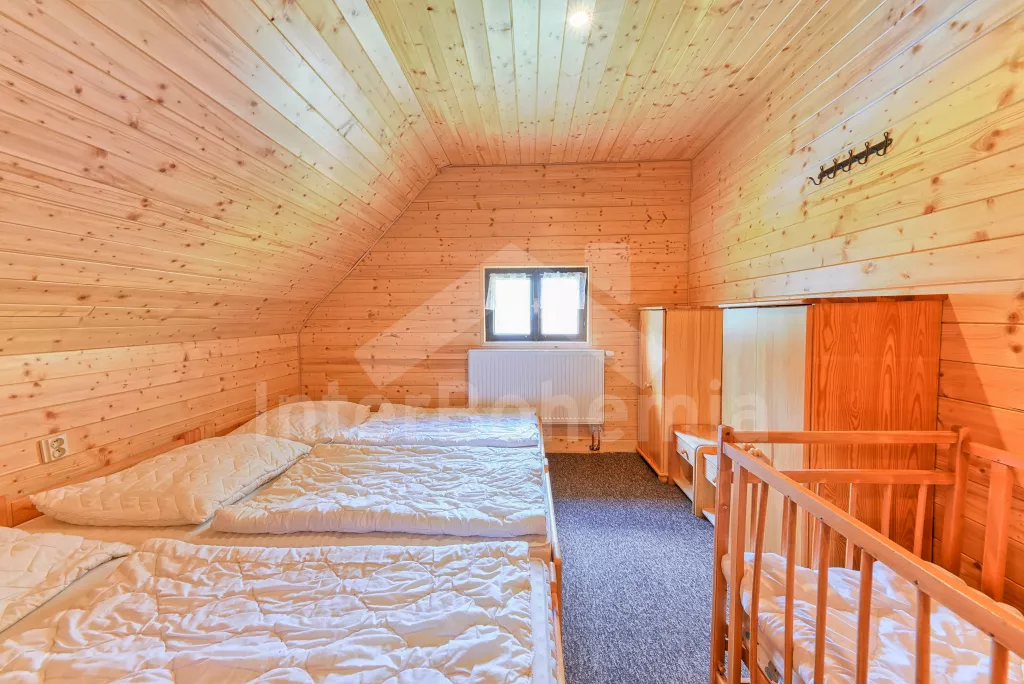 Volně stojící stylová horská chalupa, útulně zařízená, po rekonstrukci v roce 2018. Vstup pod dřevěnou pergolou do verandy, ze které se vchází do lyžárny a následně do chodby. Velká, plně vybavená kuchyně se sklokeramickou deskou, troubou, dvěma lednicemi, mikrovlnnou troubou, toustovačem, varnou konvicí, kávovarem, jídelním koutem pro 6 osob a myčkou na nádobí. Společenská místnost s jídelním stolem pro 12 osob, sedací soupravou pro 8 osob, televizí se satelitním příjmem a DVD, CD přehrávačem a krbovými kamny, které jsou napojeny na ústřední topení. Ložnice v přízemí s dvojlůžkem a přistýlkou. Koupelna se dvěma umyvadly, 2x sprchou a 2x samostatná toaleta. V patře se nachází další tři ložnice - dvě s pěti lůžky a třetí se čtyřmi lůžky. Vytápěno krbovými kamny s rozvody, popřípadě elektricky. Chalupa stojí na rozlehlém neoploceném pozemku vymezeným živým plotem. Prostorná venkovní dřevěná pergola s posezením. K dispozici zahradní gril a nadzemní bazén o průměru 3,6 m. Pro děti je zde velké travnaté hřiště s prolézačkami, pískovištěm, skluzavkou, houpačkou a velkou trampolínou. Dále k dispozici branky na fotbálek, volejbalové hřiště a koš na basketbal, stolní tenis. Vedlejší objekt je též pronajímán a naleznete ho pod kódem VC 0040. Každý objekt má své dětské hřiště. Parkování vedle objektu (max. 8 aut). U pronajímatele lze vypůjčit chlazení na pivo, dětské postýlky a židličky. Vedle domu dřevník, který lze použít na uskladnění jízdních kol.