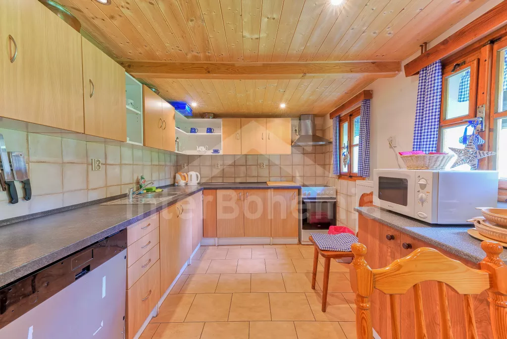 Volně stojící stylová horská chalupa, útulně zařízená, po rekonstrukci v roce 2018. Vstup pod dřevěnou pergolou do verandy, ze které se vchází do lyžárny a následně do chodby. Velká, plně vybavená… Více informací