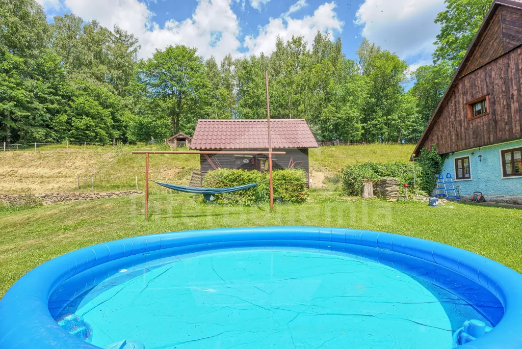 Chalupa vyhovovala pro pobyt s dětmi, kterých jsme měli s sebou pět. Pozemek pro jejich hry a dovádění byl dostatečně veliký. Velké plus byl bazén, ochlazení v něm ve vedrech přišlo vhod.