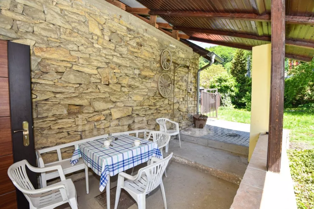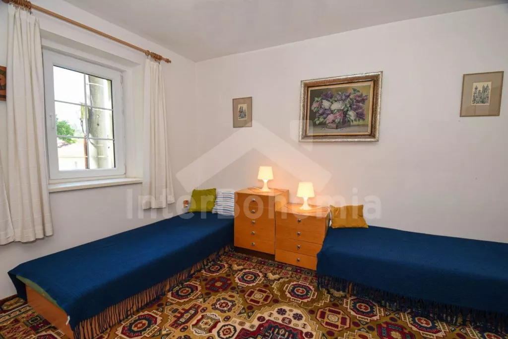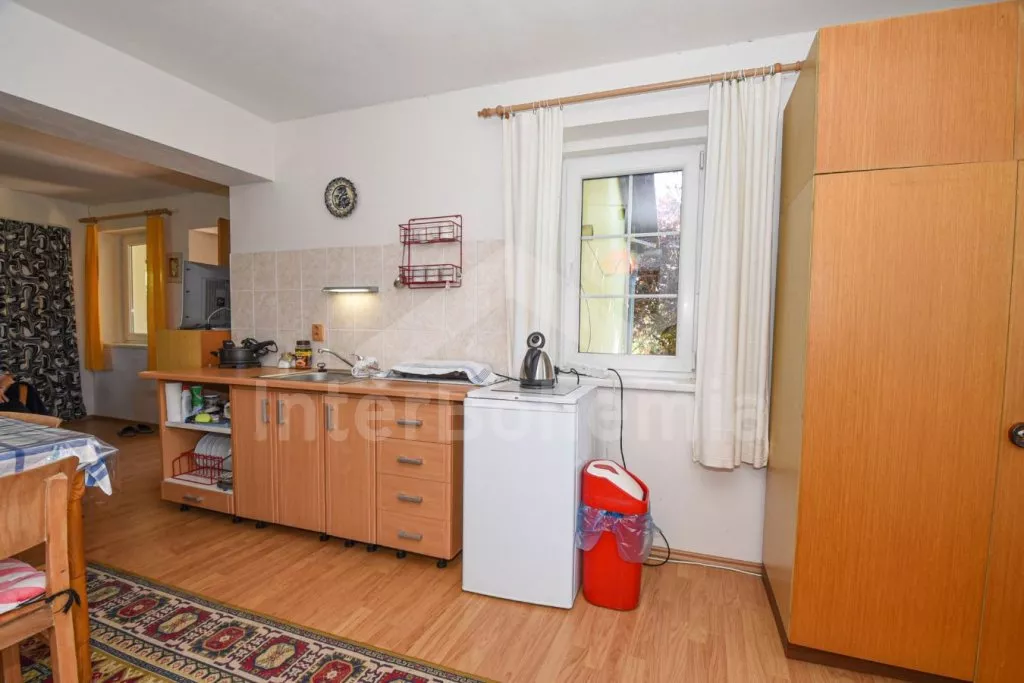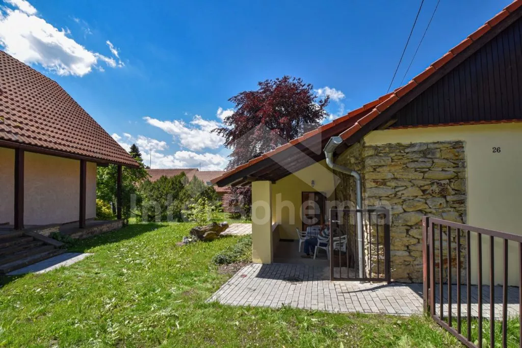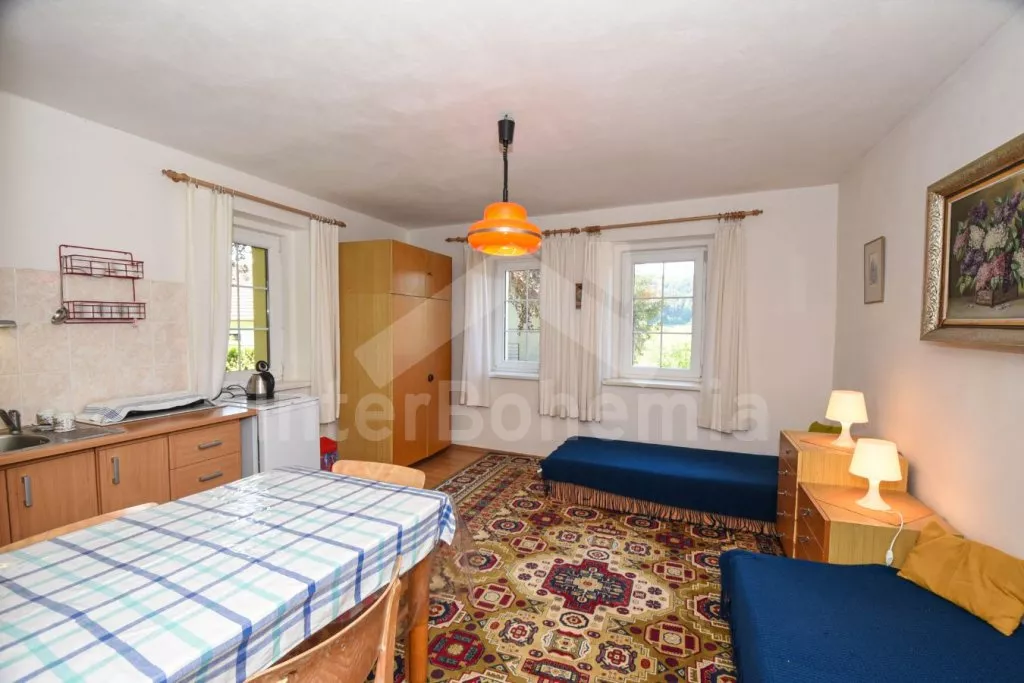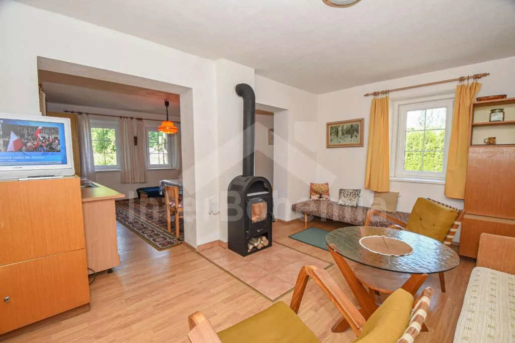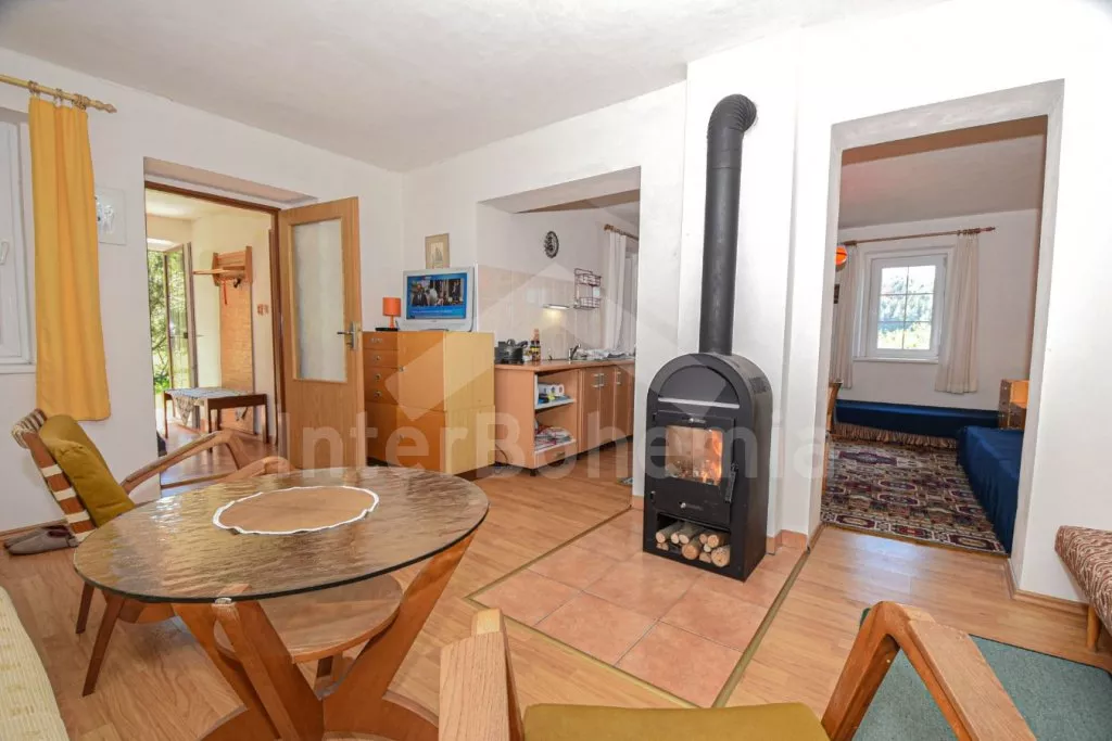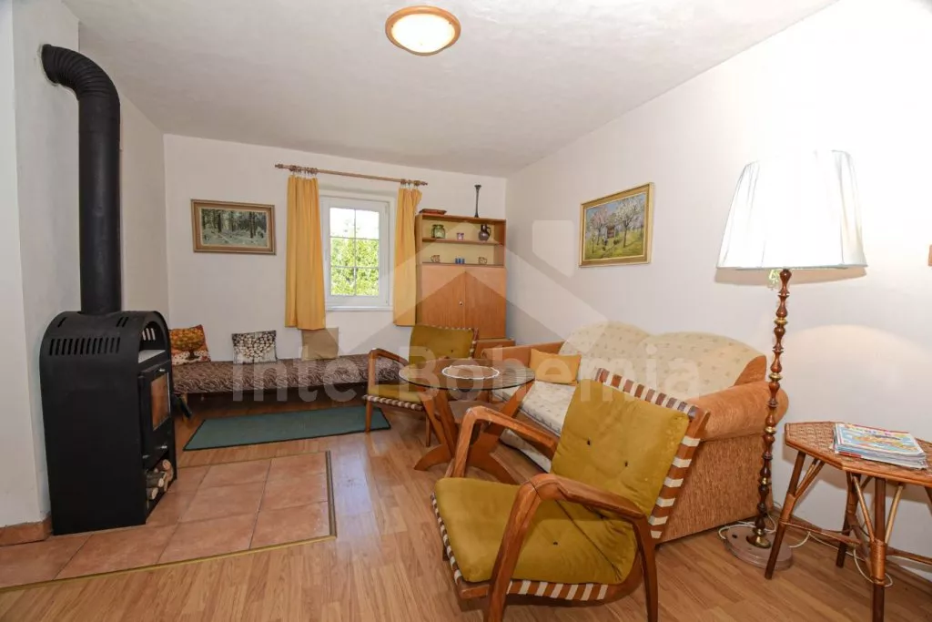 Volně stojící domek po rekonstrukci v roce 2015, pěkně a jednoduše zařízený. Vstup přes zastřešenou terasu, hala s posezením a vstupem na druhou terasu s posezením. Prostorný obývací pokoj s TV a s krbovými kamny sloužící zároveň jako ložnice s posezením, rozkládacím gaučem (slouží také jako dvě přistýlky), třemi samostatnými lůžky, kuchyňským koutem s elektrickým dvouplotýnkovým vařičem, mikrovlnnou troubou, varnou konvicí a jídelním stolkem pro tři osoby. Koupelna se sprchovým koutem, toaletou a umyvadlem. Pračka. Vytápění krbovými kamny a lokálně elektrickým přímotopem. Dům stojí na oploceném pozemku se zahradou, na kterém stojí ještě jeden objekt majitele k pronájmu, který najdete pod kódem VC 0047. K dispozici je terasa se zahradním nábytkem. Parkování před objektem.