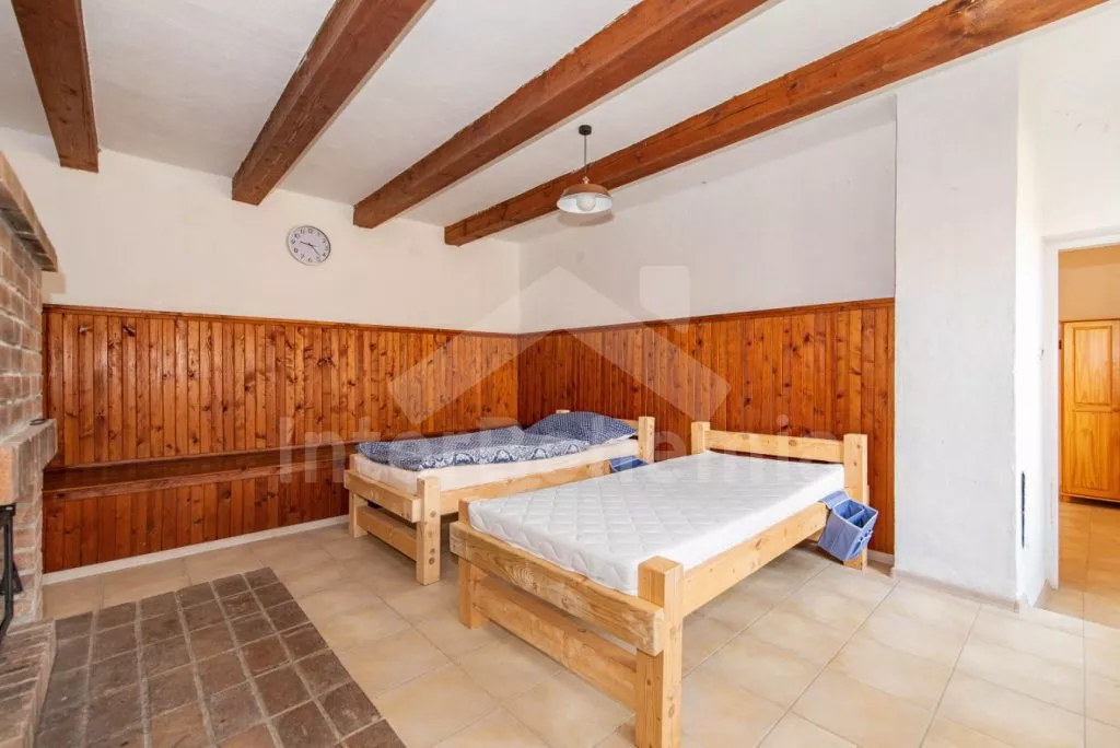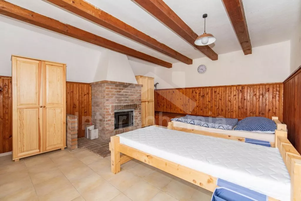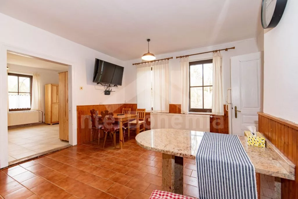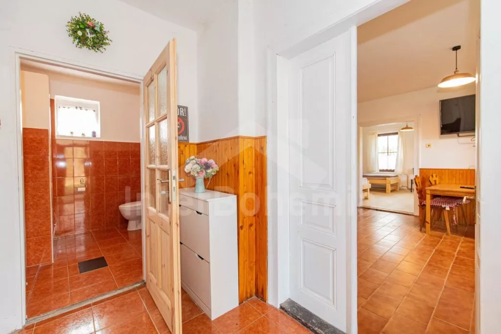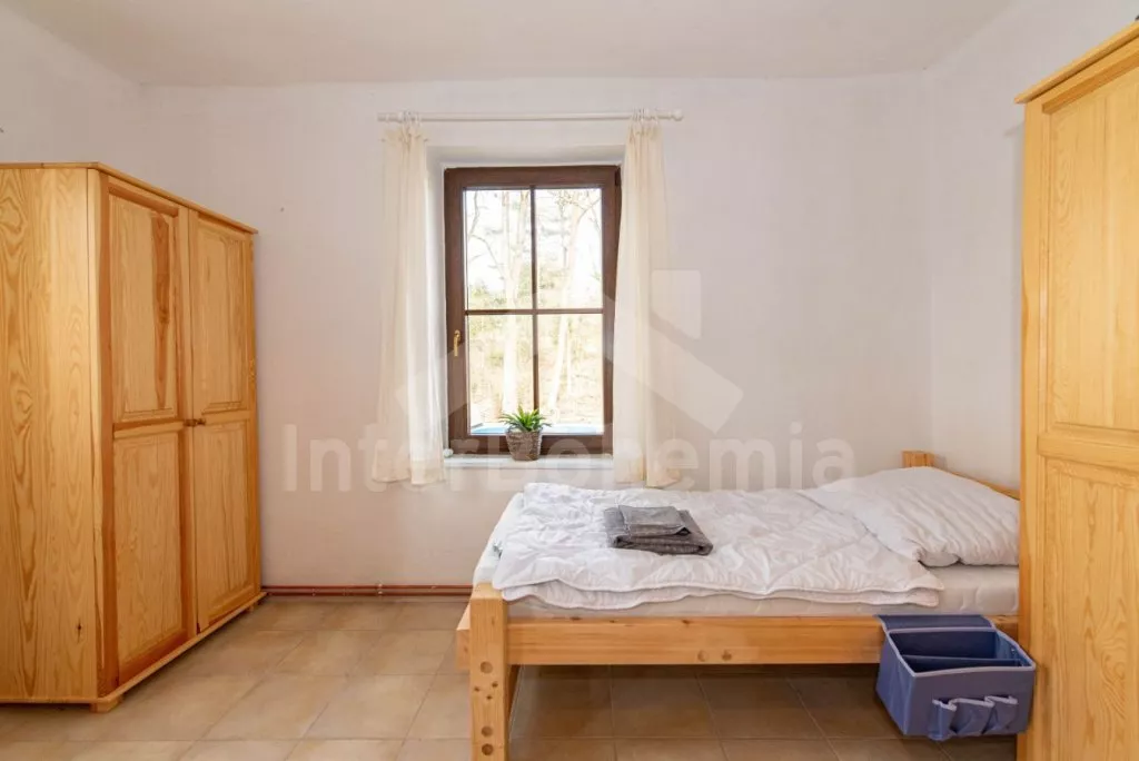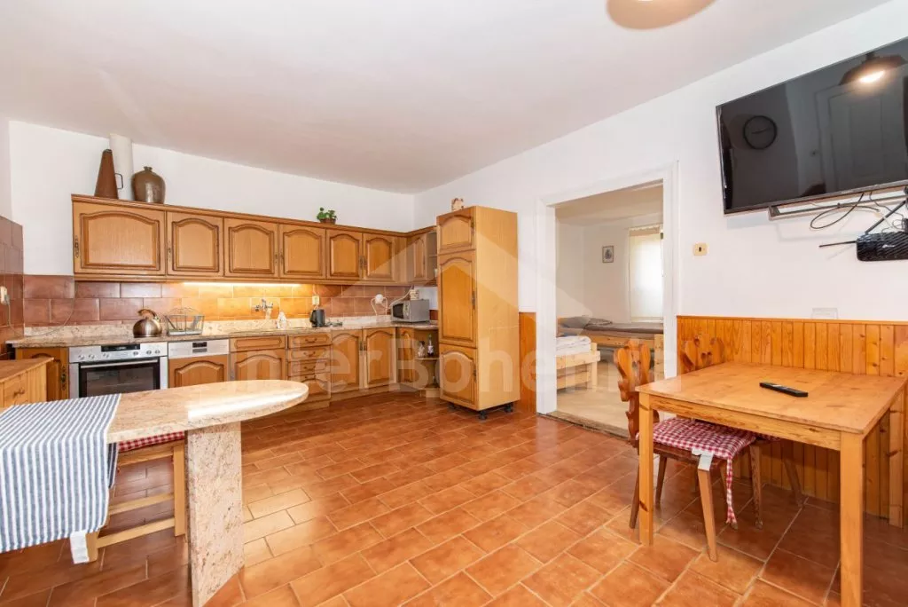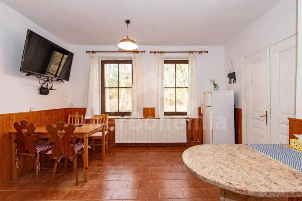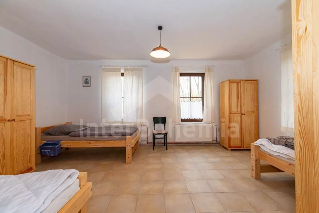 V roce 2020 kompletně zrekonstruovaná chalupa na vlastním, částečně oploceném pozemku. Vstup, hala, prostorná obývací místnost spojená s kuchyní. Vybavená kuchyňská linka se sklokeramickou varnou deskou, troubou, mikrovlnnou troubou, vestavěnou lednicí, druhou lednicí s mrazákem, rychlovarnou konvicí, nádobím a myčkou na nádobí. V obývací místnosti jídelní stůl pro 4 osoby, barový pult pro 4 osoby a LCD televize. První ložnice se třemi jednolůžky. Z haly je přístupná druhá ložnice se dvěma jednolůžky. Třetí ložnice se dvěma jednolůžky je přístupná průchodem přes druhou ložnici, nebo samostatným vstupem zvenčí. Koupelna se sprchovým koutem, umyvadlem a WC. Vytápění chalupy ústřední na plyn. Hosté mají k dispozici zahradní posezení, přenosný gril, pro děti pískoviště, skluzavku, zapuštěný bazén o rozměrech 5 m x 3 m se slanou vodou, v kryté stodole dále šipky, fotbálek, stolní tenis a možnost posezení při nepříznivém počasí. Parkování v uzavřeném dvoře pro 2 automobily (při dobrém počasí - nezpěvný příjezd), dále parkování před objektem pro 2 automobily.
