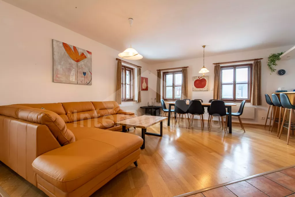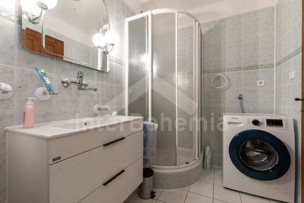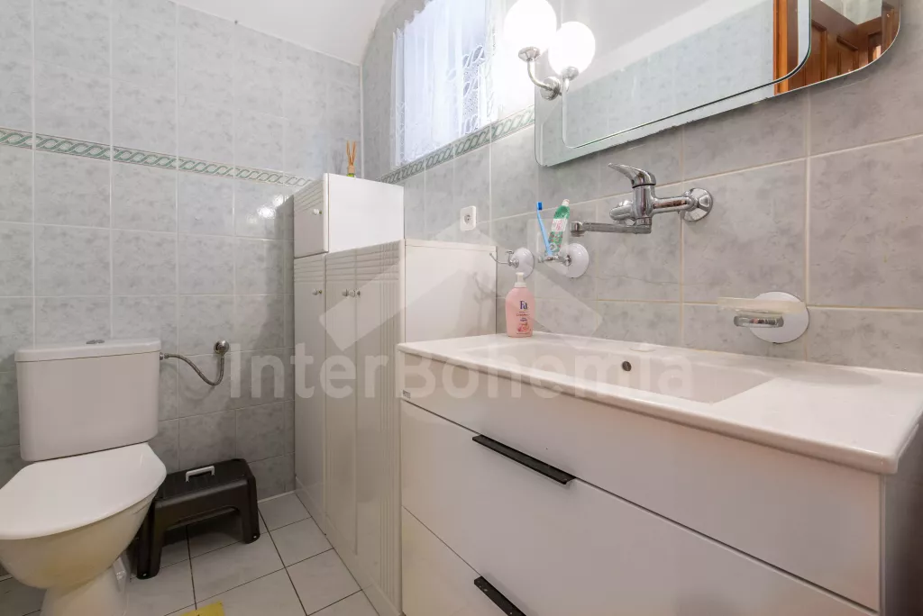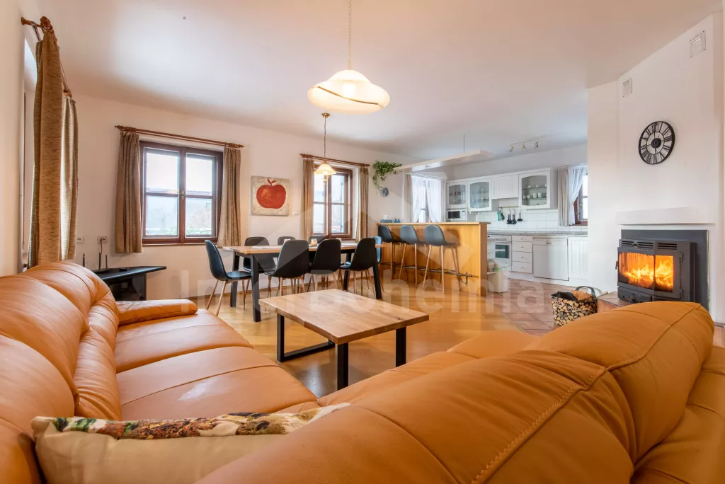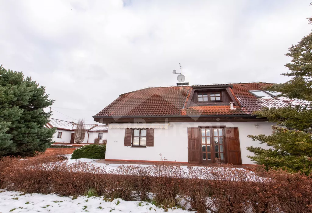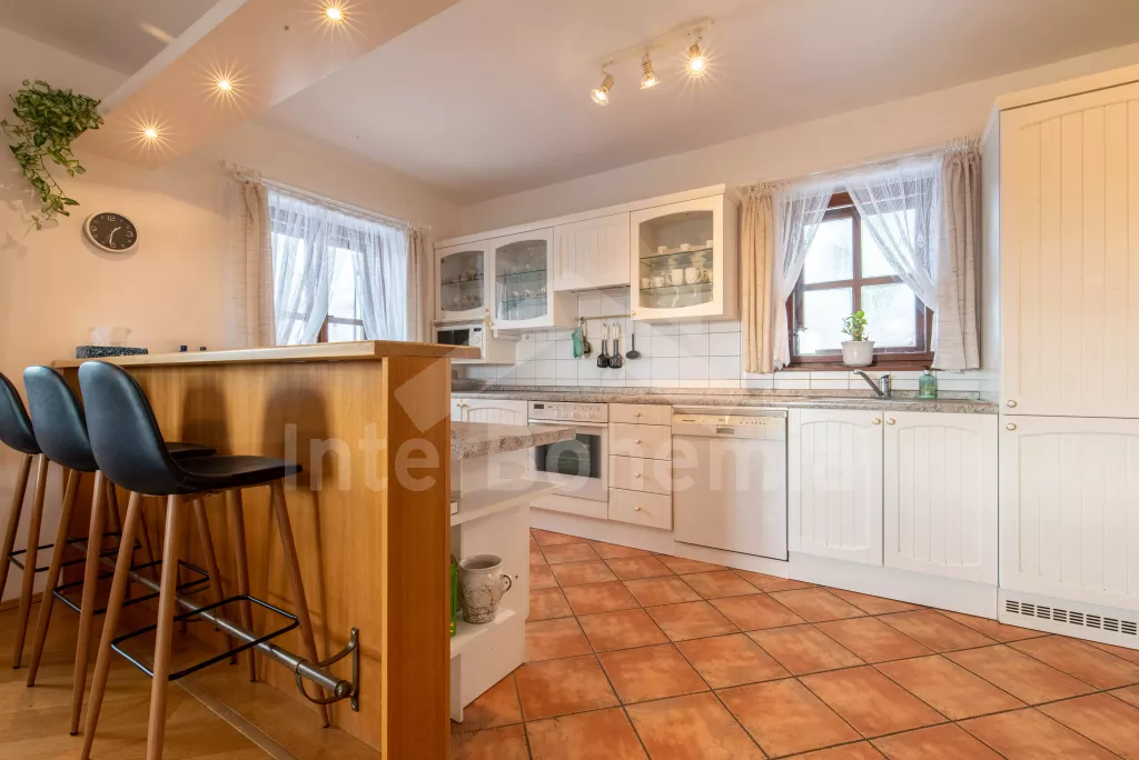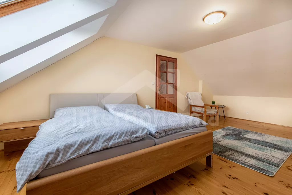 Prostorná a stylově vybavená chalupa s velkým bazénem a zastřešenou pergolou. Chodba, vstup do obytné místnosti s kuchyňským koutem. Obývací místnost disponuje rozkládací koženou pohovkou (extra dvojlůžko), konferenčním stolkem, jídelním stolem pro 8 osob, krbem, rádiem a TV. Vkusně zařízená kuchyňská linka s lednicí a mrazákem, sklokeramickou deskou, troubou, mikrovlnnou troubou, rychlovarnou konvicí, nádobím a myčkou na nádobí. Tradiční sporák na tuhá paliva. Koupelna se sprchou, umyvadlem, WC a moderní pračkou. V prvním patře celkem 3 ložnice. První ložnice s dvoulůžkem a křeslem. Druhá ložnice s dvoulůžkem, úložným prostorem a dětskou postýlkou. Třetí ložnice s jednolůžkem a rozkládací sedačkou. Koupelna s vanou, umyvadlem a toaletou. Objekt je vytápěn krbem s vyvedenými průduchy a vestavěnými přímotopy. Oplocená a velmi prostorná zahrada se zapuštěným bazénem, posezením pod zastřešenou pergolou a ohništěm. K dispozici gril jak na tuhá paliva, tak plynový. Parkování před objektem či na pozemku až pro 4 automobily.
