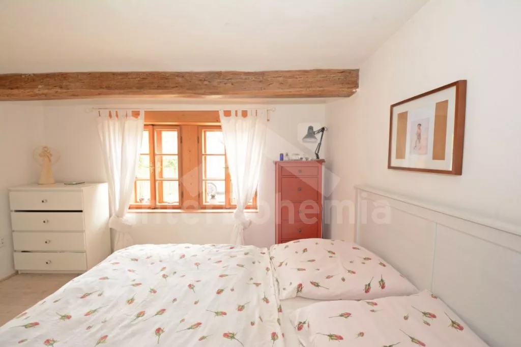 Krásná, citlivě a vkusně zrekonstruovaná venkovská chalupa s vlastní uzavřenou zahradou. Vstup, obývací pokoj spojený s kuchyní. Kuchyňská linka se sklokeramickou varnou deskou, troubou, mikrovlnnou troubou, lednicí s mrazákem, rychlovarnou konvicí a myčkou na nádobí. V kuchyni se nachází jídelní stůl pro 4 osoby. Obývací pokoj se sedací soupravou (slouží jako rozkládací lůžko pro 2 osoby), LCD televizí a krbovými kamny. První ložnice s dvoulůžkem, druhá ložnice také s dvoulůžkem. Koupelna s vanou, umyvadlem a wc. Objekt je vytápěn krbovými kamny, nebo elektrickými přímotopy. Hosté mají k dispozici kryté venkovní posezení na terase, přenosný gril a houpací síť. Parkování pro 2 osobní automobily před objektem.