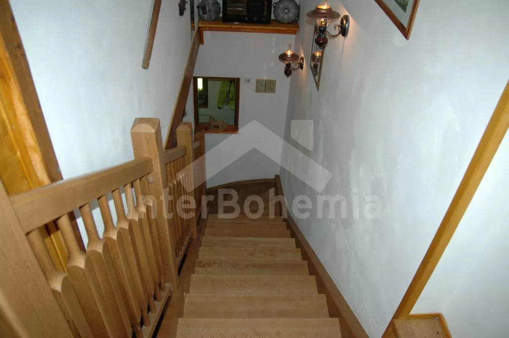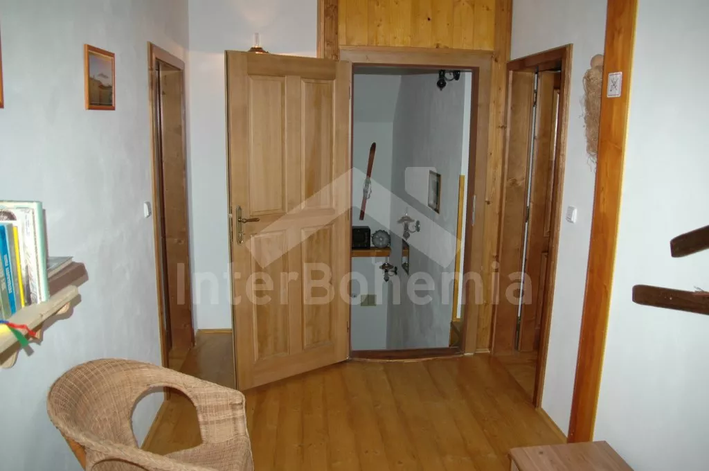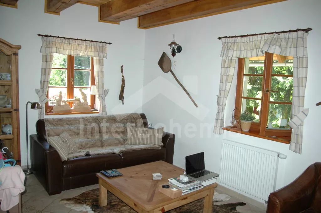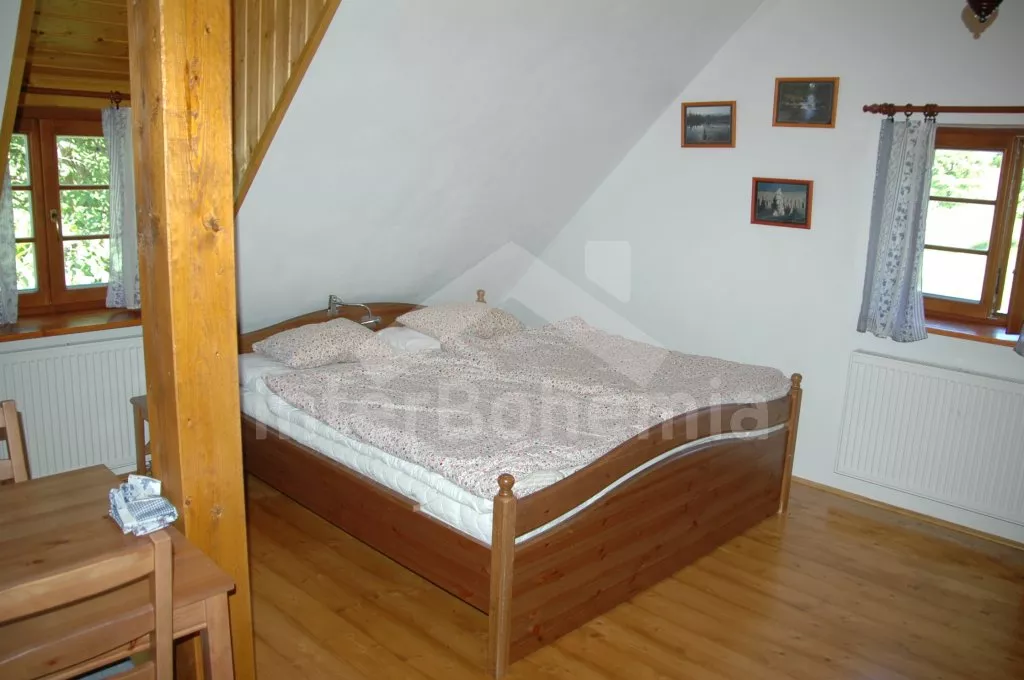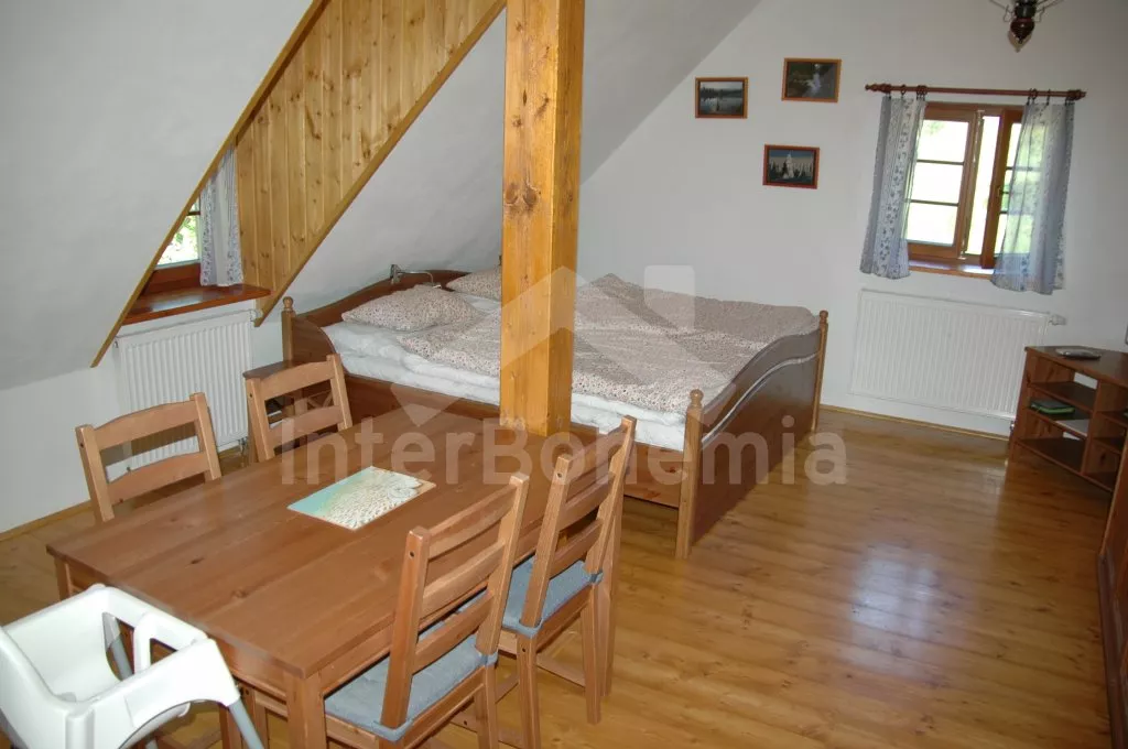 Volně stojící unikátní chalupa šumavského stylu se jménem Anička, postavená v roce 2013, komfortně a moderně vybavená. Vstup, chodba, hlavní obývací místnost s posezením, TV se satelitem, jídelním stolem pro 6 osob a jedinečnou a funkční pecí, spojená s kompletně vybaveným kuchyňským koutem s chladničkou, myčkou nádobí, keramickou varnou deskou, elektrickou troubou, mikrovlnnou troubou, kávovarem a varnou konvicí. Ložnice s jedním dvojlůžkem. Koupelna se sprchovým koutem, umyvadlem a toaletou. Technická místnost se saunou a pračkou.