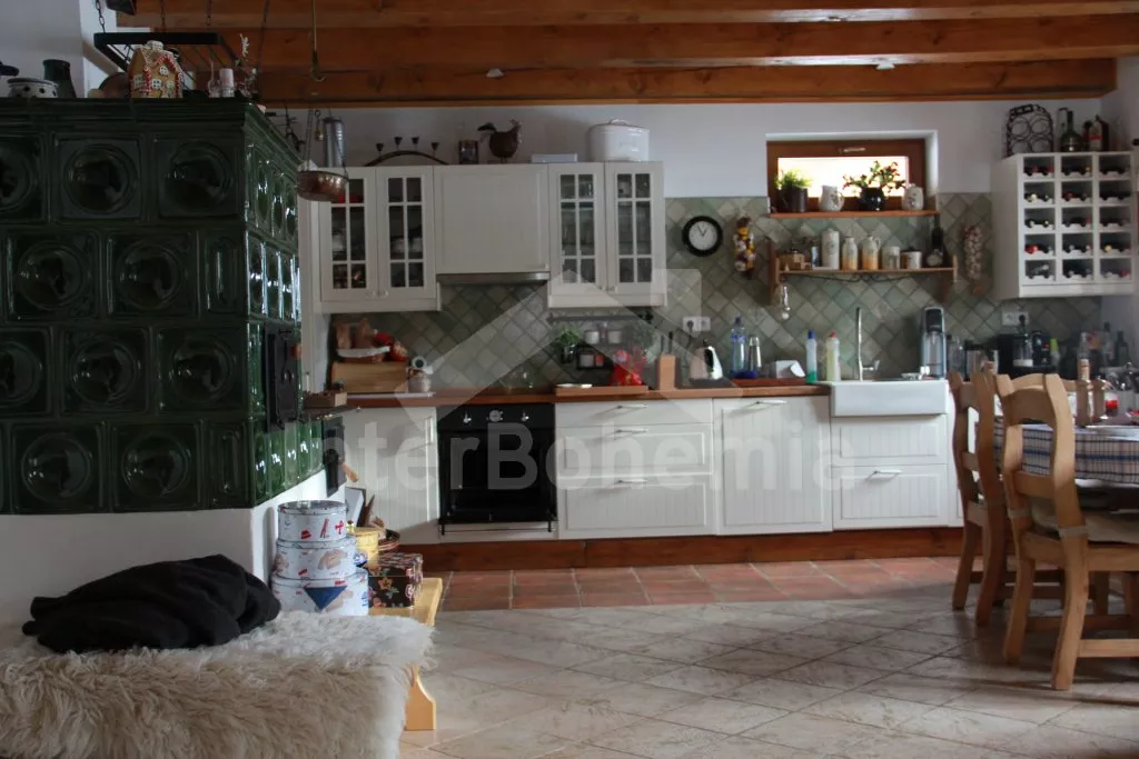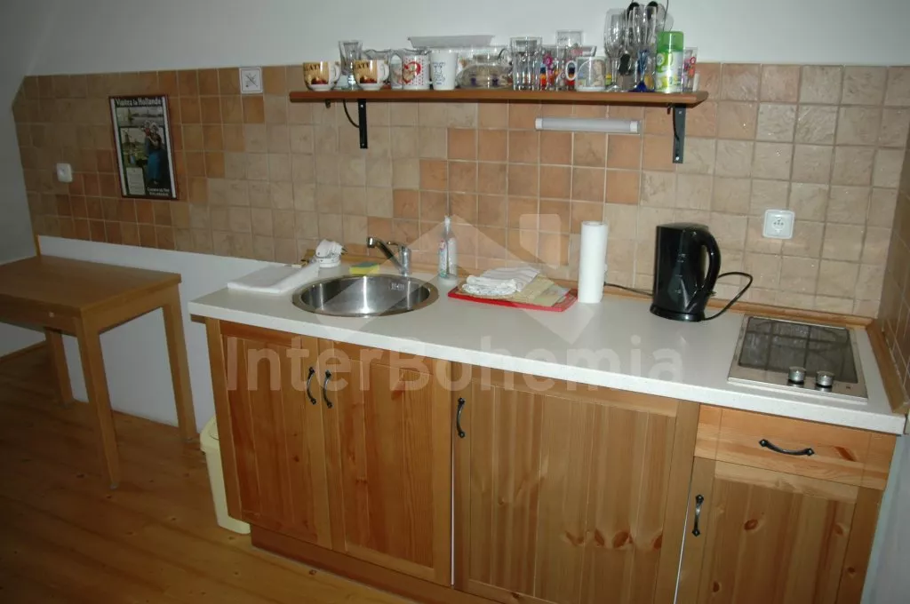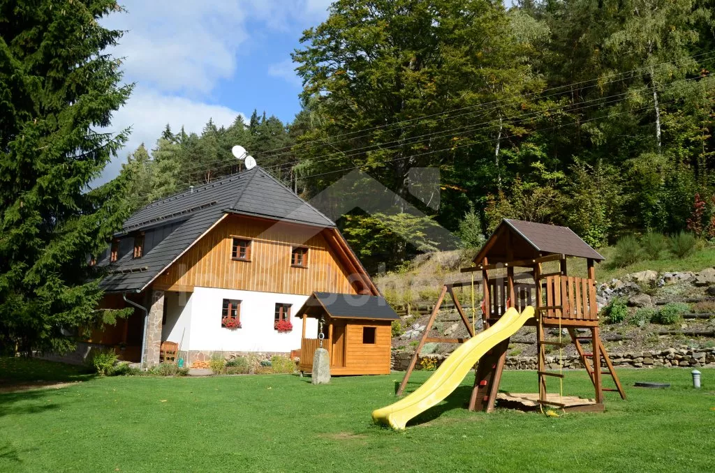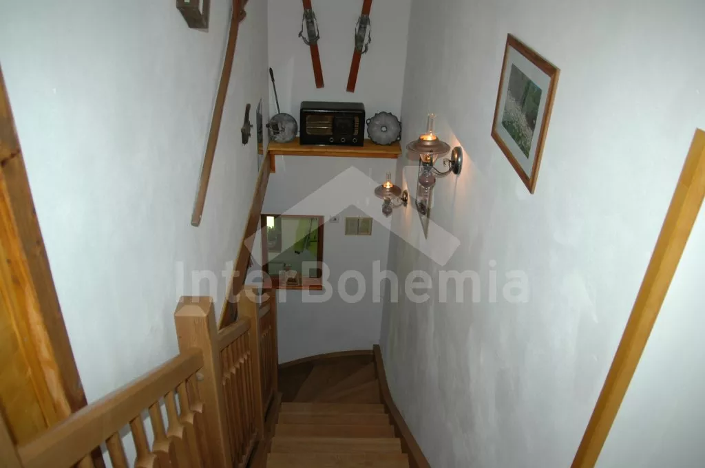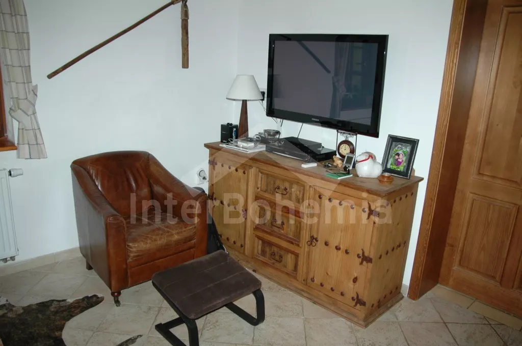Volně stojící unikátní chalupa šumavského stylu se jménem Anička, postavená v roce 2013, komfortně a moderně vybavená. Vstup, chodba, hlavní obývací místnost s posezením, TV se satelitem, jídelním stolem pro 6 osob a jedinečnou a funkční pecí, spojená s kompletně vybaveným kuchyňským koutem s chladničkou, myčkou nádobí, keramickou varnou deskou, elektrickou troubou, mikrovlnnou troubou, kávovarem a varnou konvicí. Ložnice s jedním dvojlůžkem. Koupelna se sprchovým koutem, umyvadlem a toaletou. Technická místnost se saunou a pračkou.