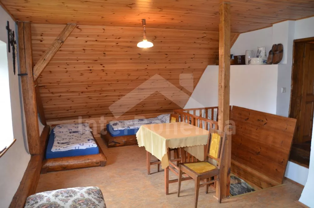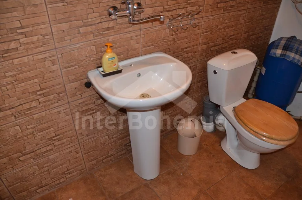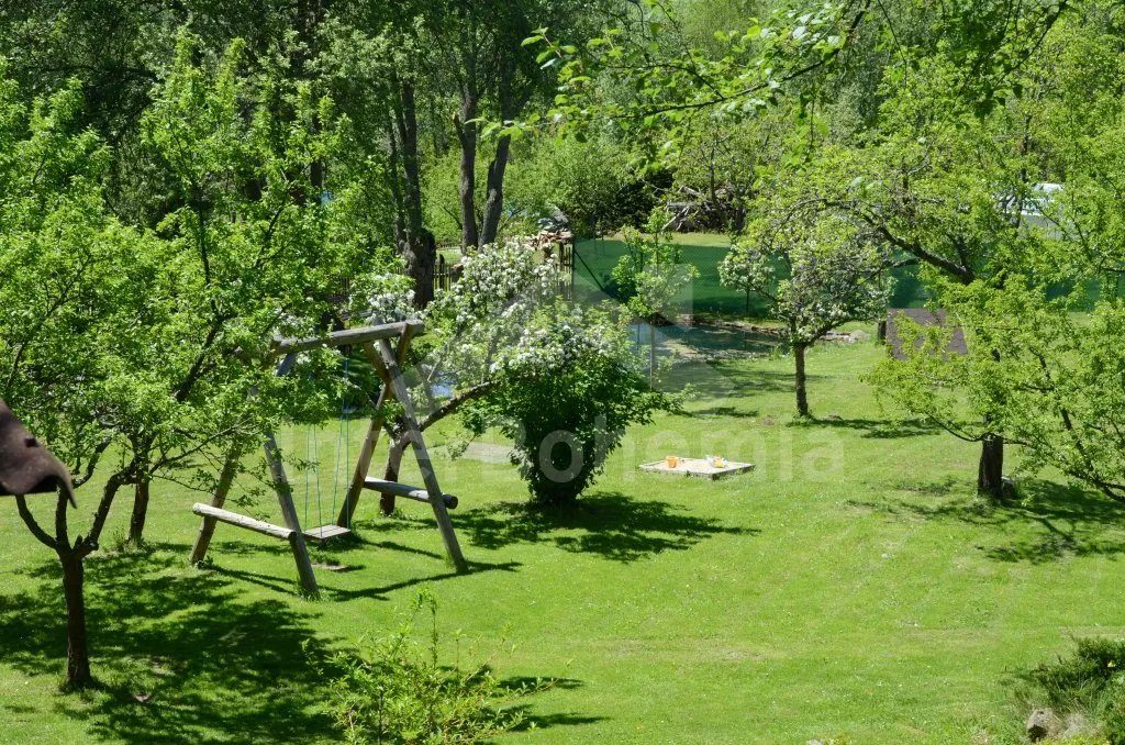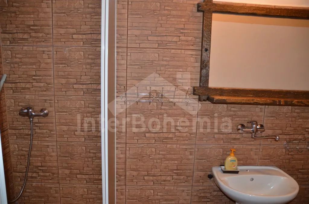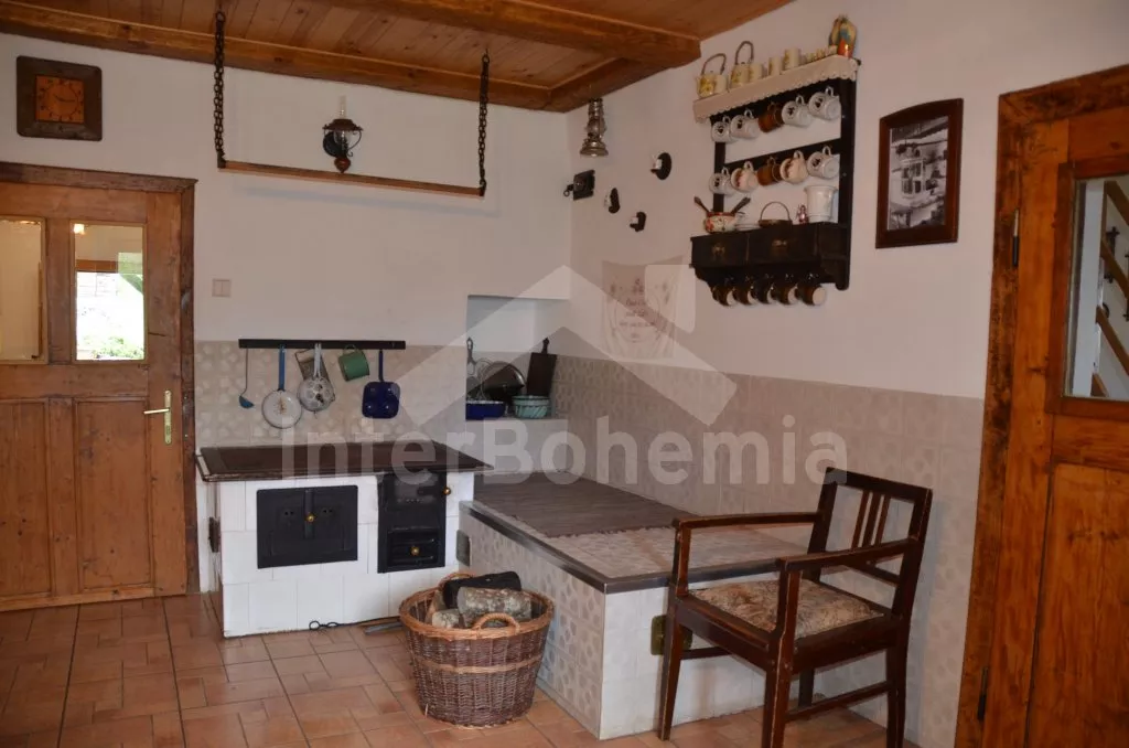 Chalupa na jedné polovině pozemku, ležící v nádherném koutu Šumavy, hezky zrekonstruovaná a zařízená ve starém stylu. Vstupní hala s lednicí a mrazákem. Obývací pokoj se sedací soupravou, televizí a kamny na dřevo. Kuchyně s jídelním stolem s lavicemi, elektrickým dvouplotýnkovým vařičem, mikrovlnnou troubou a rychlovarnou konvicí. Kuchyňská kamna na dřevo s pecí. Koupelna se sprchovým koutem a WC. Do patra, kde se nachází dvě prostorné ložnice, vedou příkré dřevěné schody uzavíratelné poklopem. První ložnice je vybavena jedním dvojlůžkem a třemi samostatnými lůžky a druhá pak dvěma dvojlůžky a jedním samostatným lůžkem. Vytápění kamny na dřevo, případně elektrickými přímotopy. K dispozici je krytá terasa s posezením, velká oplocená zahrada s ohništěm, pískovištěm a houpačkou a přenosný gril. Na zahradě se nachází romantické zákoutí s malým rybníčkem a lavičkou. Parkování na pozemku.