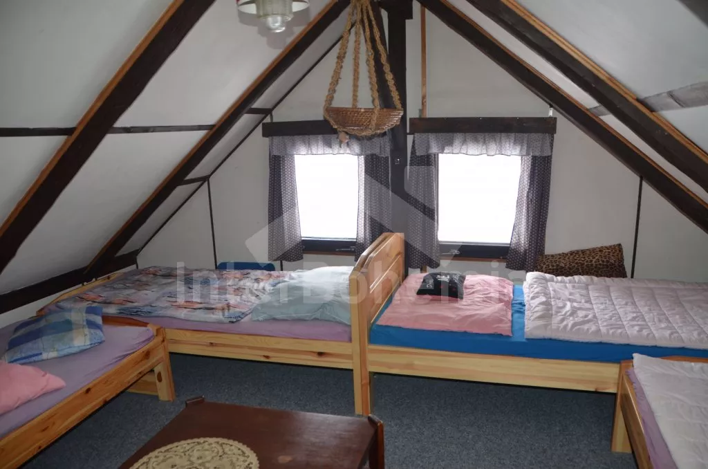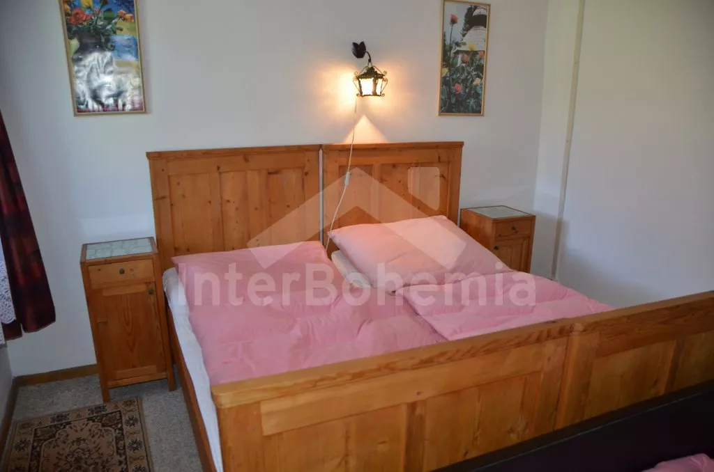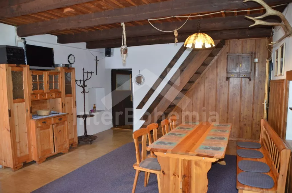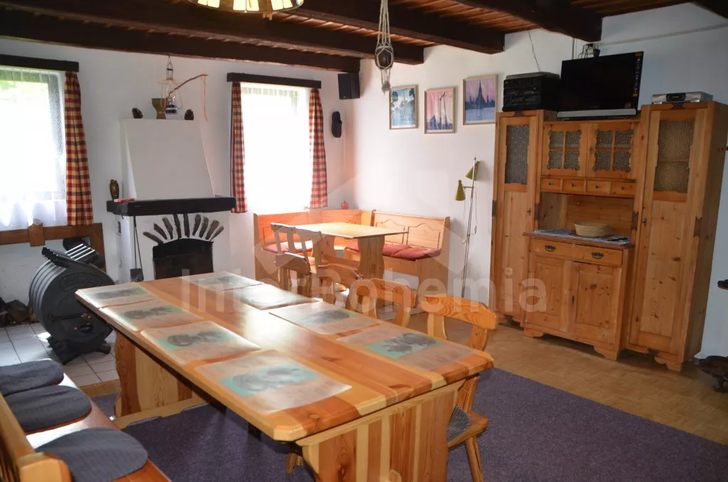 Volně stojící rekreační chalupa. Vstup, kuchyňka s plynovým sporákem, lednicí, kávovarem, varnou konvicí a mikrovlnnou troubou. Obývací pokoj s rohovou sedací soupravou, jídelním stolem pro 8 osob, krbem, televizí se satelitním příjmem a HIFI soupravou. Ložnice s dvojlůžkem a jedním samostatným lůžkem. Koupelna se sprchou a toaletou. V podkroví se nachází druhá ložnice s pěti samostatnými lůžky. Vytápění kamny na tuhá paliva a krbem. Neoplocená zahrada s terasou, k dispozici dřevěný zahradní nábytek, slunečník, zahradní gril, ohniště a houpačka. Vlastní parkoviště.
