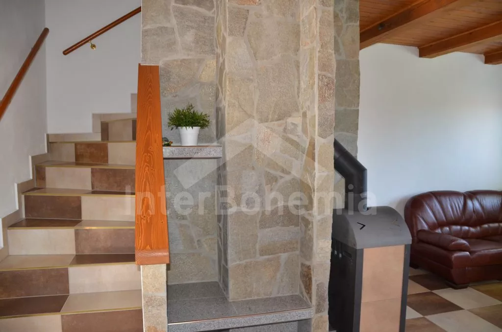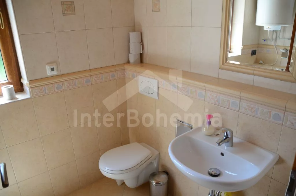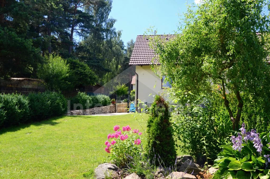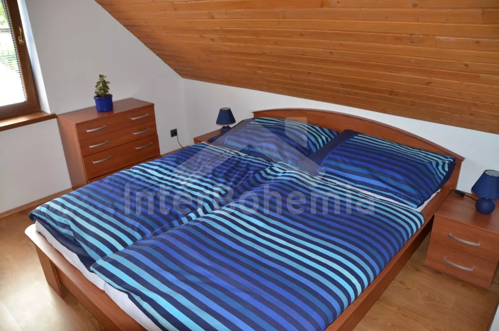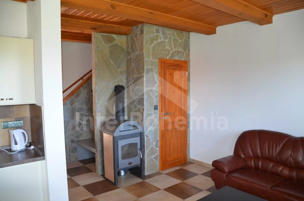 Volně stojící dvojdomek, obýváte jednu polovinu. Dům byl postaven v roce 2013 a ​​je krásně a komfortně zařízen. Vchod, velký obývací pokoj s pohovkou pro 4 osoby, krbem, TV set-top-boxem a jídelním stolem pro 4 osoby. Moderní kuchyně s lednicí, elektrickým sporákem se sklokeramickou varnou deskou, myčkou nádobí, mikrovlnnou troubou a rychlovarnou konvicí. Koupelna se sprchovým koutem, umyvadlem a toaletou. V patře se nachází druhá toaleta, ložnice s dvojlůžkem a ložnice s dvojlůžkem a rozkládací přistýlkou​​. Vytápění krbem. Zahrada je kompletně oplocená, je zde úschovna kol, kovový zahradní nábytek, gril a bazén o průměru 3,6 m. Vlastní parkoviště.
