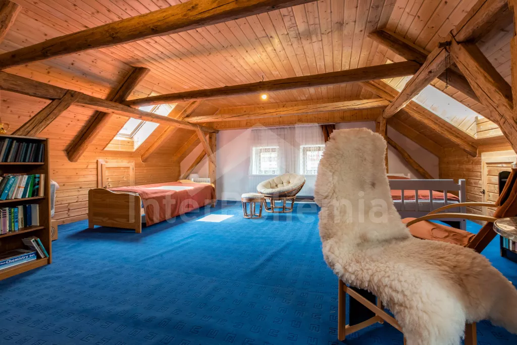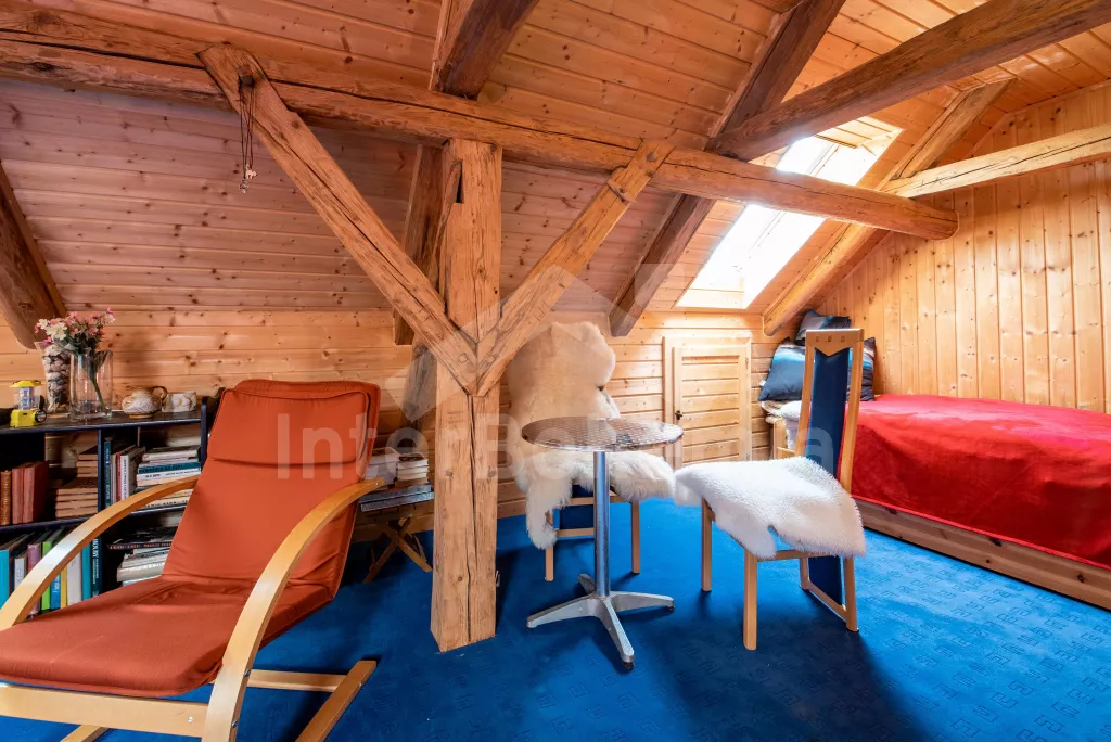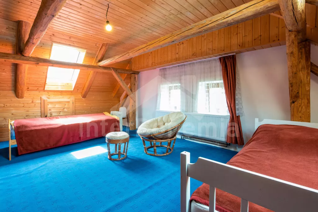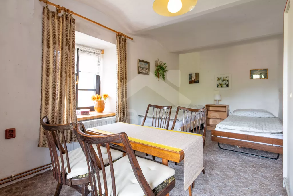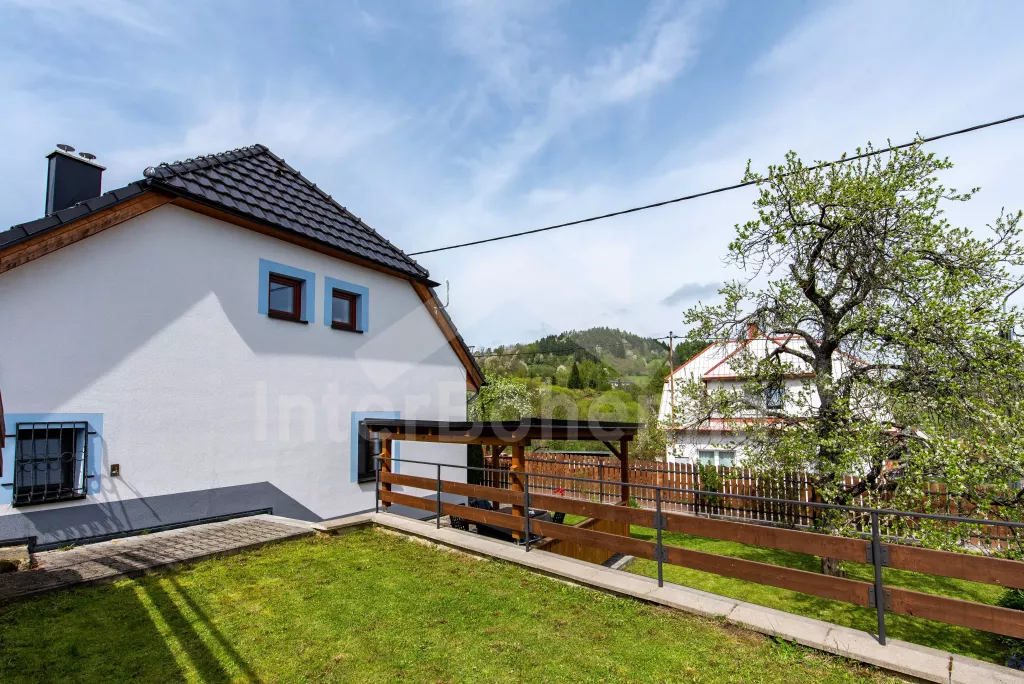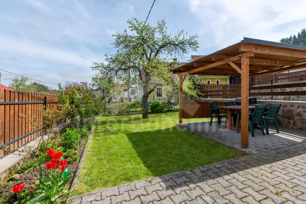 Chalupa s vlastní oplocenou zahradou a krytou pergolou s grilem. Kuchyně se sklokeramickou varnou deskou, troubou, mikrovlnnou troubou, varnou konvicí a myčkou. Lednice s mrazákem v chodbě. Obývací pokoj s jídelním stolem, sedací soupravou a TV. Vedle obývacího pokoje první ložnice s dvoulůžkem. Druhá ložnice přes chodbu se dvěma jednolůžky a posezením. Koupelna se sprchou ve vaně, umyvadlem, pračkou a WC. V podkroví 3 jednolůžka s možností jedné přistýlky. Vytápění pomocí kamen s výměníkem a topných, nástěnných panelů. K dispozici kompletně oplocená zahrada s pergolou, zahradním posezením a grilem. Parkování ve dvoře (pro 2 menší auta), další vozidla na návsi 300 m od objektu.