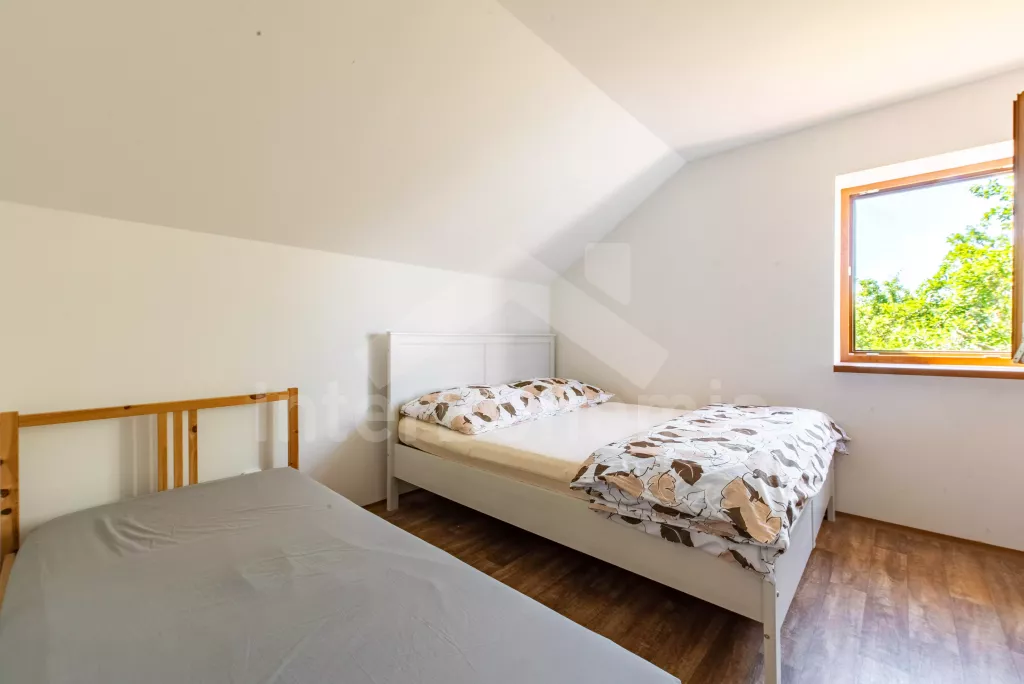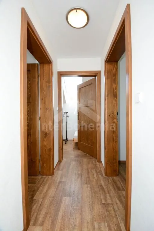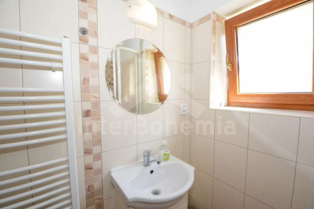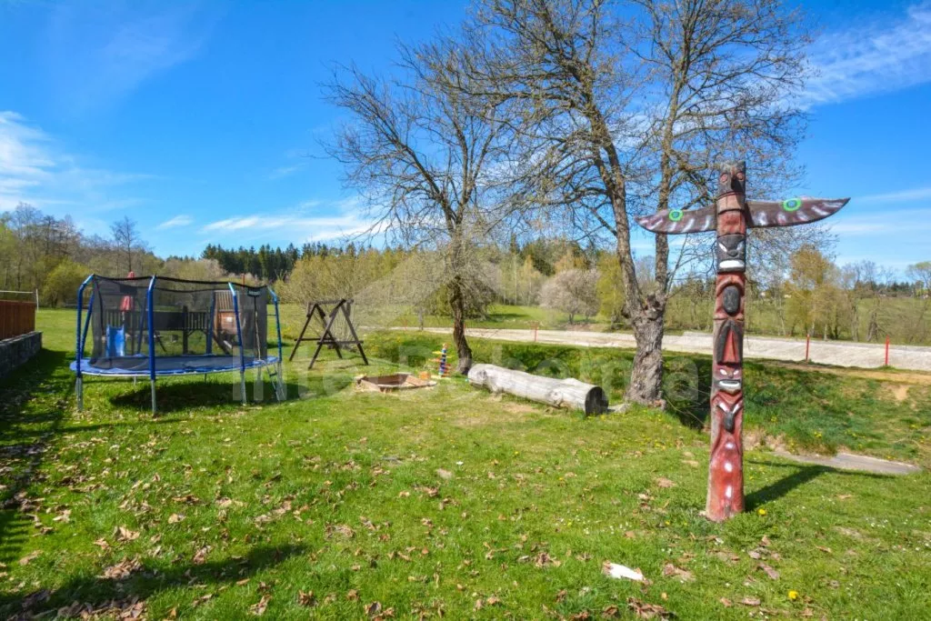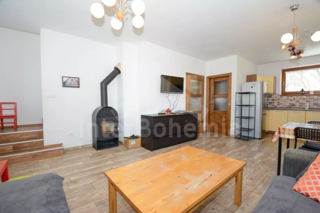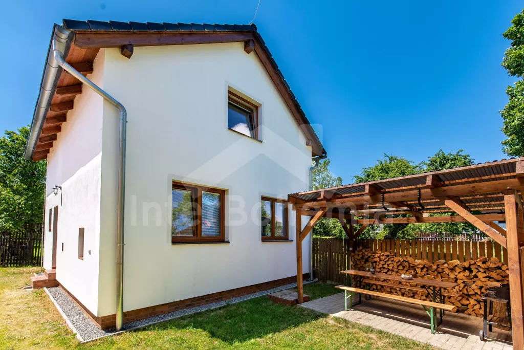 V roce 2019 nově postavená chalupa, moderně a příjemně zařízená. Vstup, chodba, prostorná obývací místnost spojená s kuchyní. Kuchyňská linka se sklokeramickou varnou deskou, troubou, mikrovlnnou troubou, lednicí s mrazákem, rychlovarnou konvicí, nádobím a myčkou na nádobí. V obývací místnosti velká sedací souprava, konferenční stolek, rádio, LCD televize s DVD a krbová kamna. V podkroví se nachází 3 samostatné ložnice, každá s dvoulůžkem. V přízemí koupelna se sprchovým koutem, umyvadlem a wc. Vytápění chalupy centrální podlahové na elektrokotel + lokální kamny. Hosté mají k dispozici neoplocenou zahradu před chalupou, zahradní posezení (pivní set) pod pergolou, přenosný gril a mobilní ohniště. Možnost úschovy 4 jízdních kol, nebo lyží přímo v chalupě. Parkování na vyhrazeném místě do 100 m od objektu.